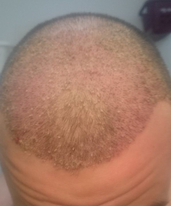 Leider war der Empfängerbereich bei mir auch länger als normal entzündet, deshalb sieht es auch etwas heftiger aus auf dem einen Bild. Hierzu kann ich dir nur raten deinen Kopf so wenig wie möglich anzufassen oder zu kratzen, am besten überhaupt nicht. Die Hände sind einfach nicht steril und das äußert sich dann auch eben so.