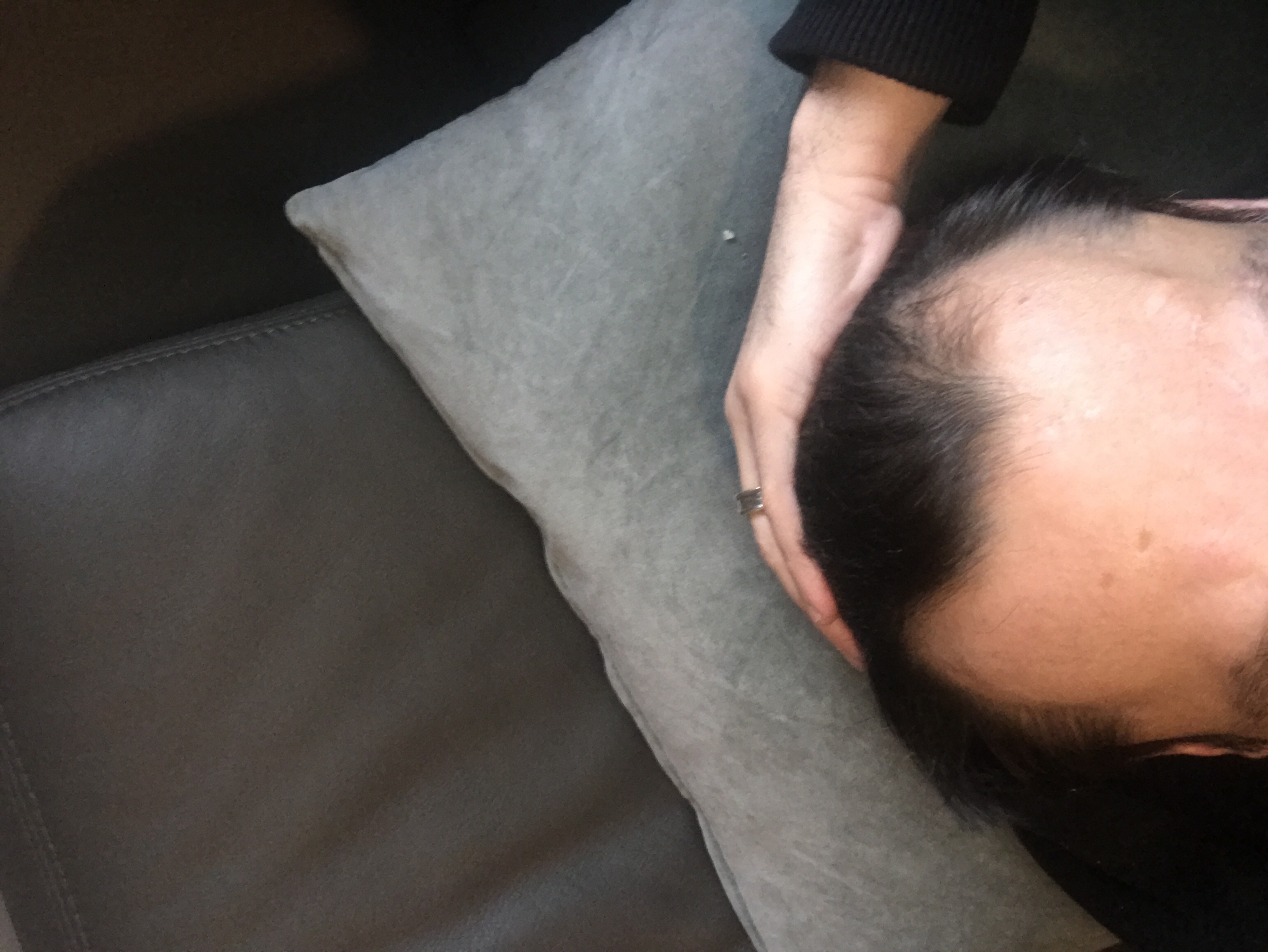 Gesetzt wurden auf eine eher kleine Fläche 1750 Grafts.((linie mittig 1,5 cm vor, rechte seite 2,5cm , linke seite 1 cm vor) rechts hatte ich eine größere Geheimratsecke als links.))