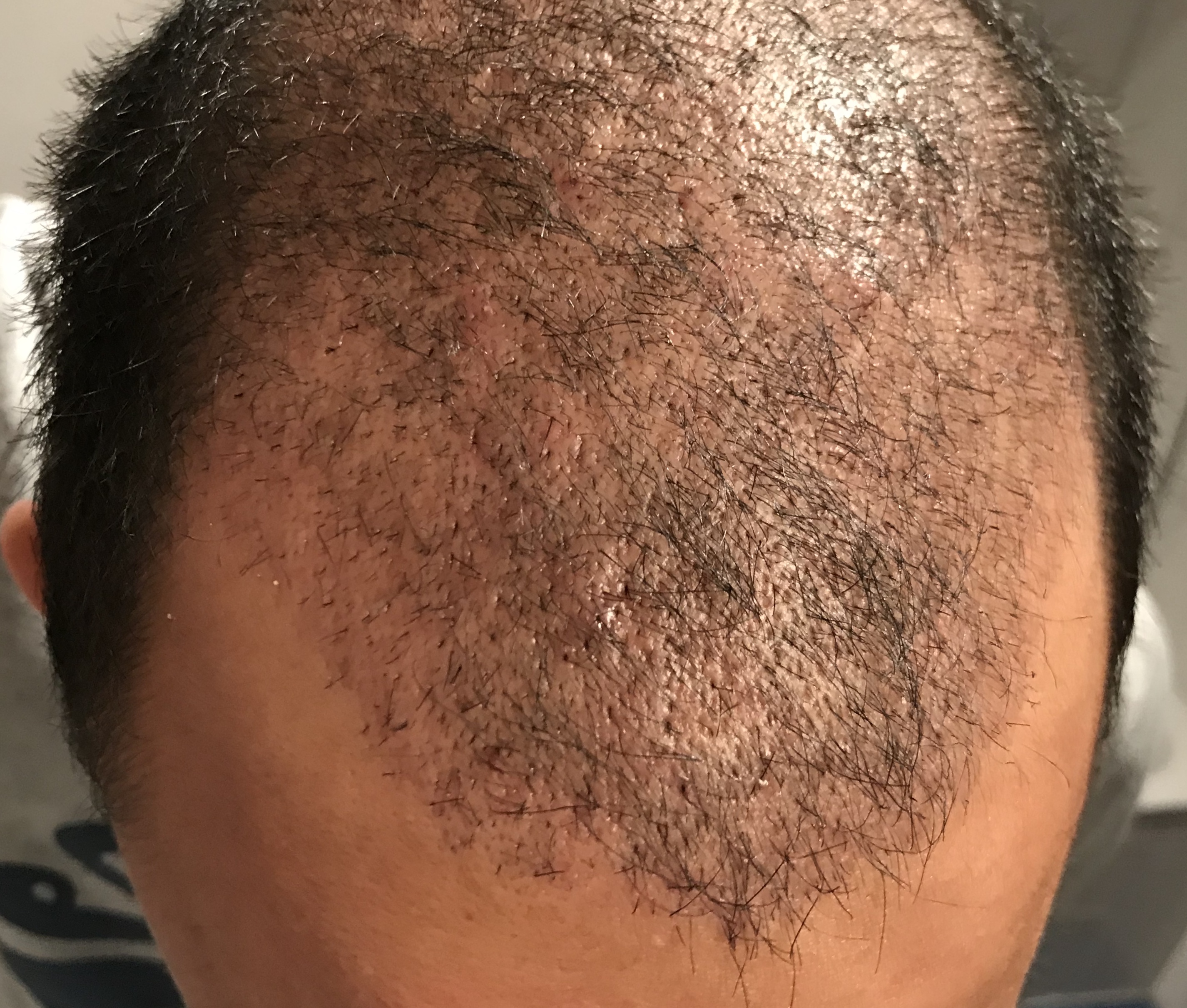 Hallo, hier ein Update. Bin jetzt im Monat 7. Bin soweit zufrieden. Die Tonsur muss halt noch bearbeitet werden. Mal schauen was ich in der Zukunft mache entweder ne 2te Op oder mikrohaarpigmentation oder alles auf 9mm.