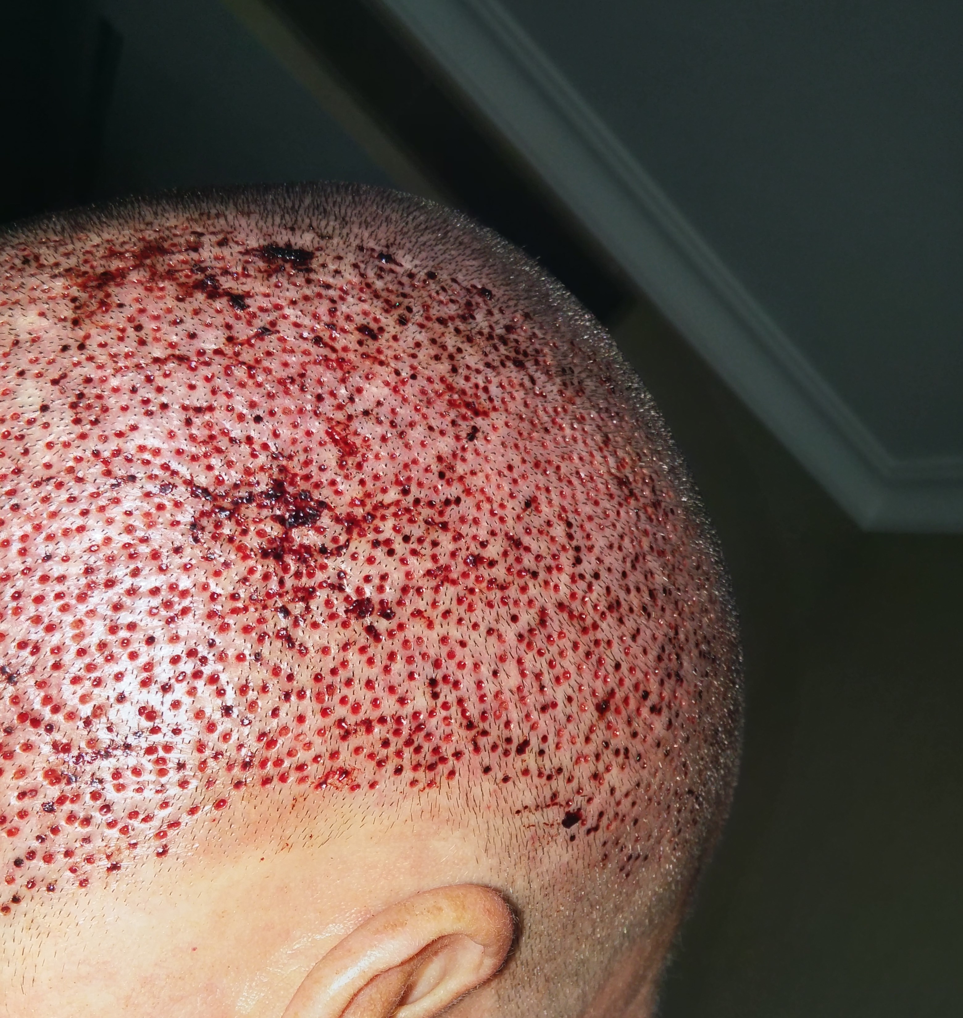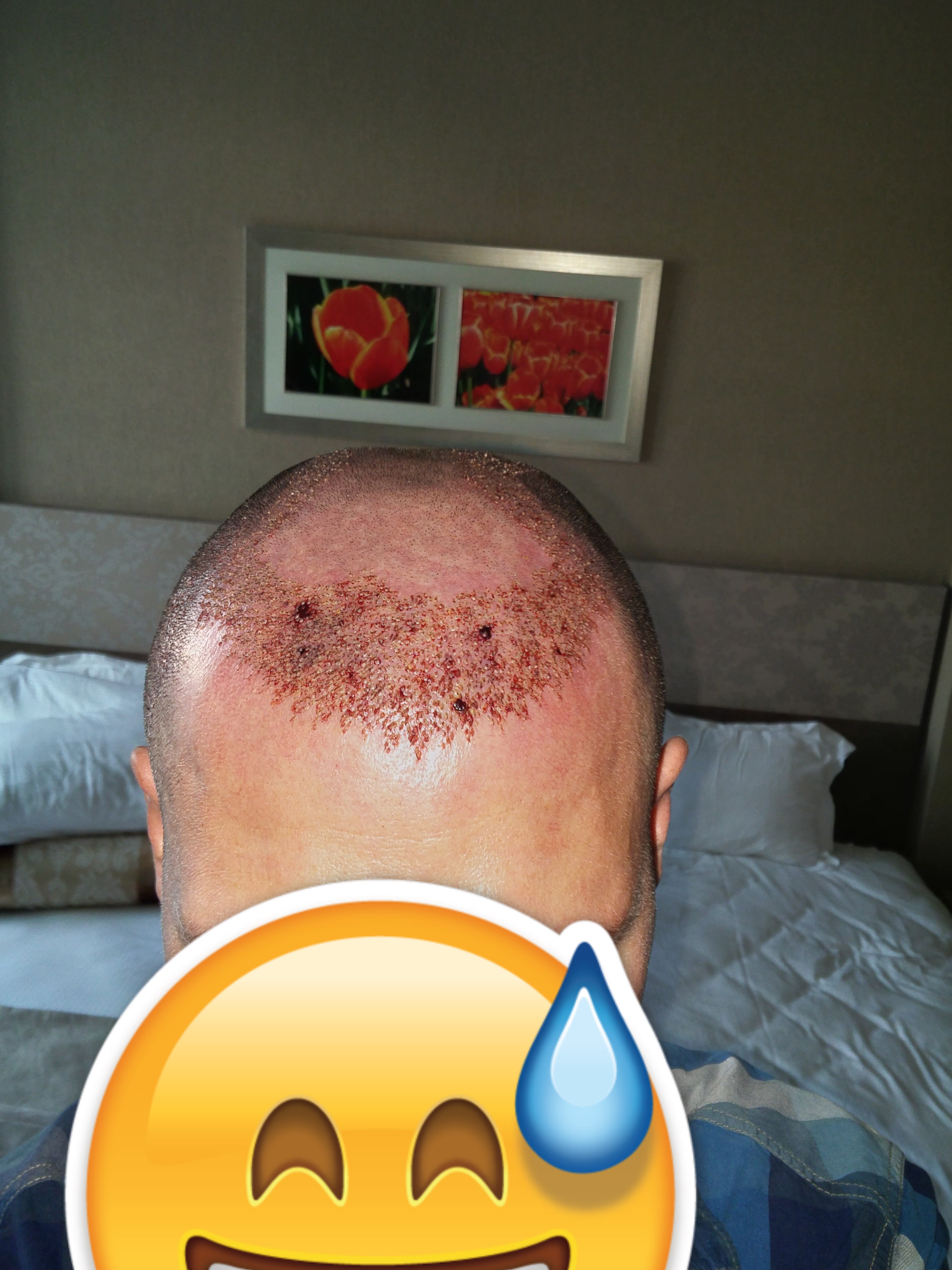 Hier Bilder 3 Tage Post OP, bisher noch ohne Haarwäsche.