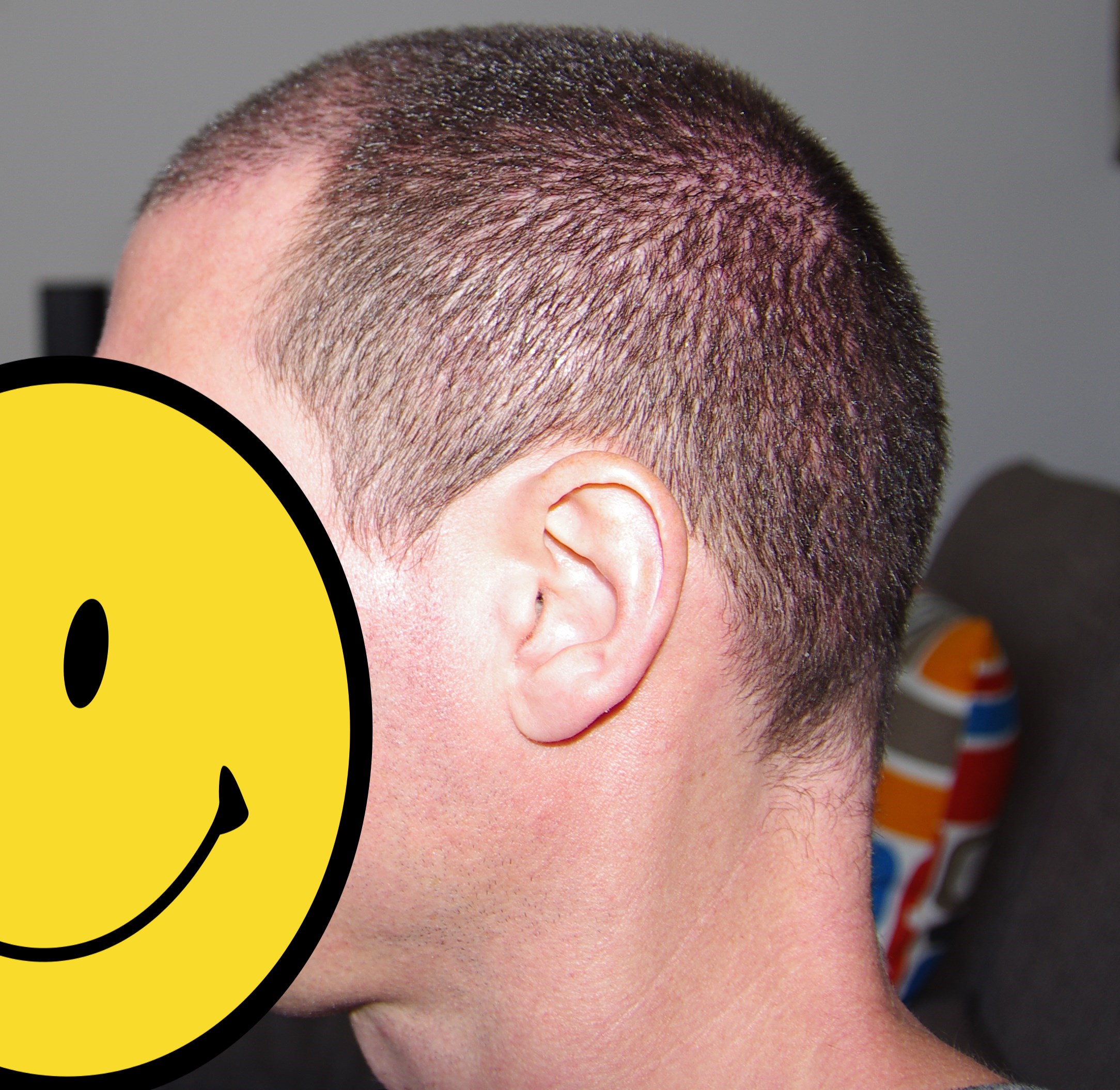 1. Auf den postoperativen Fotos sehen die Zacken etwas groß aus und stechen sofort ins Auge. Dies liegt jedoch an den Wundkrusten und allgemein daran, dass die Haare noch nicht sichtbar sind.