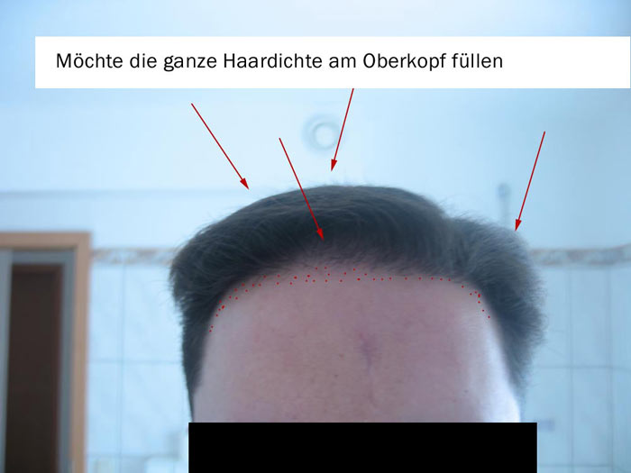 Und was die Dichte angeht, kann ich in deinem Fall nur die Verwendung von Toppik empfehlen. Damit wirst du einen wesentlich größeren optischen Effekt erreichen, als wenn du dir den ganzen Oberkopf mit vielleicht 10 oder 15 Grafts / cm² minimal verdichten lässt. Und die Wahrscheinlichkeit, dass du wegen dieser minimalen Verbesserung ein halbes Jahr lang wie ein Idiot aussiehst (Shock-Fall-Out der bestehenden Haare!) ist auch nicht zu vernachlässigen... (ich weiss wovon ich spreche!)