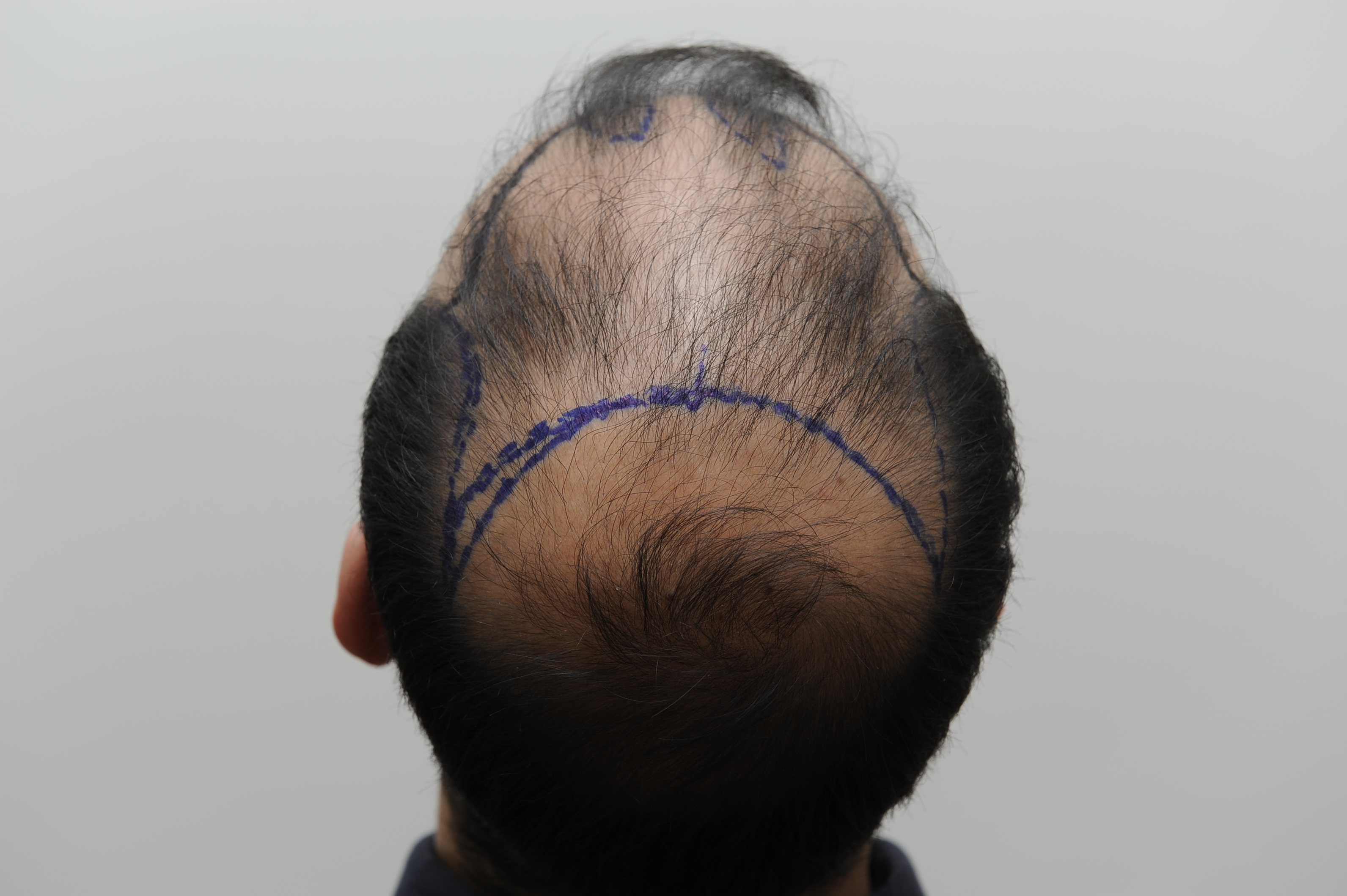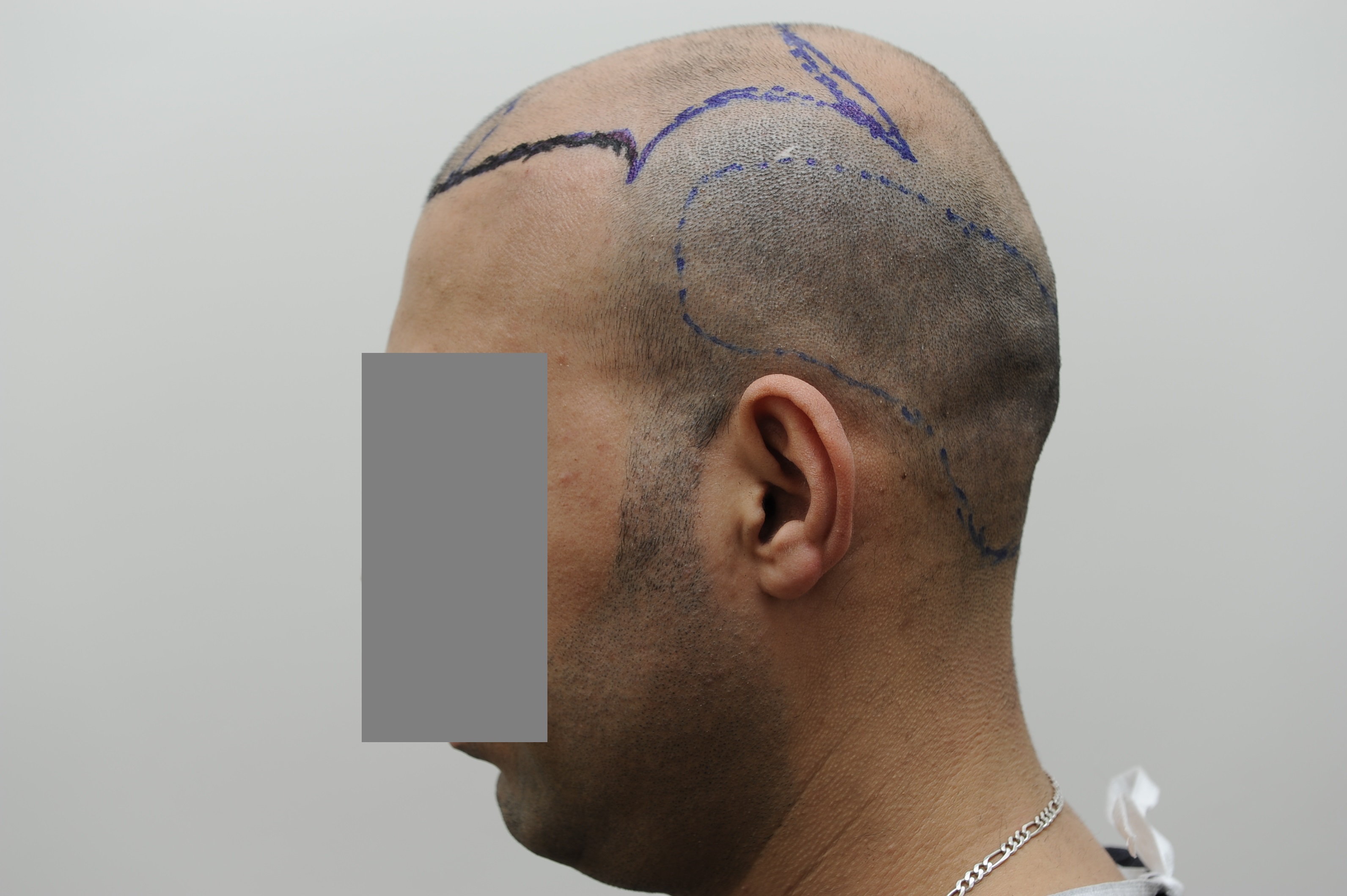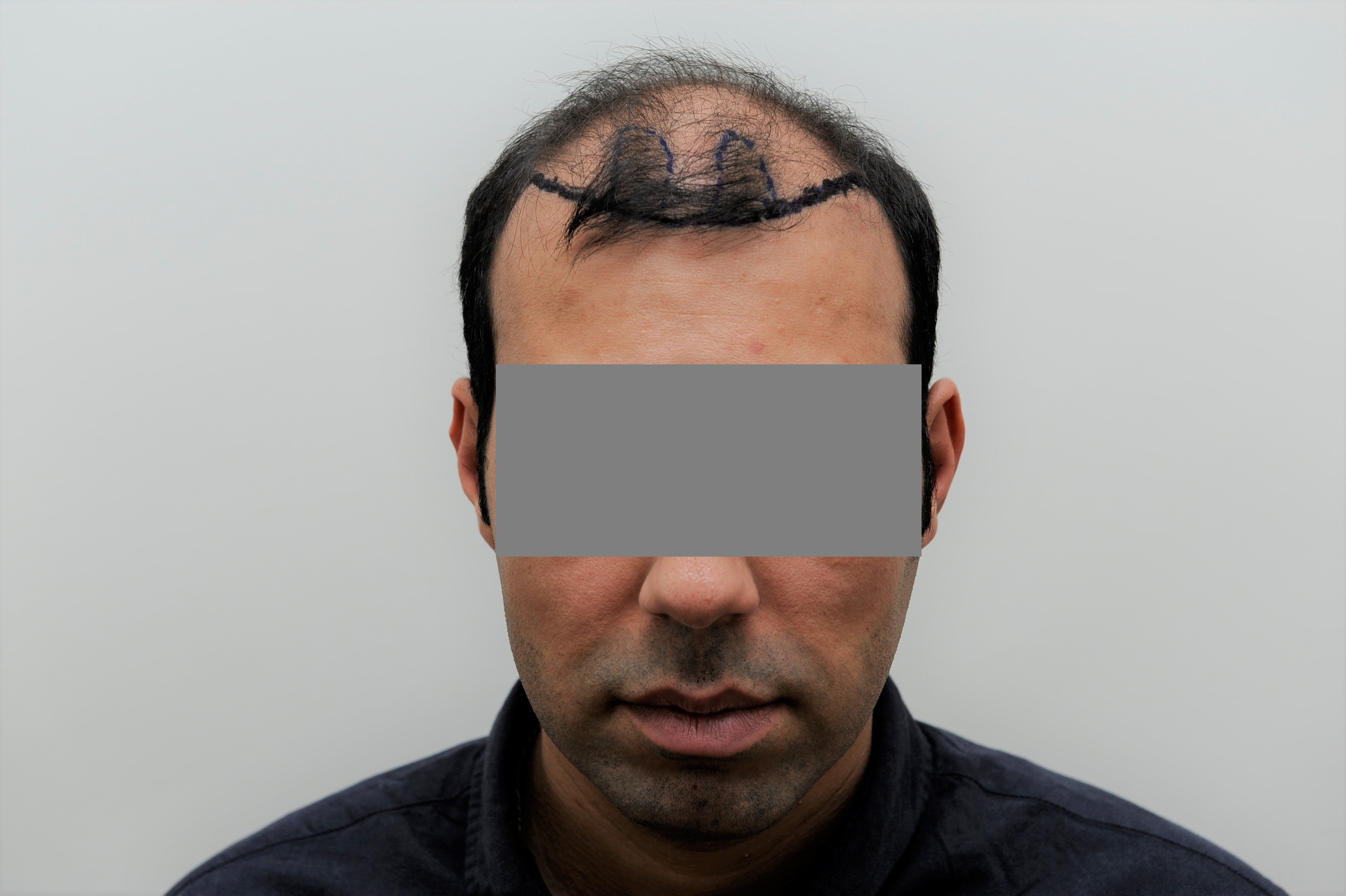 Nach Ankunft in der Klinik begutachtete Dr. Demirsoy meinen Haarstatus und stellte mir Fragen zu meinem Haarausfall. Da die kahle Fläche sehr groß war, entschieden wir uns für uns für eine konservative Haarlinie und die Transplantation des vorderen und mittleren Kopfes. Die Tonsur wurde ausgelassen und kann bei einer zweiten OP behandelt werden.