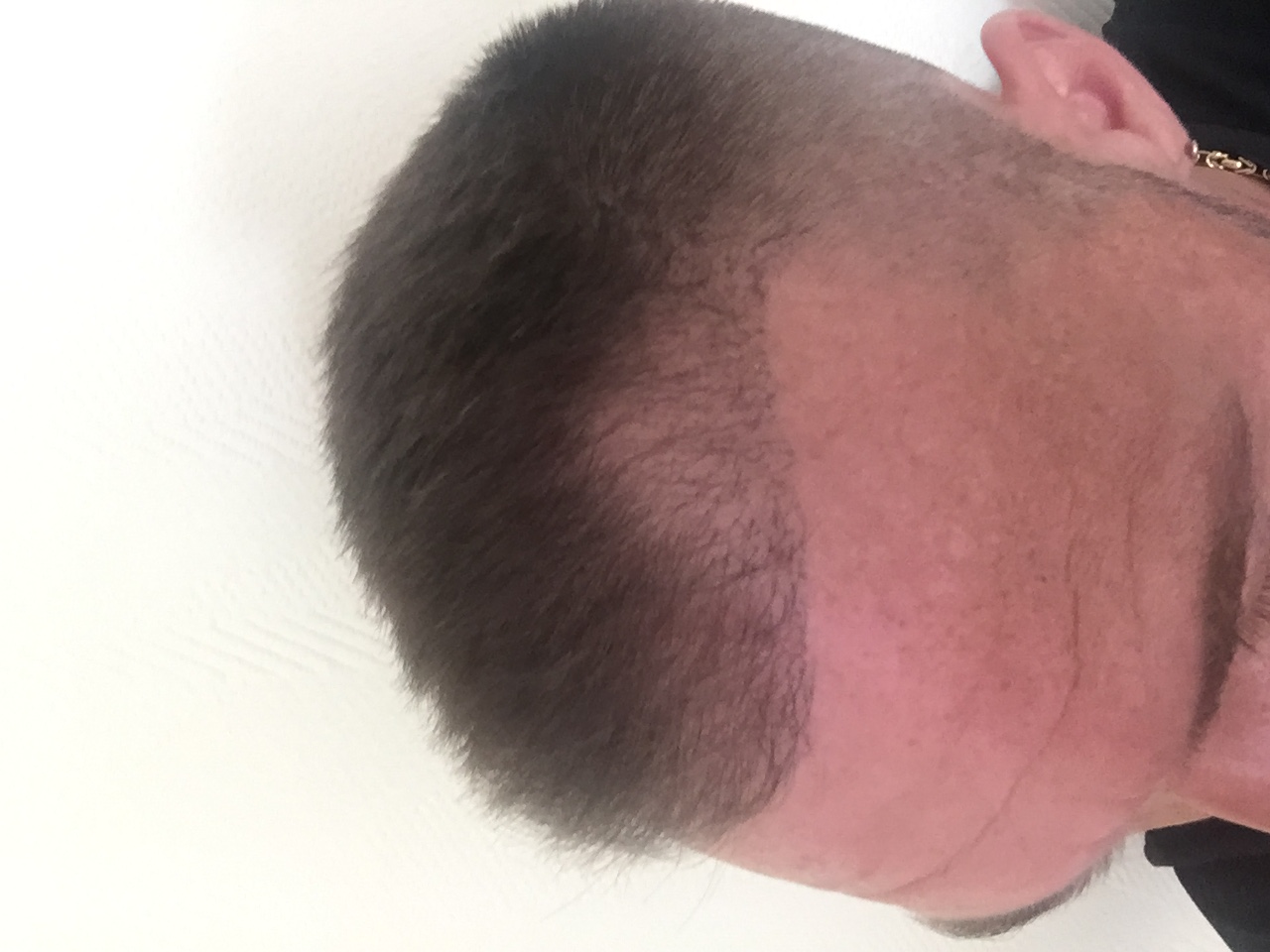 Bei der Myperfecthairclinic bucht man laut Aussage von Dr. Saalfrank eine Dienstleistung. Dies wird so ausgelegt, dass vorab eine grobe Schätzung der zu verpflanzenden Grafts parallel zum Angebot gemacht wird. Er versicherte mir, dass wenn im Endeffekt mehr Grafts benötigt werden, keine Mehrkosten anfallen werden. Kurios ist halt, dass weder bei der Graftentnahme noch beim Stechen der Kanäle jemand zählt. Ich weiß also nicht wieviele Grafts tatsächlich verpflanzt wurden. Dr. Saalfrank sagte mir, das Dr. Tsounis höchstens eine 40 er Dichte wegen den sonst geringeren Anwuchsraten anstreben würde. Kurz bevor mir die Grafts ausfielen sah das alles auch super aus obwohl die Haare sehr kurz waren. Also zumindest rein optisch war die Dichte wirklich ok. Ich frage mich halt wieviel man nach 4,5 Monaten noch an Neuwuchs erwarten kann. Ich habe jetzt nochmal 2 Bilder mit Blitz gemacht, wo man evtl. etwas mehr erkennen kann.