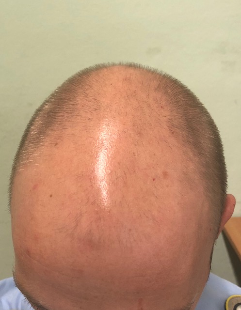 mach von verschiedenen stellen (mitte oben, mitte mitte, mitte seitlich links, mitte seitlich links, oben seitlich links, oben seitlich rechts) jeweils eine scharfe makroaufnahme einer jeweils 1cm2 großen fläche deines donors, sodass man die follikel zählen kann.