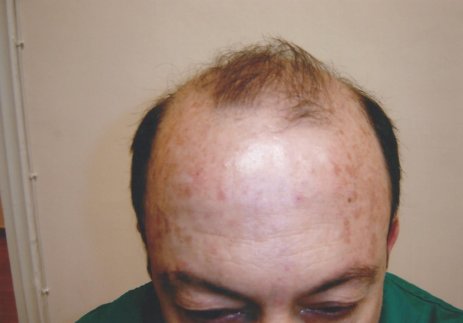 - auch bin ich mir da überhaupt nicht so sicher, ob das wirklich 4500 eingesetzte grafts sind, wenn ich mir deine ersten bilder betrachte, nachdem die blutigen krusten weg waren. selbst bei dem vorher erwähnten, suboptimalen verteilen sagt mir mein bauchgefühl: das sind keine, sagen wir mal 20-25 grafts pro cm2 vorne.