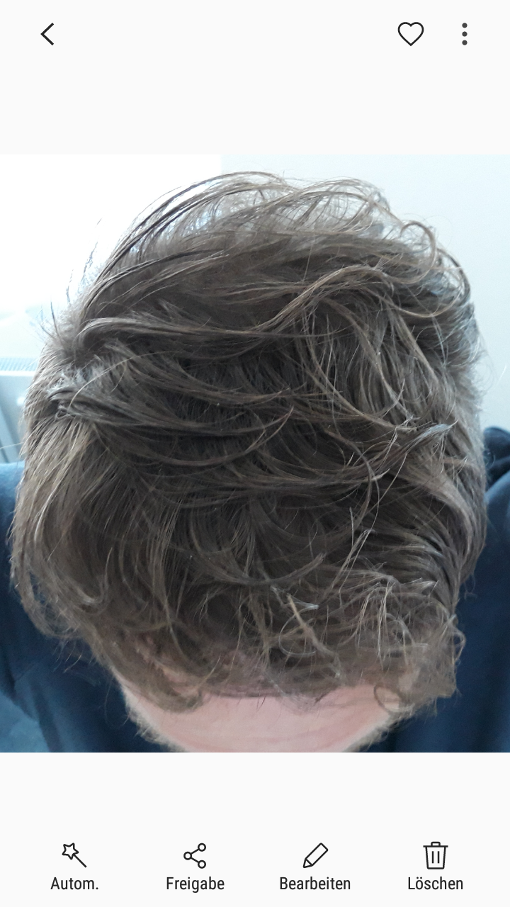 Nach dem ersten Eingriff habe ich zunächst gelitten, weil es tatsächlich lange dauerte, bis ich zufrieden in den Spiegel blicken konnte. Deshalb habe ich mit dem zweiten Eingriff länger gewartet. Und ein halbes Jahr nach der Verdichtung wird es nun auch auf der Tonsur voller.