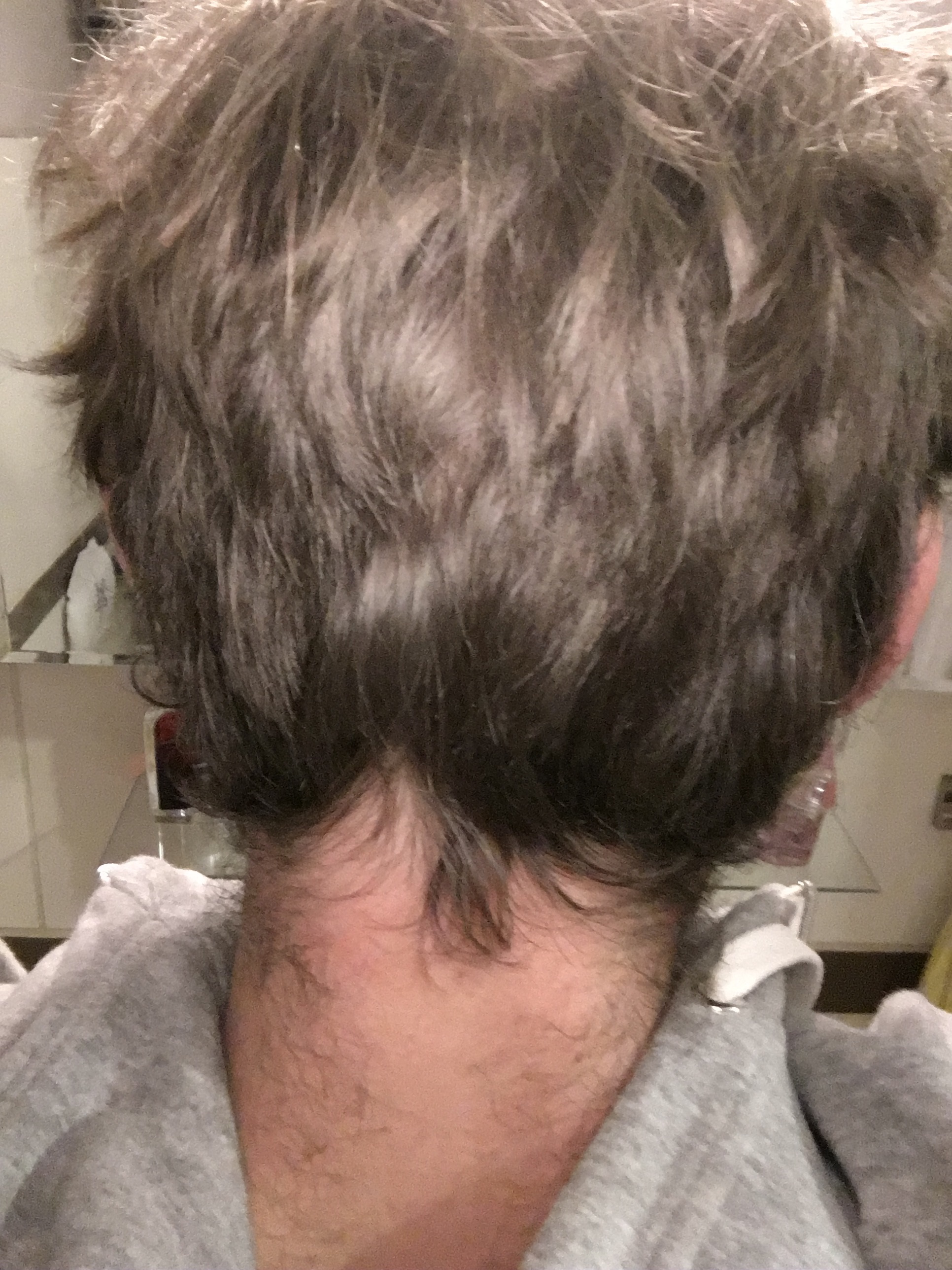 Nach der Prozedur kannst du deine Haare im Donor-Bereich zwar nicht mm-kurz tragen, aber ich würde sagen deutlich kürzer als jetzt (15-20mm) und das Deckhaar mind. 50mm und seitlich gescheitelt - das ist so die bestabdeckendste Frisur, wenn man undichtes Haar hat.