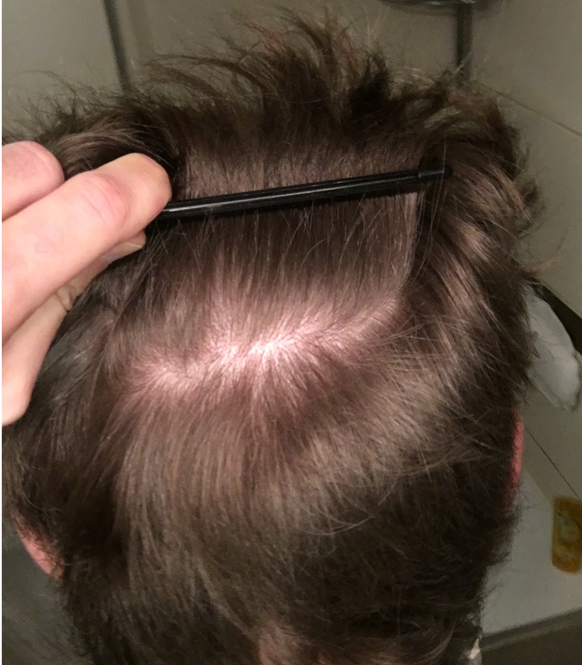 Ich hatte schon eigentlich immer eine relativ hohe Stirn und mit Beginn des Haarausfalls mit Anfang 20 wurde die Situation immer schlimmer. Bis ich 24 war hatte ich schon NW3 Status. Dann kam ein kleiner, zumindest spürbarer Schub, als die Haarlinie fast komplett verloren ging. Seitdem ging es immer weiter nach hinten, wobei die Tonsur einigermaßen verschont geblieben ist. Im Moment habe ich seit ca. 3 Jahren keinen merklichen Ausfall mehr bemerken können und hoffe, dass nun eine HT ggf. Sinn machen würde.