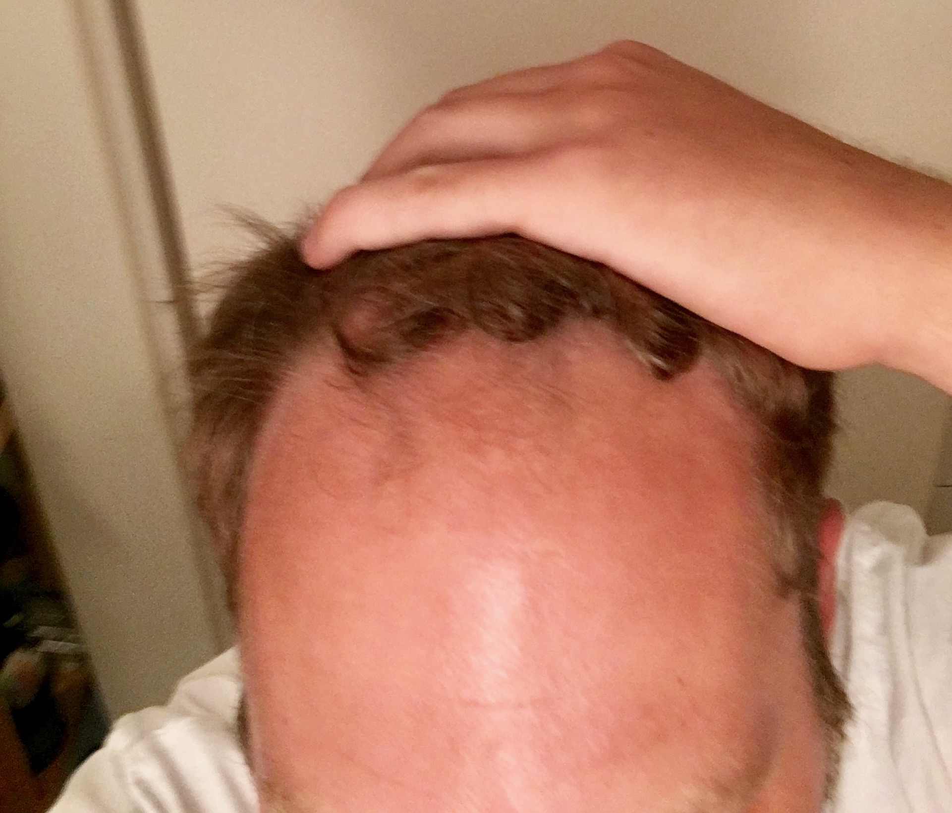 Geheimratsecken (Ansätze seit dem 18. Lebensjahr)...bin ich bisher immer mit zurecht gekommen aber seit 2 Jahren ist es was stärker geworden.