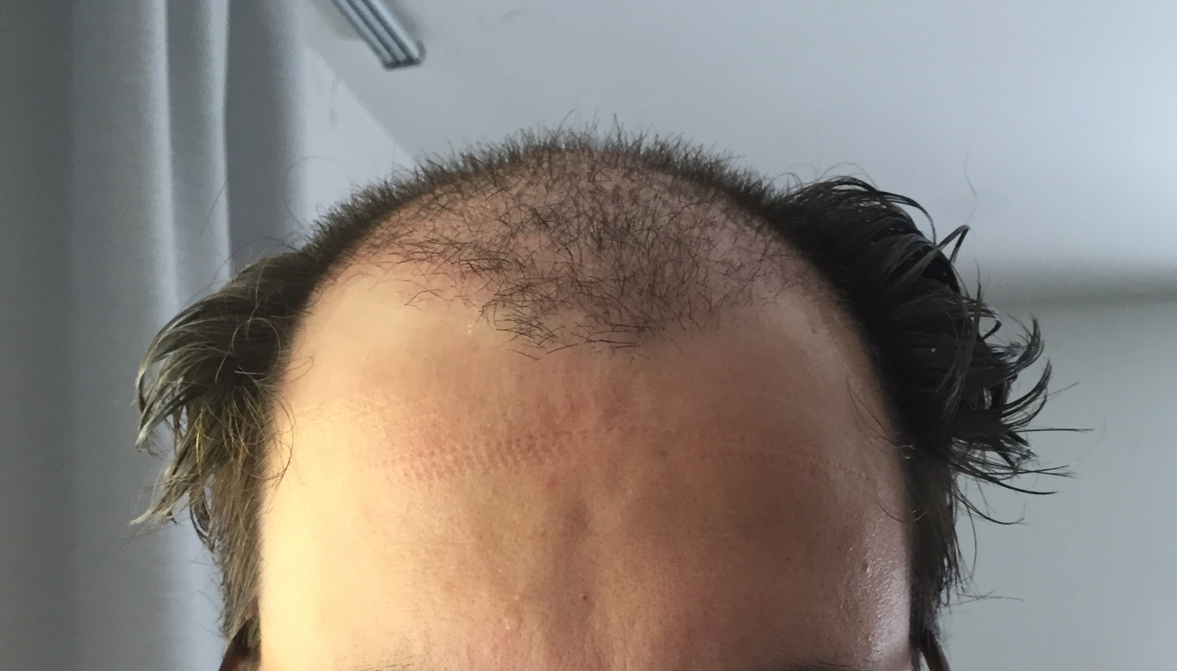 Shockloss unterhalb der Narbe und an einer Stelle am Oberkopf habe ich leider, aber alles nicht zu tragisch. Neuen Haare haben sich nun fast alle verabschiedet. Im hinteren Bereich juckt es gelegentlich recht stark und einige Pickel habe ich dort auch.
