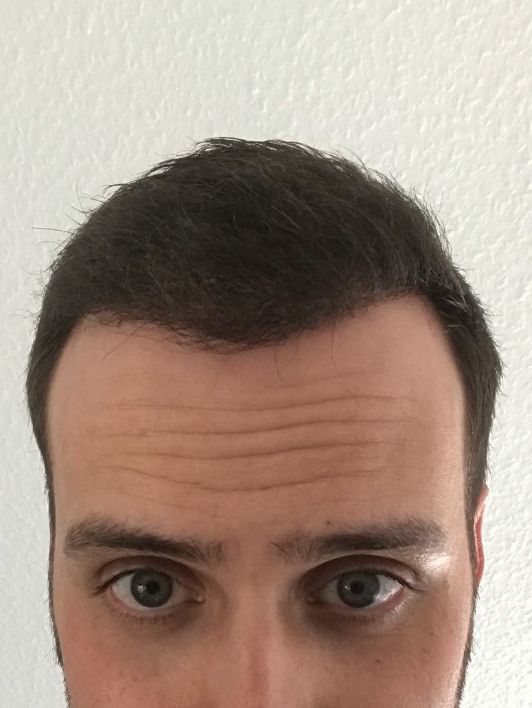 Oktober 2018: 300 Grafts bei Hairmedic (FUE) für GHE (eigentlich im Nachhinein nicht nötig gewesen, dafür sind diesmal die Stirnfalten weg - gute Nebenwirkung der üblichen Schwellung zu meiner erfreulichen Überraschung)