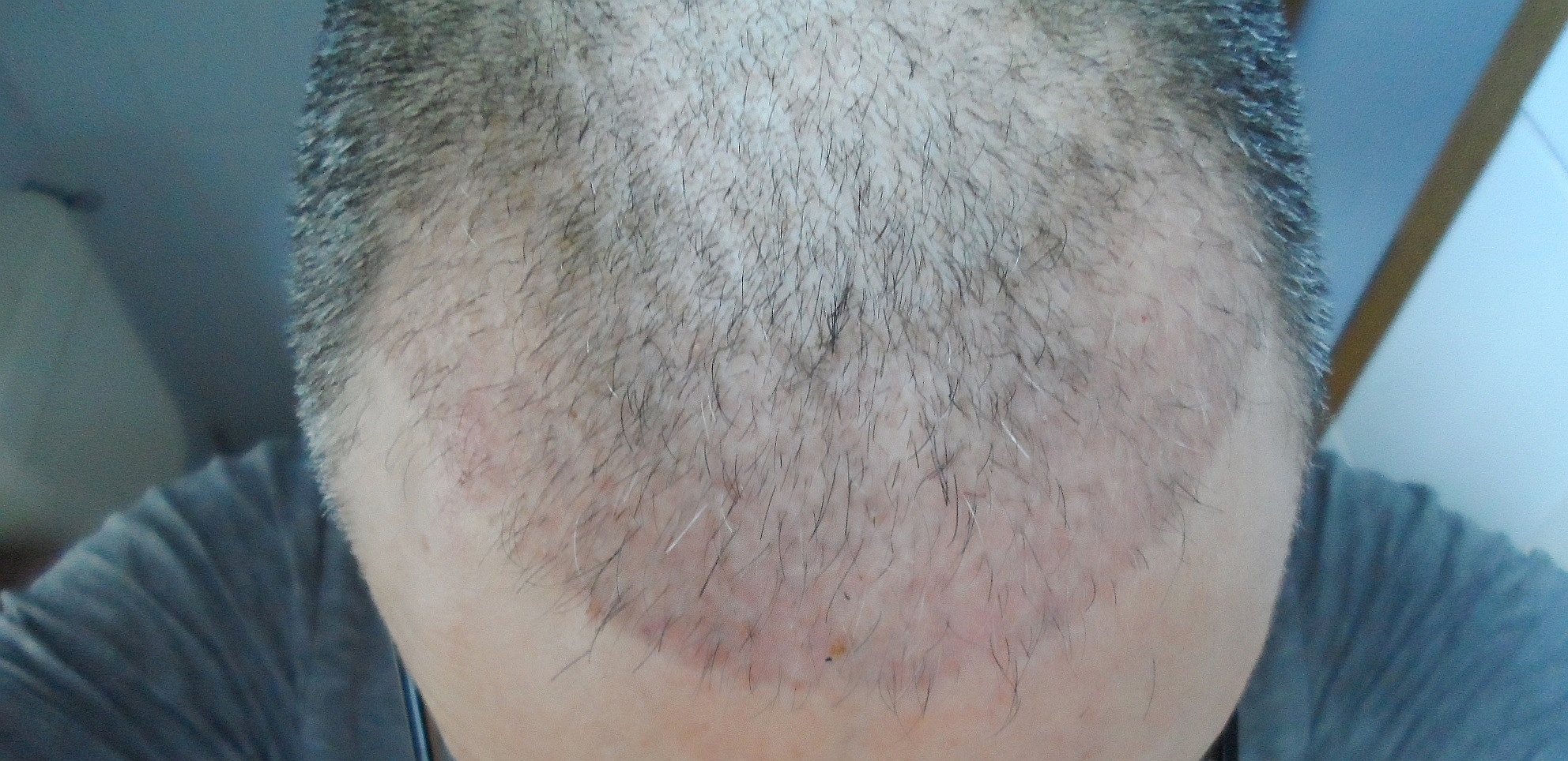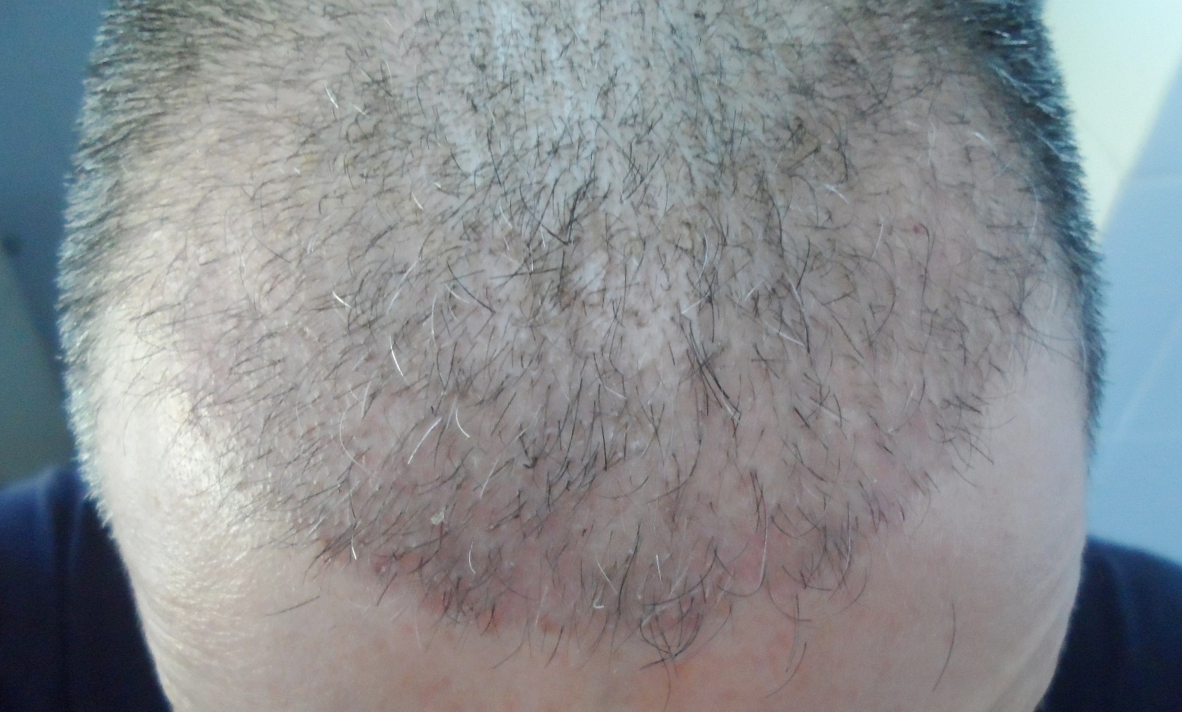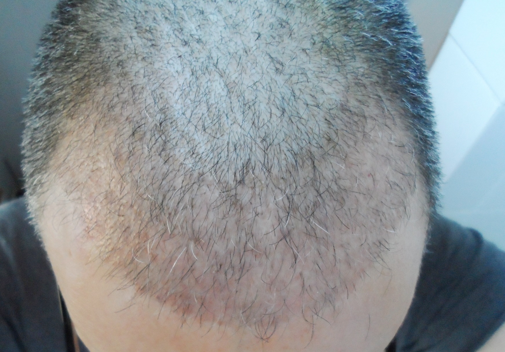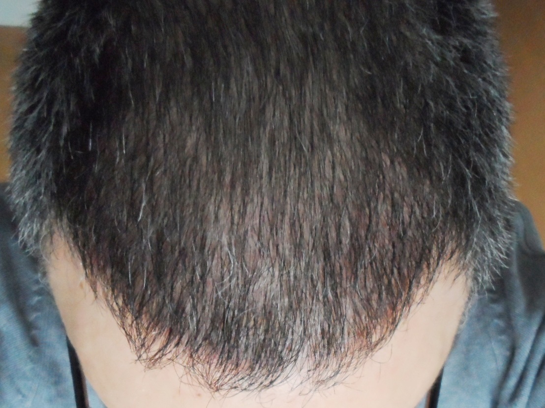 Heute sind ja 6 Monate vorbei, daher mal wieder Photos. Weiß ehrlich gesagt nicht was ich davon halten soll, so wirklich dicht ist das noch nicht. Habe die Haare jetzt mal auf 12-15 mm wachsen lassen und gerade in der Mitte wirkt es "durchsichtig" - vielleicht liegts auch am Licht.