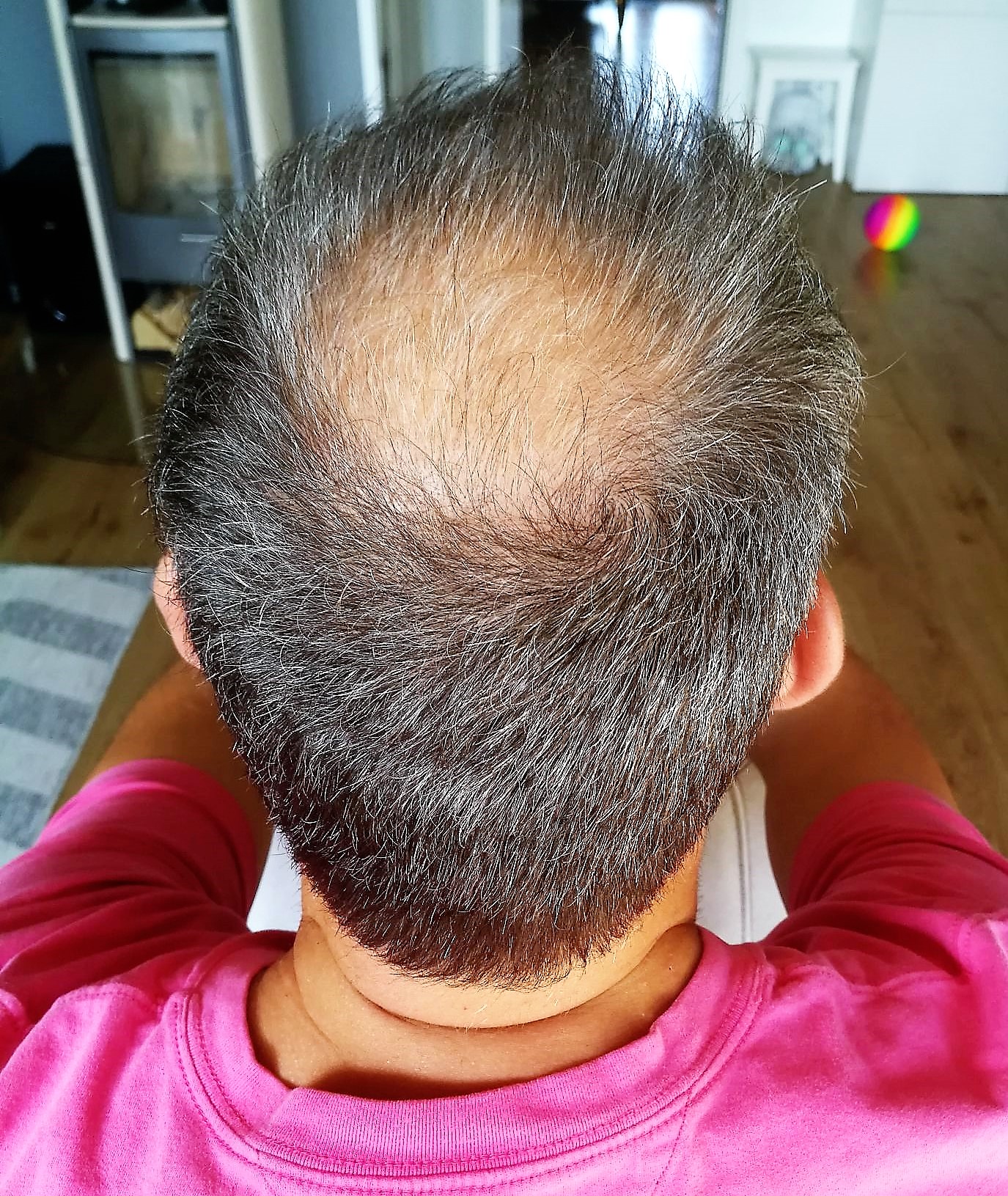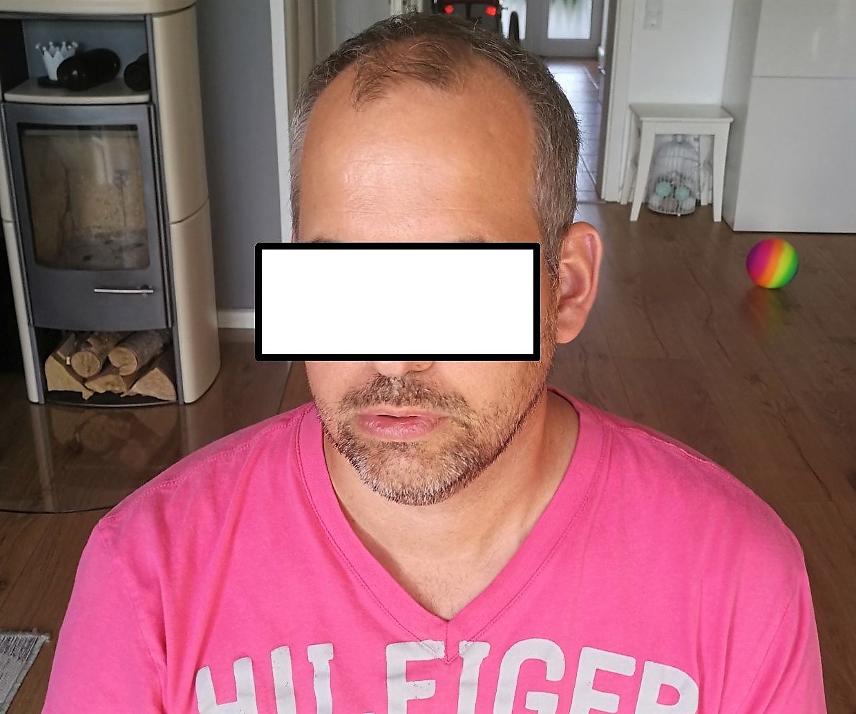 * Aktueller Haarstatus nach der Hamilton-Norwood-Skala: 5 schätze ich