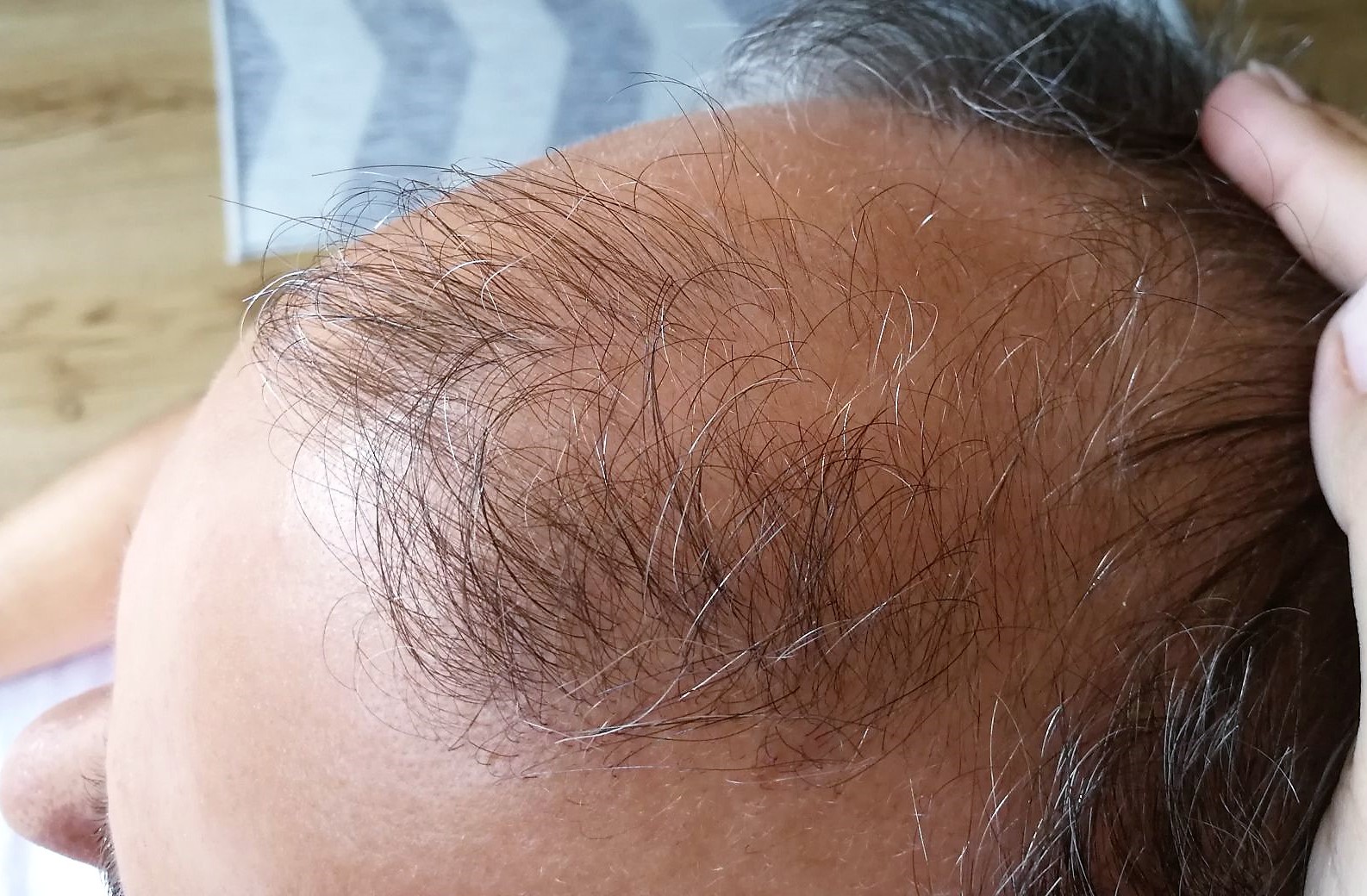 * Haarstatus in der Familie (Eltern/Großeltern): Vater kahl (außer Haarkranz), Großvater dito; Bruder komplett volles Haar :-/