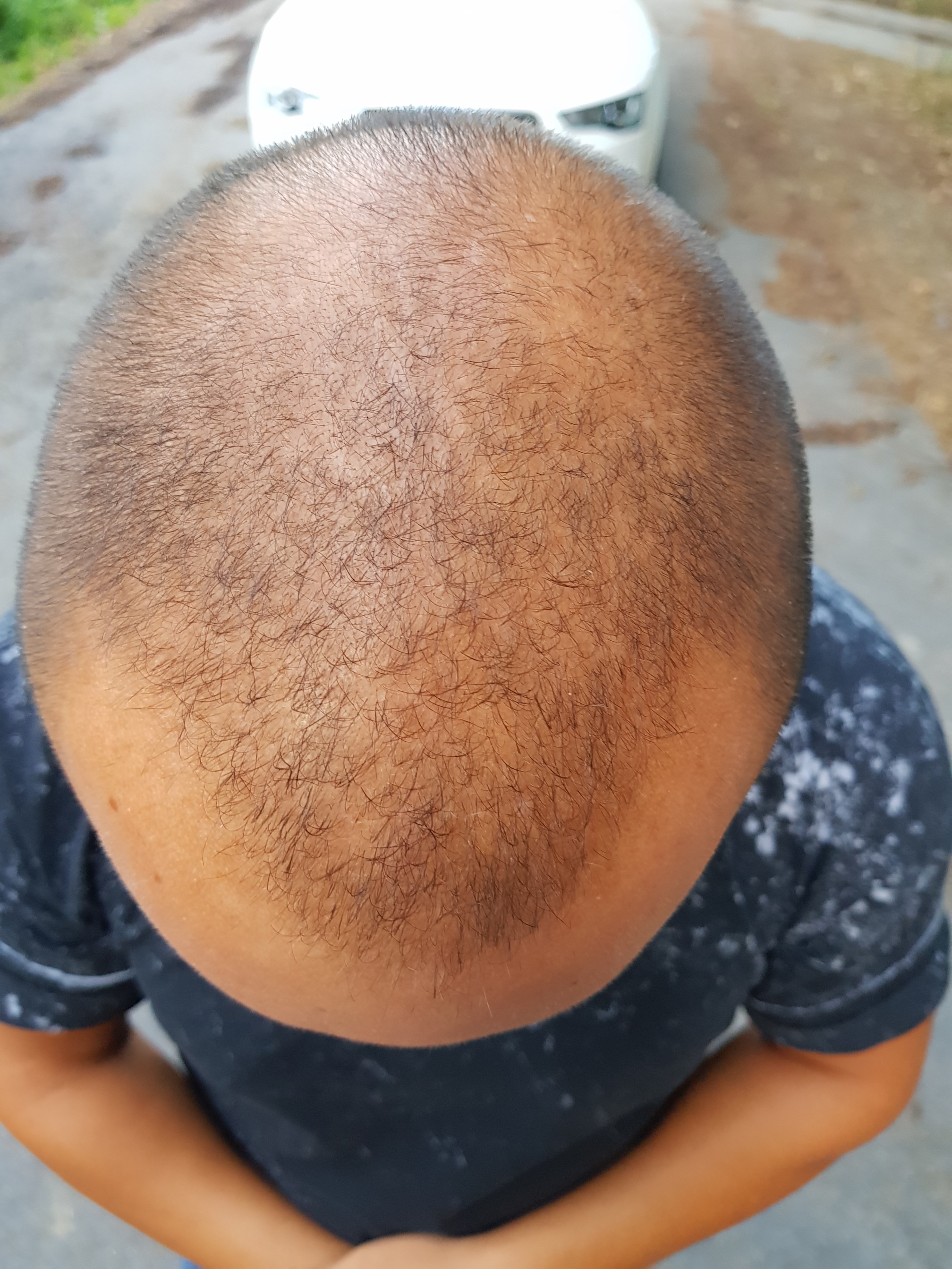 * Aktueller Haarstatus nach der Hamilton-Norwood-Skala: schätze ich 5