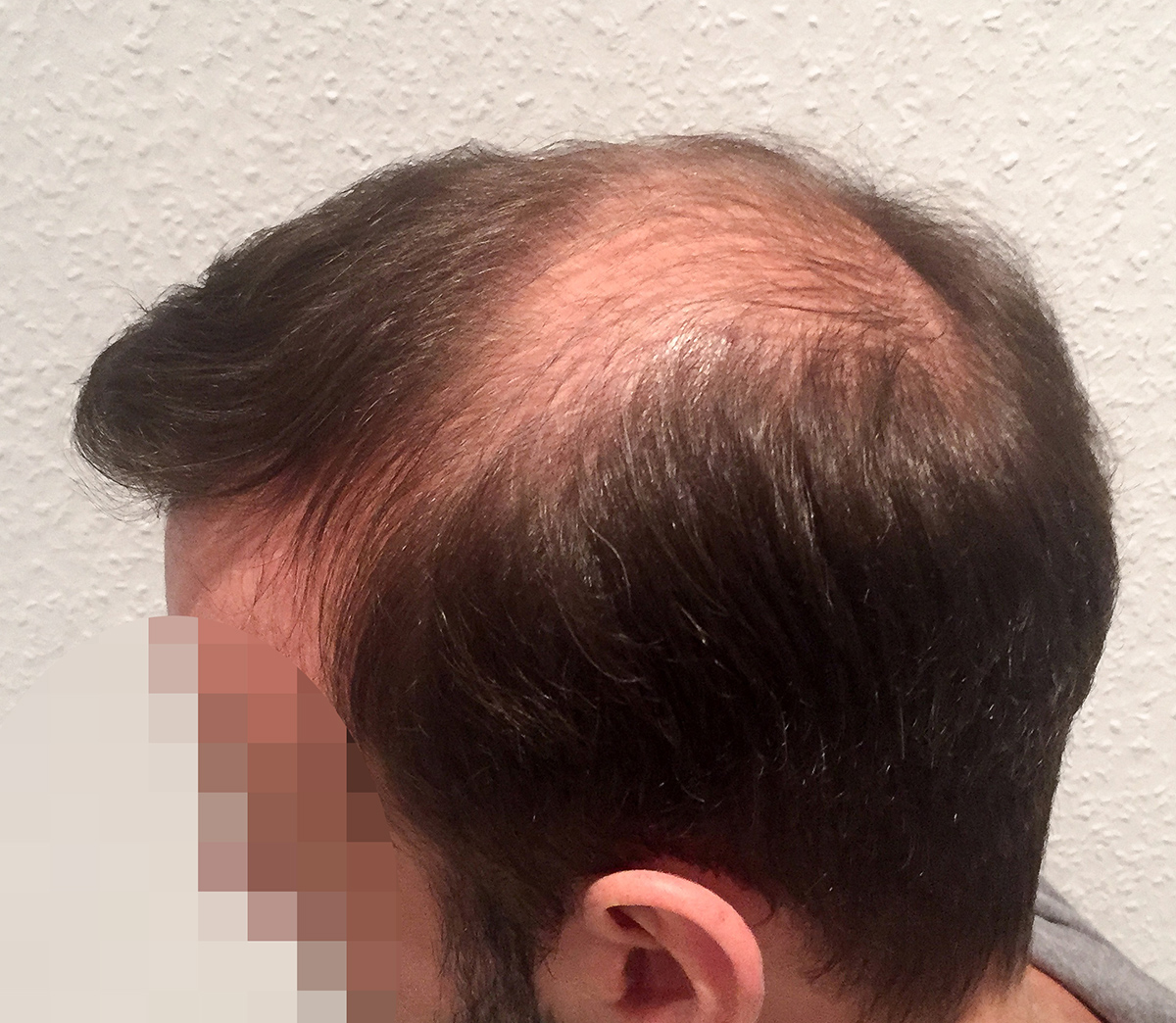Der Haarausfall fing bei mir Mitte der 20er an. Ich bin jetzt 38 Jahre. Er war langsam aber stetig und mein Haarausfalltyp heißt wohl Mönchglatze also Knieschreibe am Hinterkopf. Meine Vater und Großvater haben beide volles Haar. Mein Großvater mütterlicherseits mittlerweile (85 Jahre) nur noch sehr wenige Haare. Bei ihm fing der Haarausfall aber erst sehr spät an ( in seine 50ern soweit ich weiß). Mit Anfang dreißig stoppte bei mir der Haarausfall weitestgehend. Das Thema Haartransplantation war nun sehr präsent für mich. Da ich die Entscheidung jedoch nicht überstürzt treffen wollte und es auch nochmal medikamentös versuchen wollte (nutzte eine zeitlang Minoxidil; Fin kam für mich nicht in Frage), dauerte es noch gut 7 Jahre bis zum Entschluss.