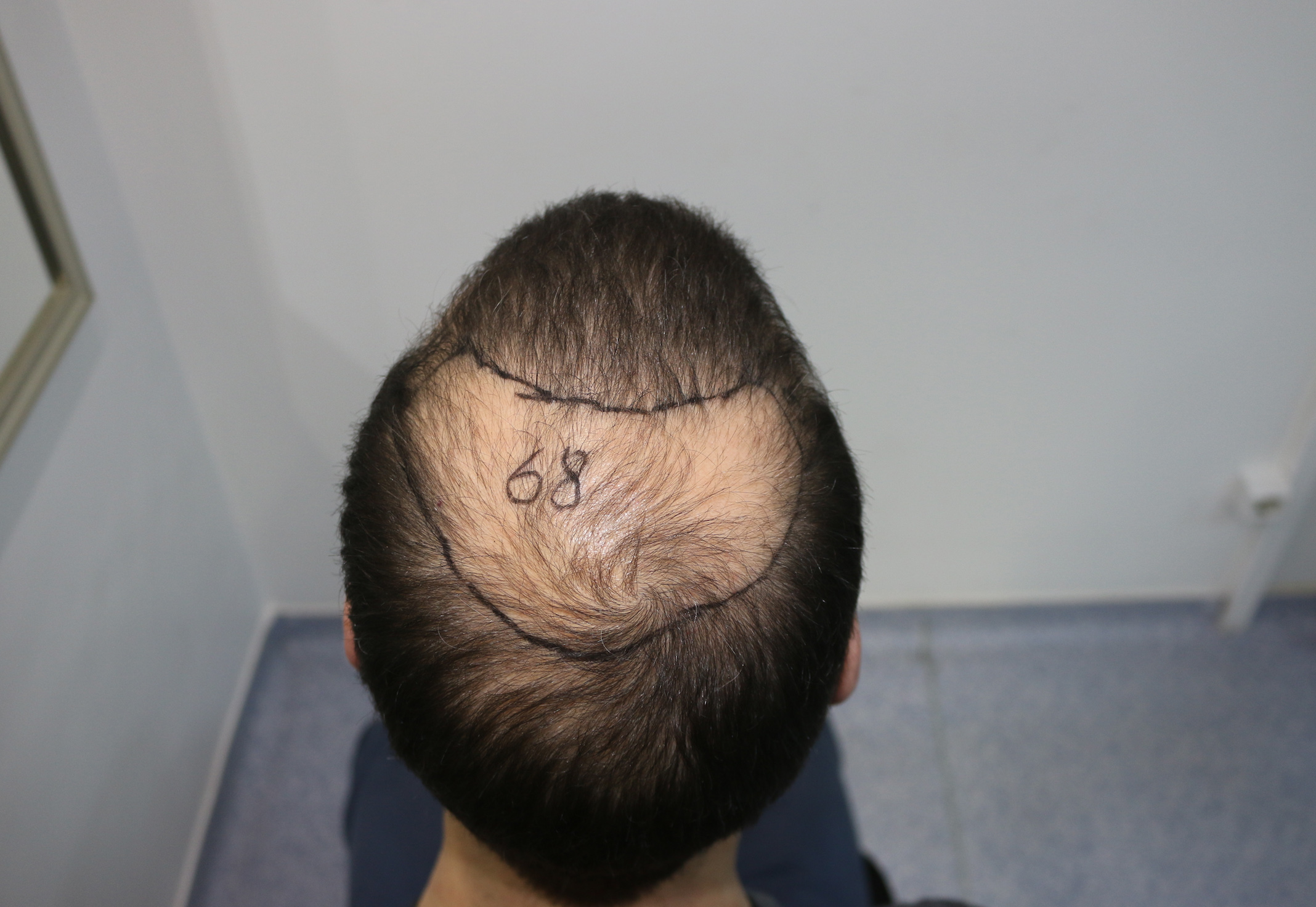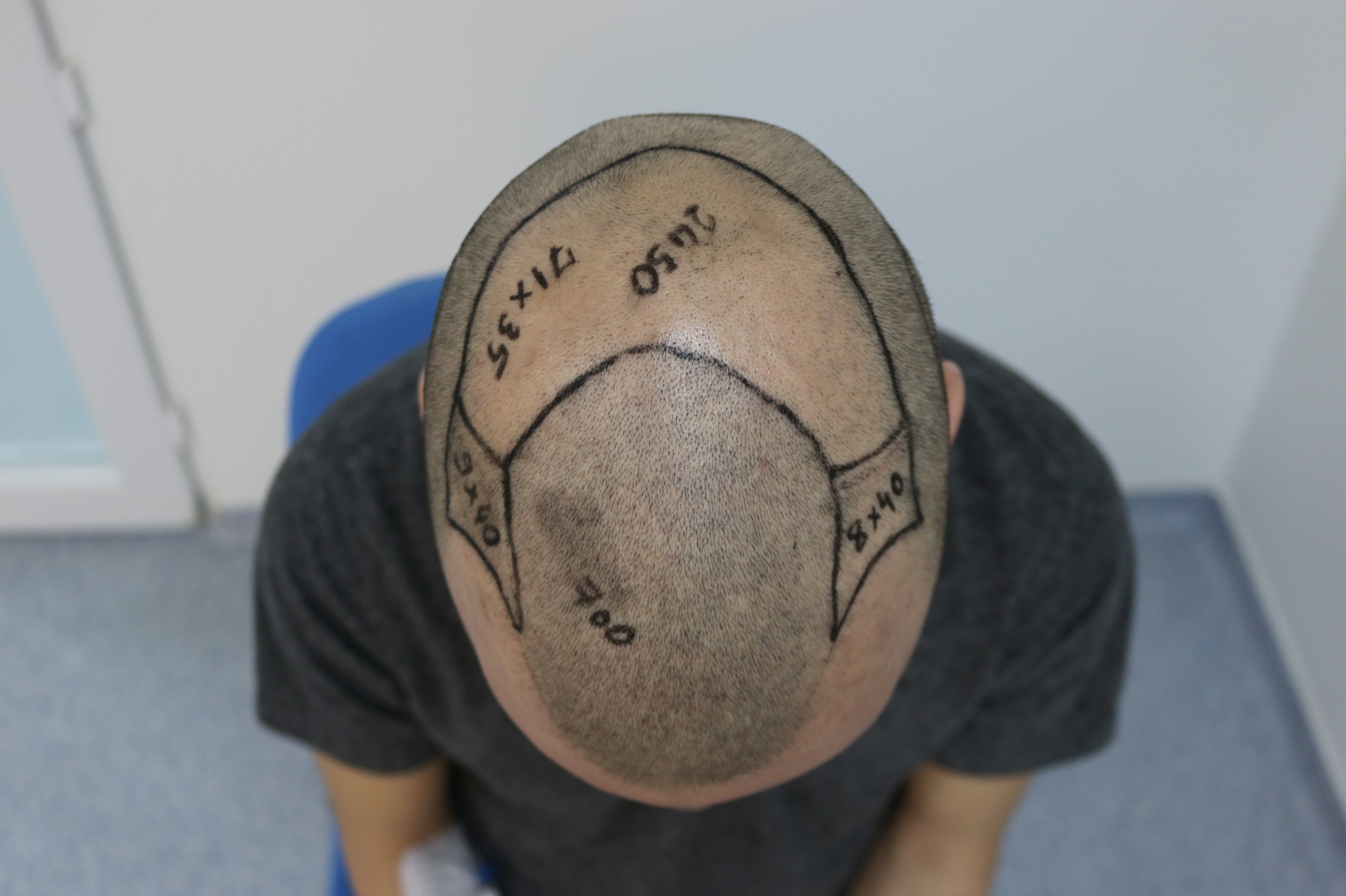 3250 Grafts wurde gesetzt (100% Kopfhaar. Die HLC hätte gern 2800 Kopf und 1000 Barthaare transplantieren wollen)