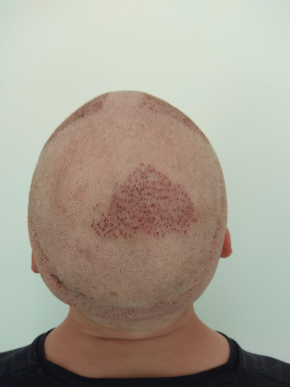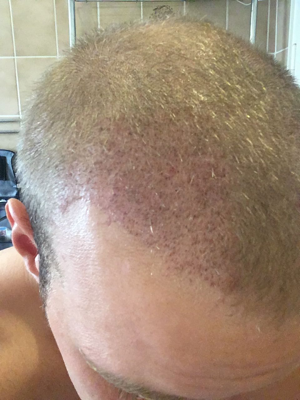 Dieses Gefühl hat sich im weiteren Verlauf der Reise auch immer weiter gefestigt bzw. bestätigt. Es ist absolut nichts schiefgelaufen und nach dem, was ich bisher selbst beurteilen kann, hätte auch das Ergebnis der Transplantation nicht besser ausfallen können. Besonders hat mich gefreut, dass Dr. Bicer sich nicht nur um die Geheimratsecken gekümmert hat, sondern ebenfalls sofort meinen Wunsch nach Behandlung des Tonsuransatzes und der einen kleinen kahlen Stelle nahe meiner Schläfe berücksichtigt hat.