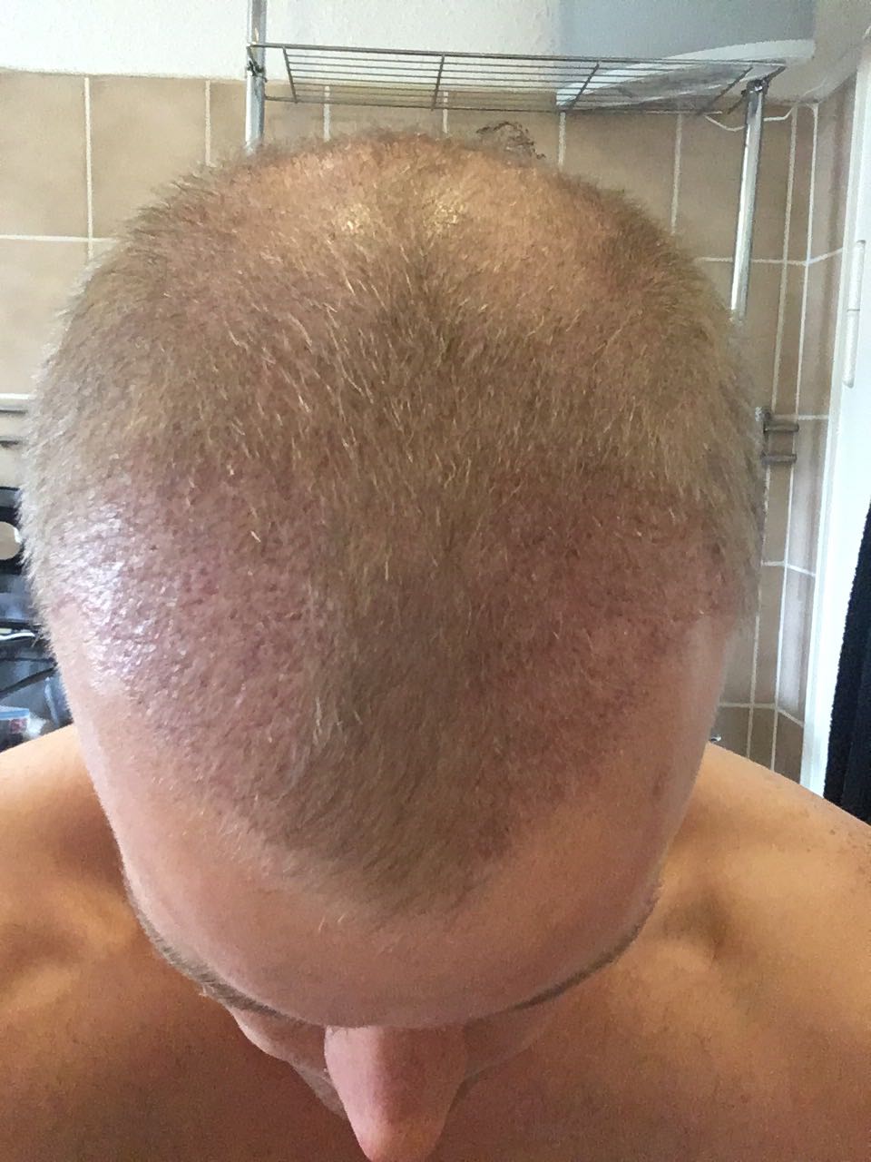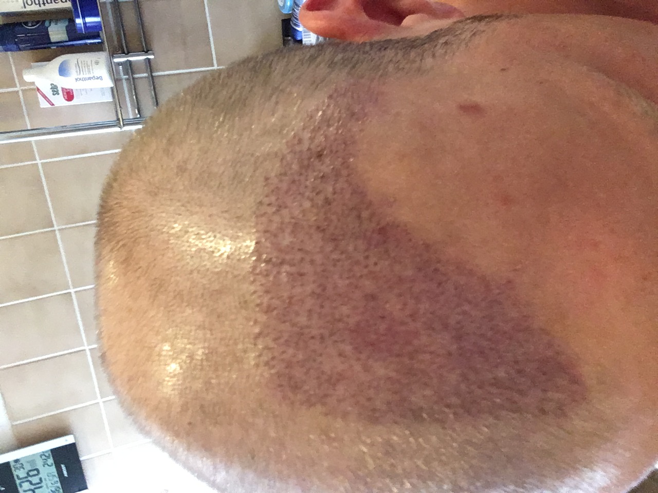 Man muss dazu noch sagen, dass ich mein T-Shirt die Nacht über anbehalten musste, weil ich beim Ausziehen die Grafts hätte berühren können. Insofern empfehle ich jedem, an dem Tag lieber ein kurzärmliges Hemd anzuziehen.