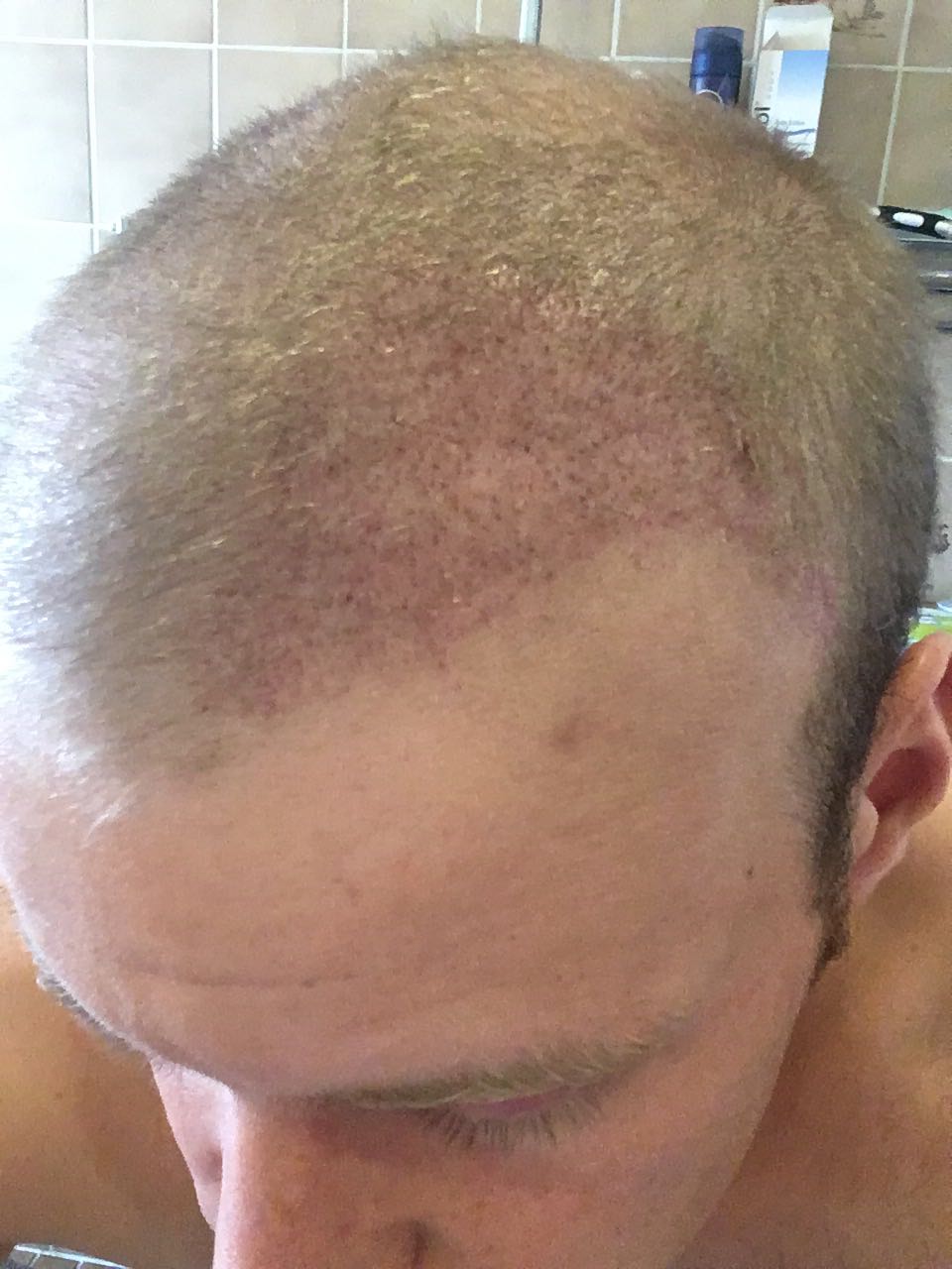 Es wurden dann insgesamt 3.250 Grafts vereinbart (3000 Geheimratsecken, 250 Tonsuransatz auf meinen eigenen Wunsch hin) und mir wurde anschließend der Kopf rasiert. Außerdem wurde noch eine kleine kahle Stelle nahe meiner linken Schläfe auf meinen Wunsch hin behandelt, die ich vermutlich bereits von Geburt an hatte. Danach folgte die Bezahlung in bar, über die ich eine Rechnung erhielt. Insgesamt habe ich 3.750€ bezahlt (inklusive Hotel etc.; wie gesagt bis auf den Flug quasi all inclusive).