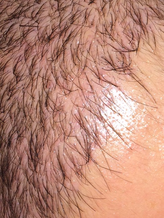 Im Donor lassen sich keine Haare zupfen, im Bereich in dem mit ~ 27 FU/cm2 in bestehendes Haar vereichtet wurde, ist generell eher eine Dichte von 10-15 FU/cm2 zubsehen.