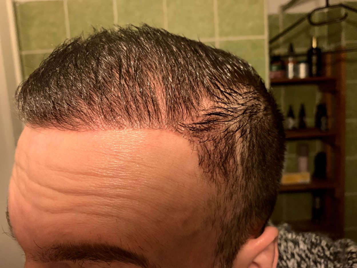 Und wer vorher keine oder wenig Schläfendreiecke hat, der darf die abgerundeten Ecken and den GHEs nicht setzen lassen. Lass mal den Donor wachsen so auf 8 bis 10mm. Bisschen Pflege mit Kokosöl.