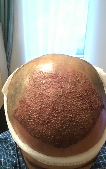 Dein Donor sieht extrem schlimm aus, kürze hinten auf 0mm dann weist du was ich meine. Schaut für mich danach aus, als hätte er deine Grafts mit äußerster Kraftanwendung geerntet! Selbst wenn die Haare anwachsen, mach dir keine Hoffnungen, dass diese dauerhaft bleiben. Wenn bei der Extraktion fehlerhaft gearbeitet wurde, werden die angewachsen Haare innerhalb der nächsten 6 Jahre wieder dauerhaft ausfallen.