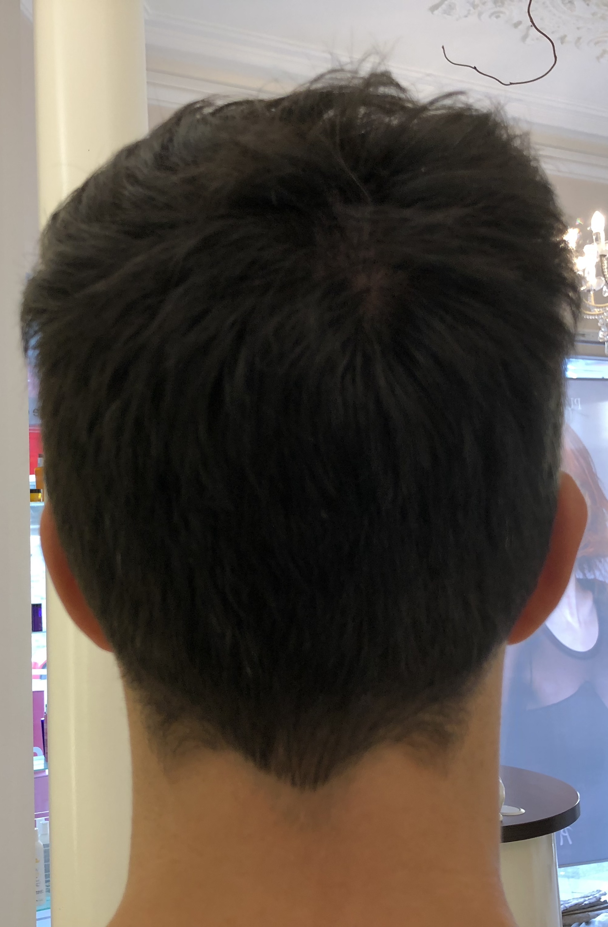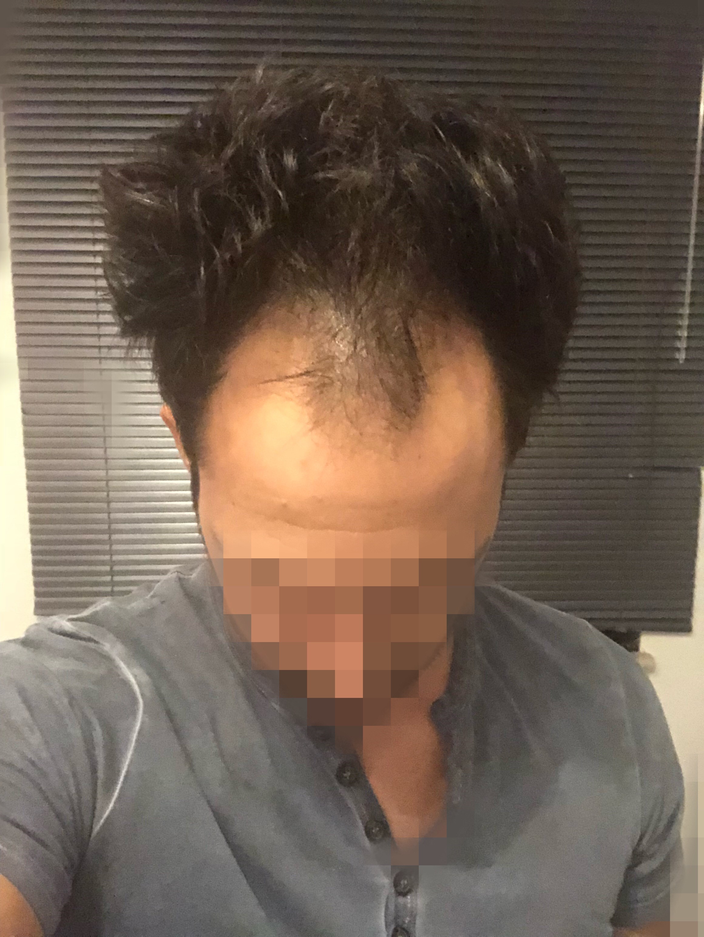 Nun wie gesagt, die Haarlinie ist ein minimales Stück über meiner natürlichen Haarlinie und einen Finger über dem letzten Stirnmuskel. Man stelle sich vor, ich hätte keinen Haarausfall gehabt, dann wäre sie doch auch ähnlich.