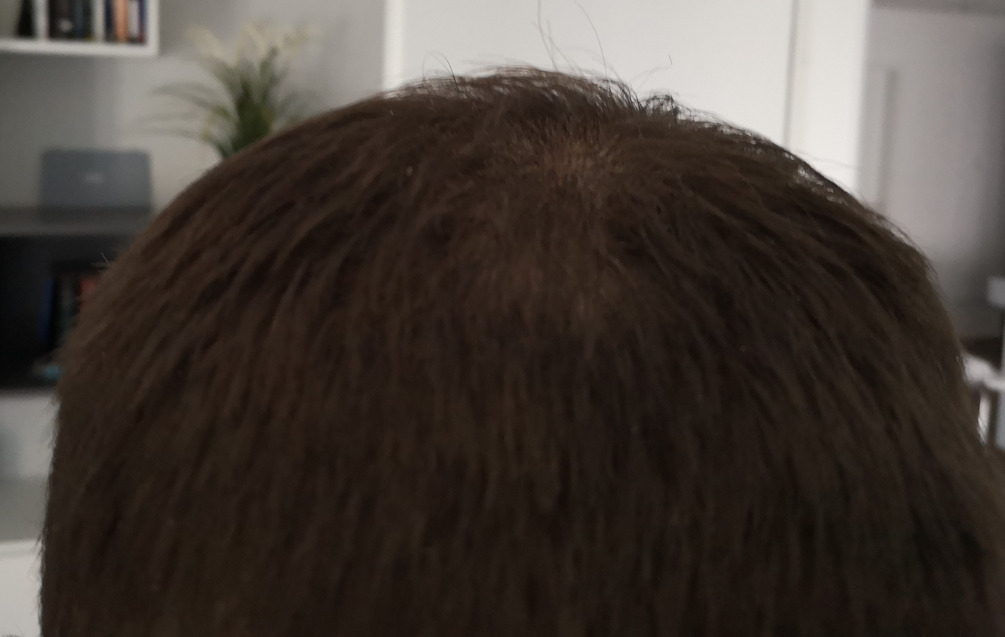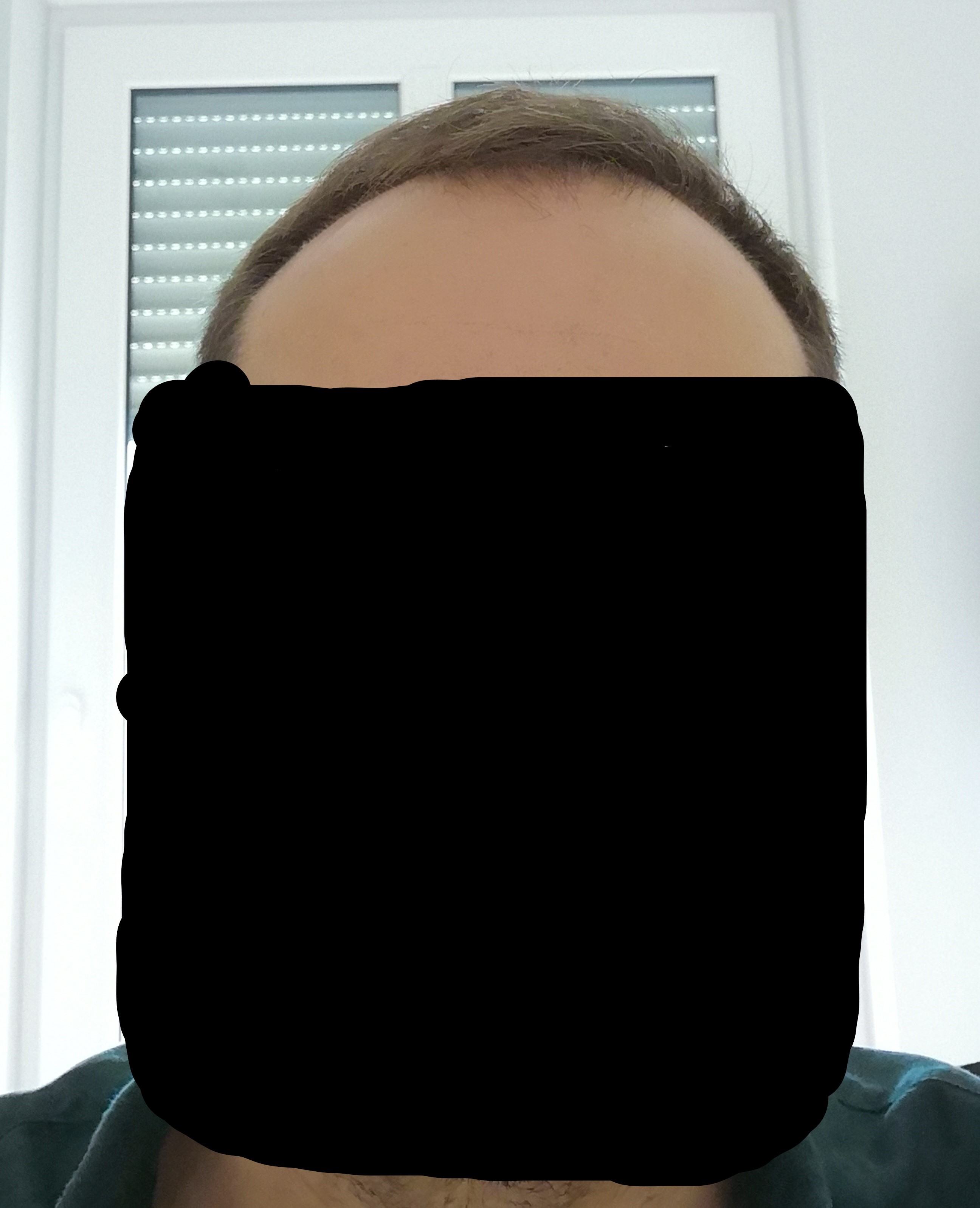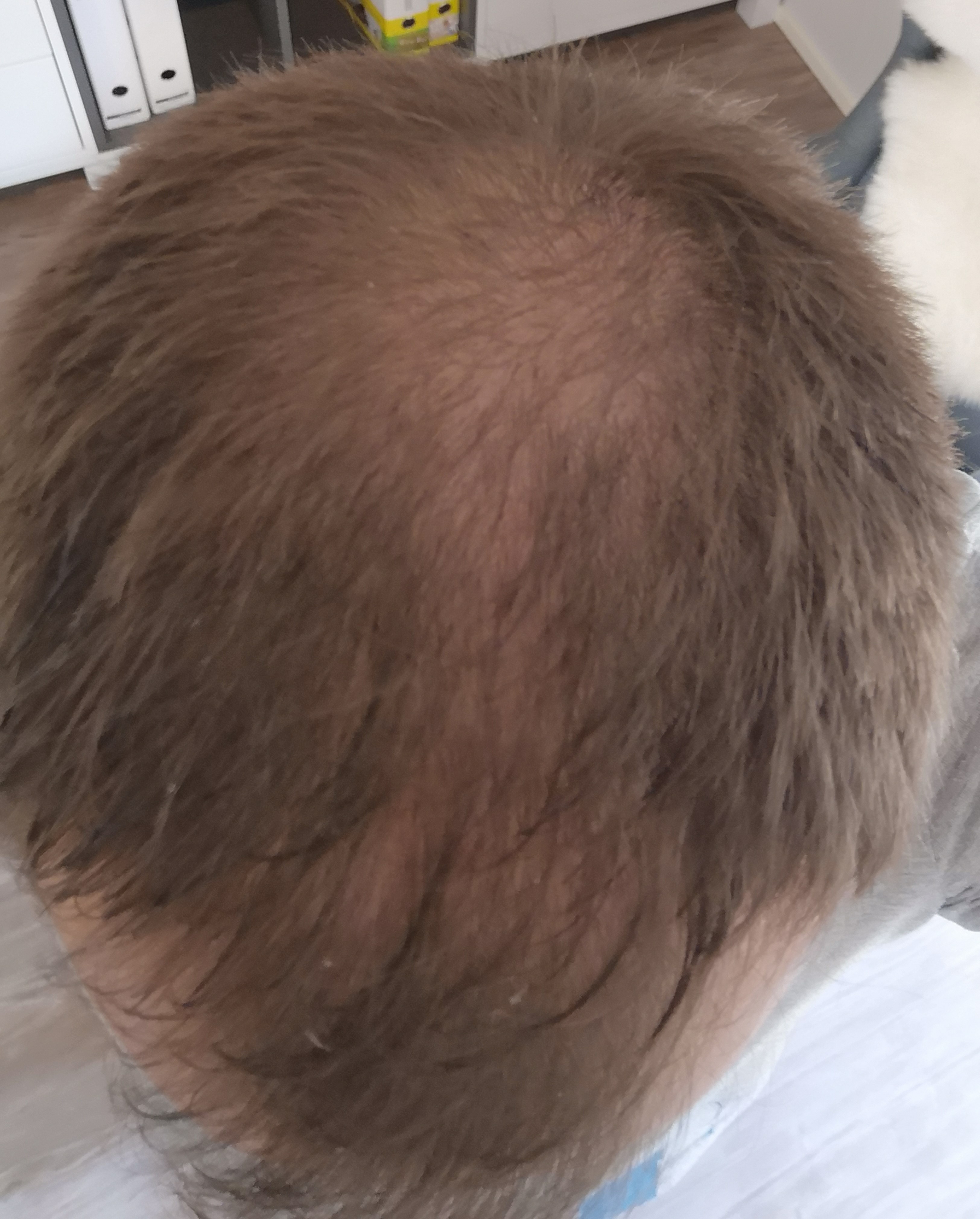 NW 5 habe ich denke ich noch nicht (Vergleich zu diesen Patienten https://naturaltransplants.com/results/hair-transplant-before-and-after/norwood-5/). Habe einfach bewusst die hellste Lampe in der Wohnung genommen und direkt drunter gestellt. Anbei noch zwei Fotos von heute mit normalem Licht und etwas fettigen Haaren.