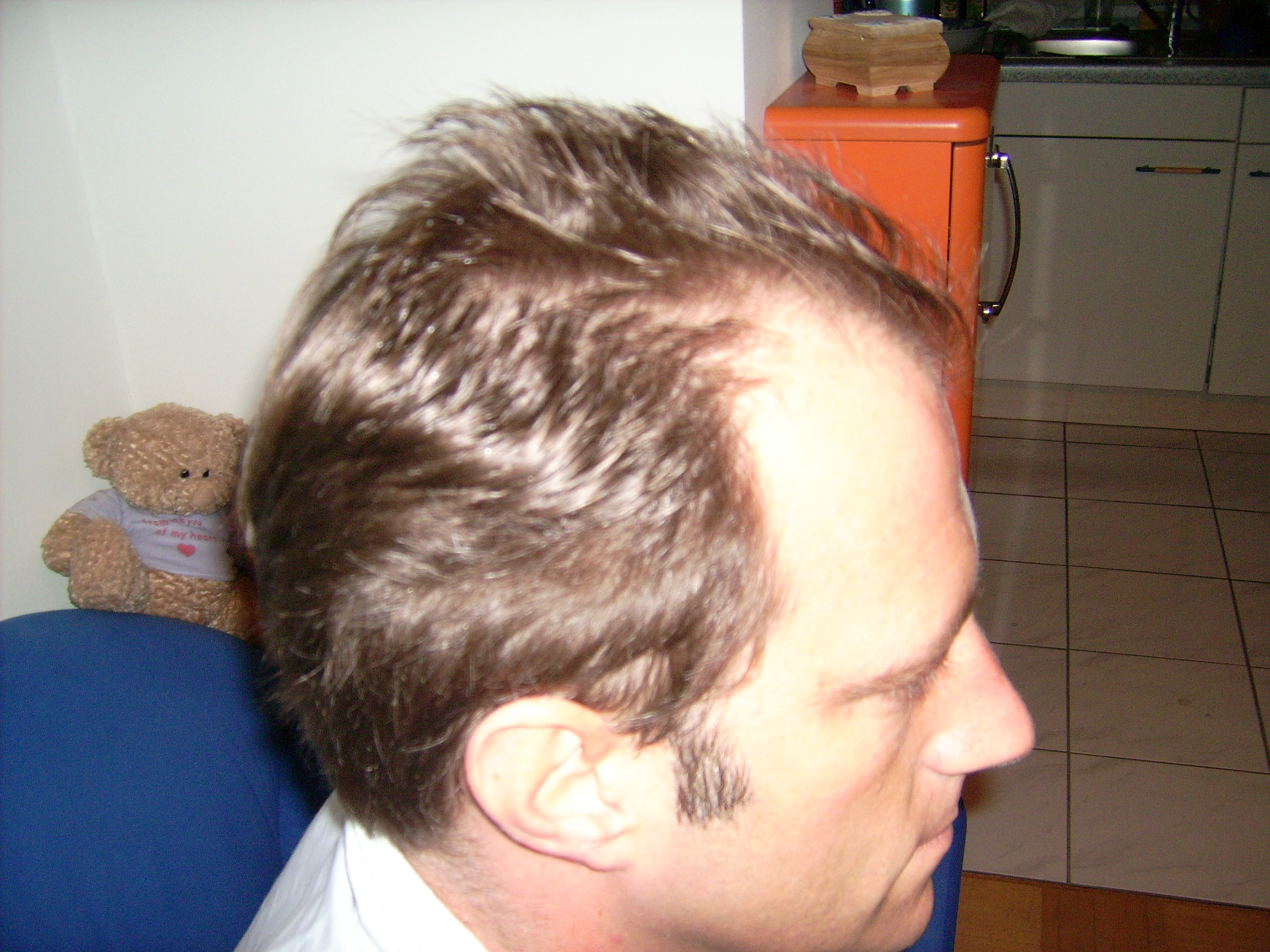 Hoffe dass meine Haare im hinteren Bereich dann ausreichen, um die wegrasierten Haare vorne einigermaßen zu kaschieren......