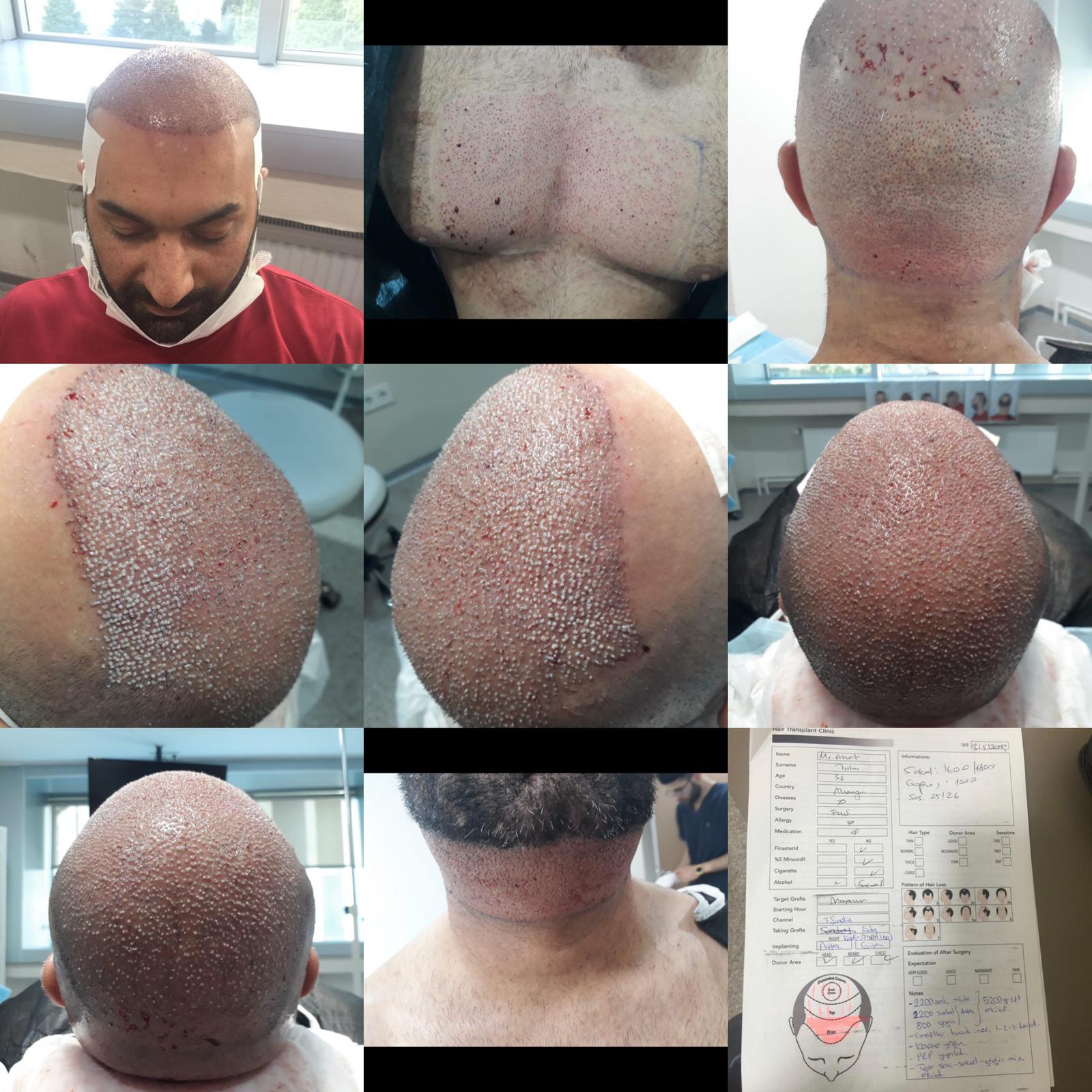 - ich hatte bereits eine HT in einer anderen Klinik über 2000 Grafts, womit ich äußerst unzufrieden war (Bild 1)