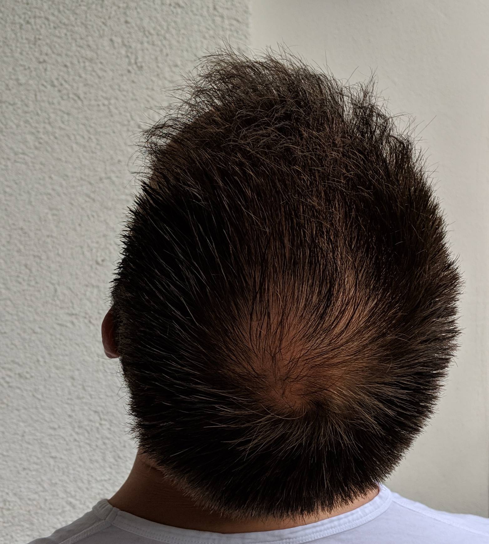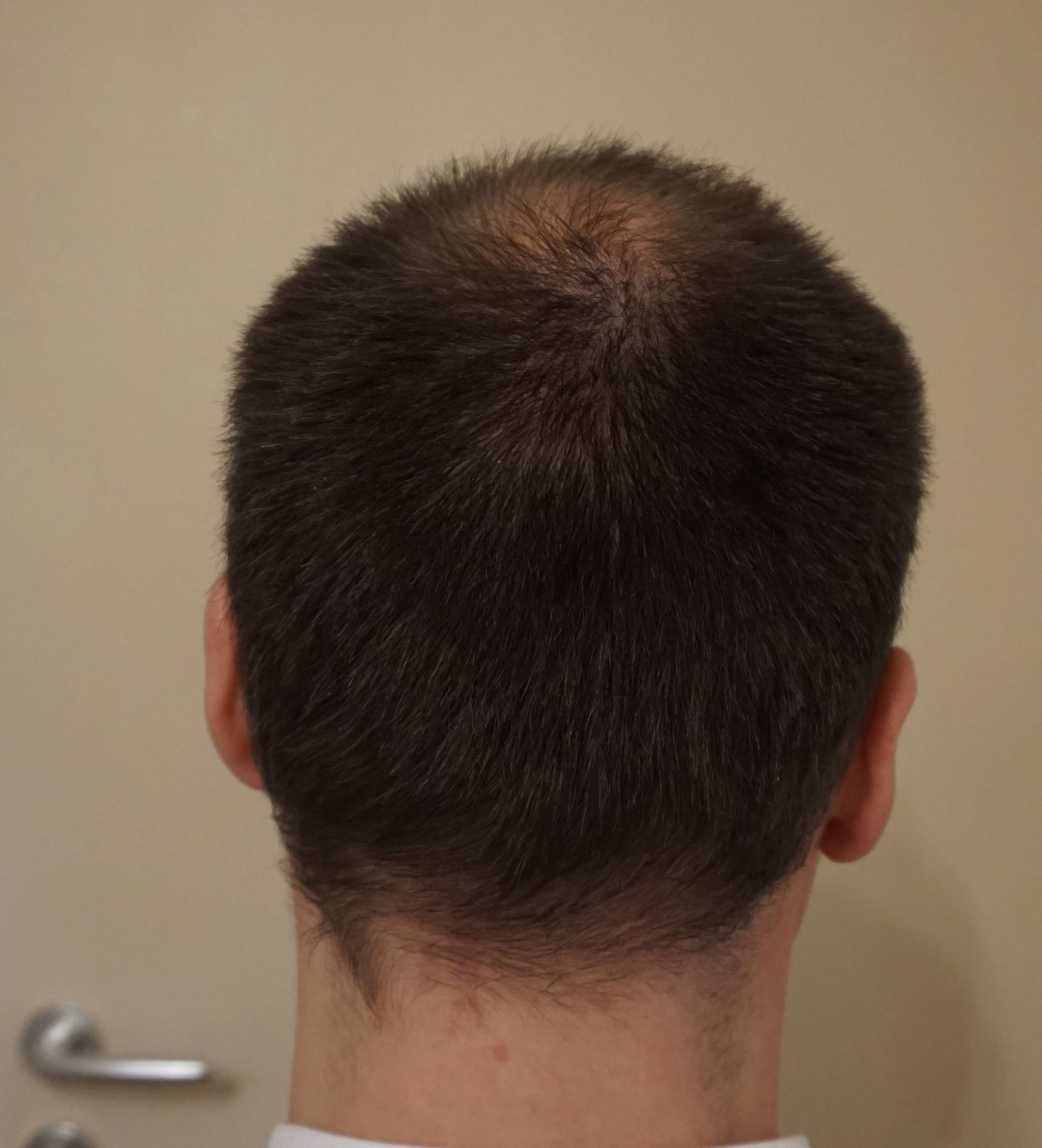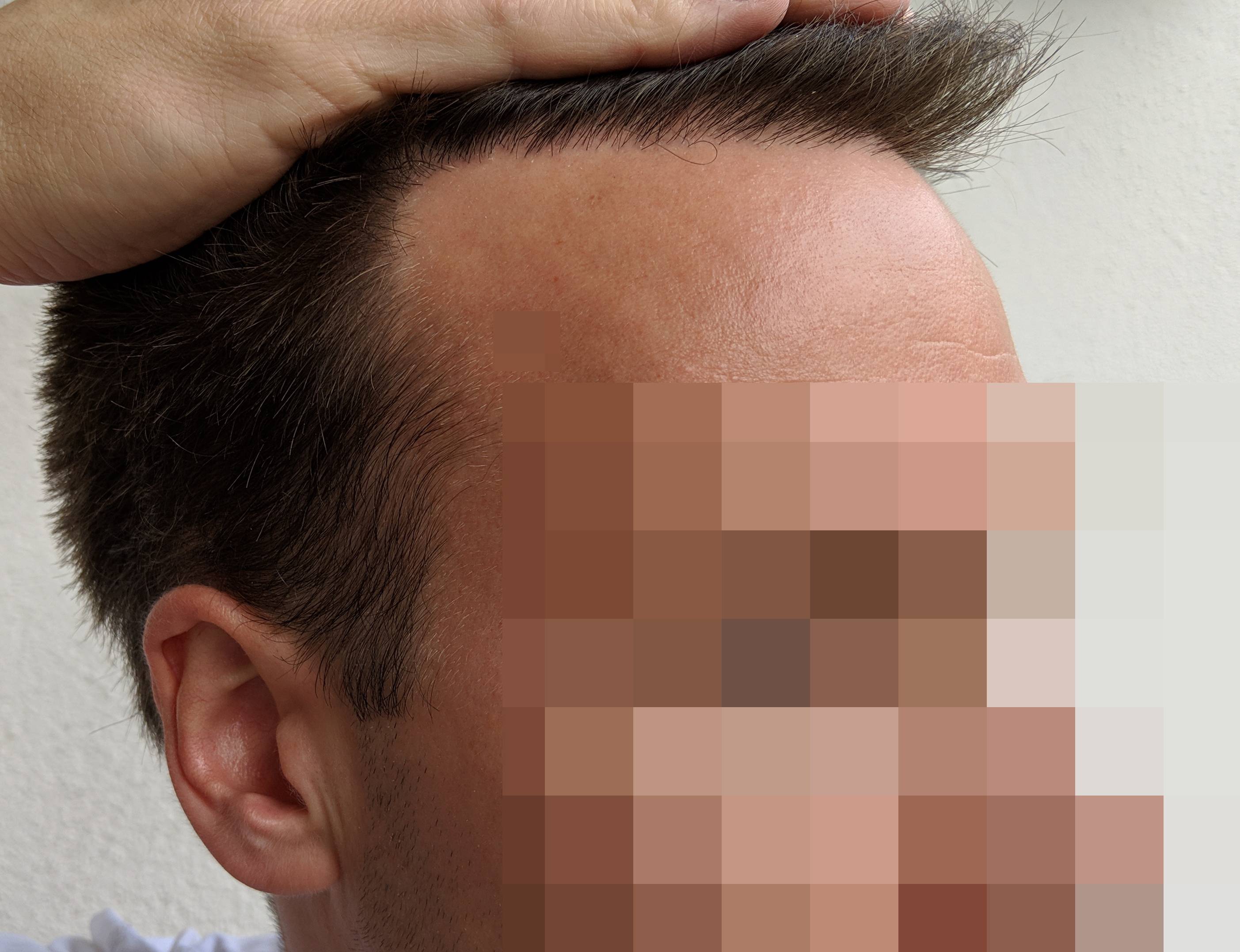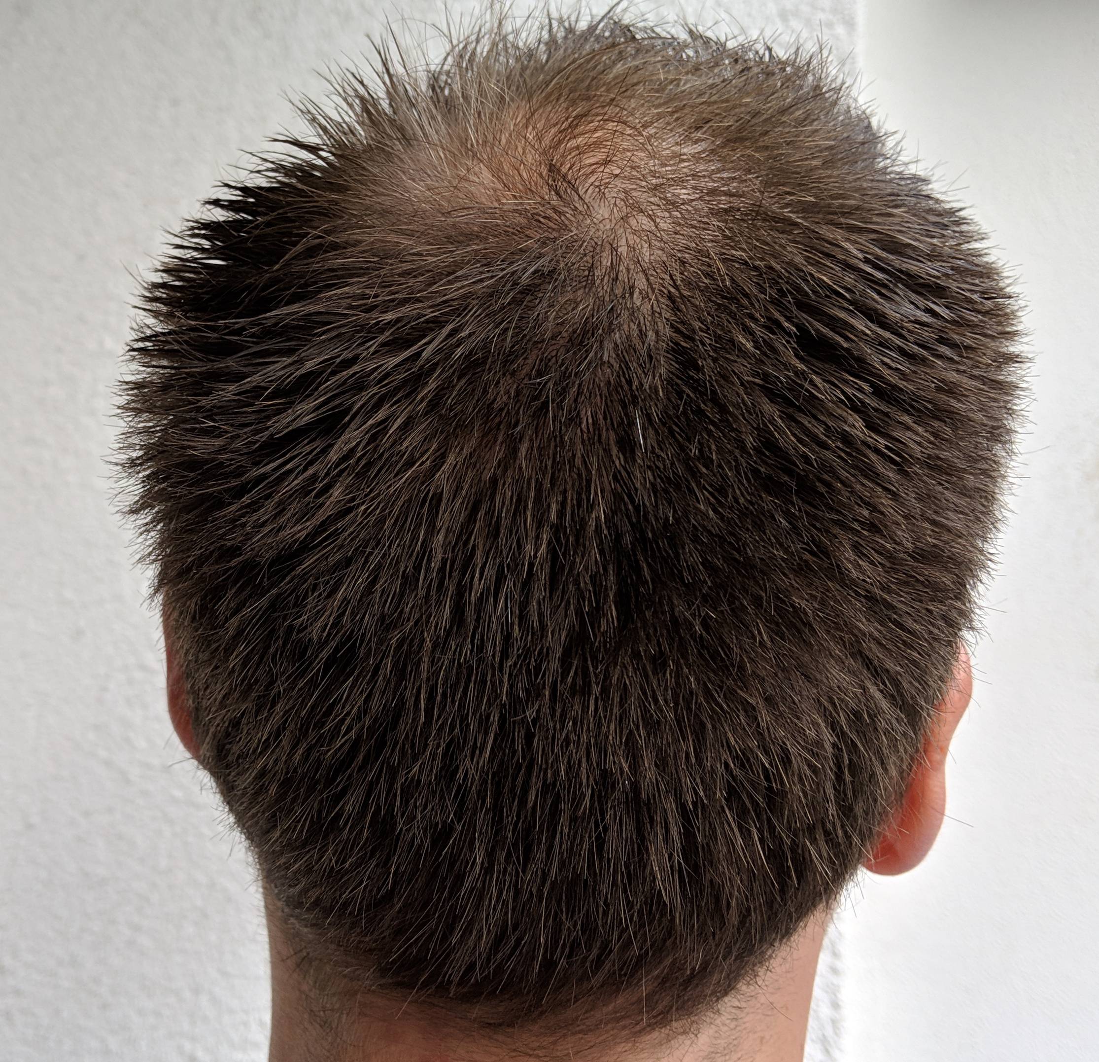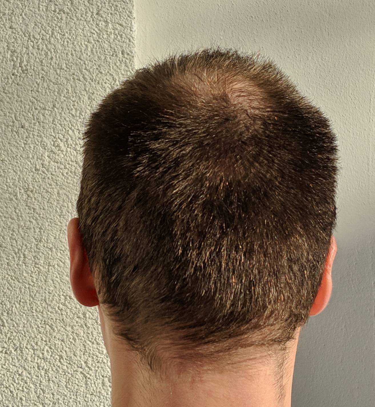Fazit: Das Ergebnis finde ich gut. Ich wünsche mir aktuell mehr Haare bei der Tonsur und hoffe, dass sich die Front noch etwas stärker verdichtet.
