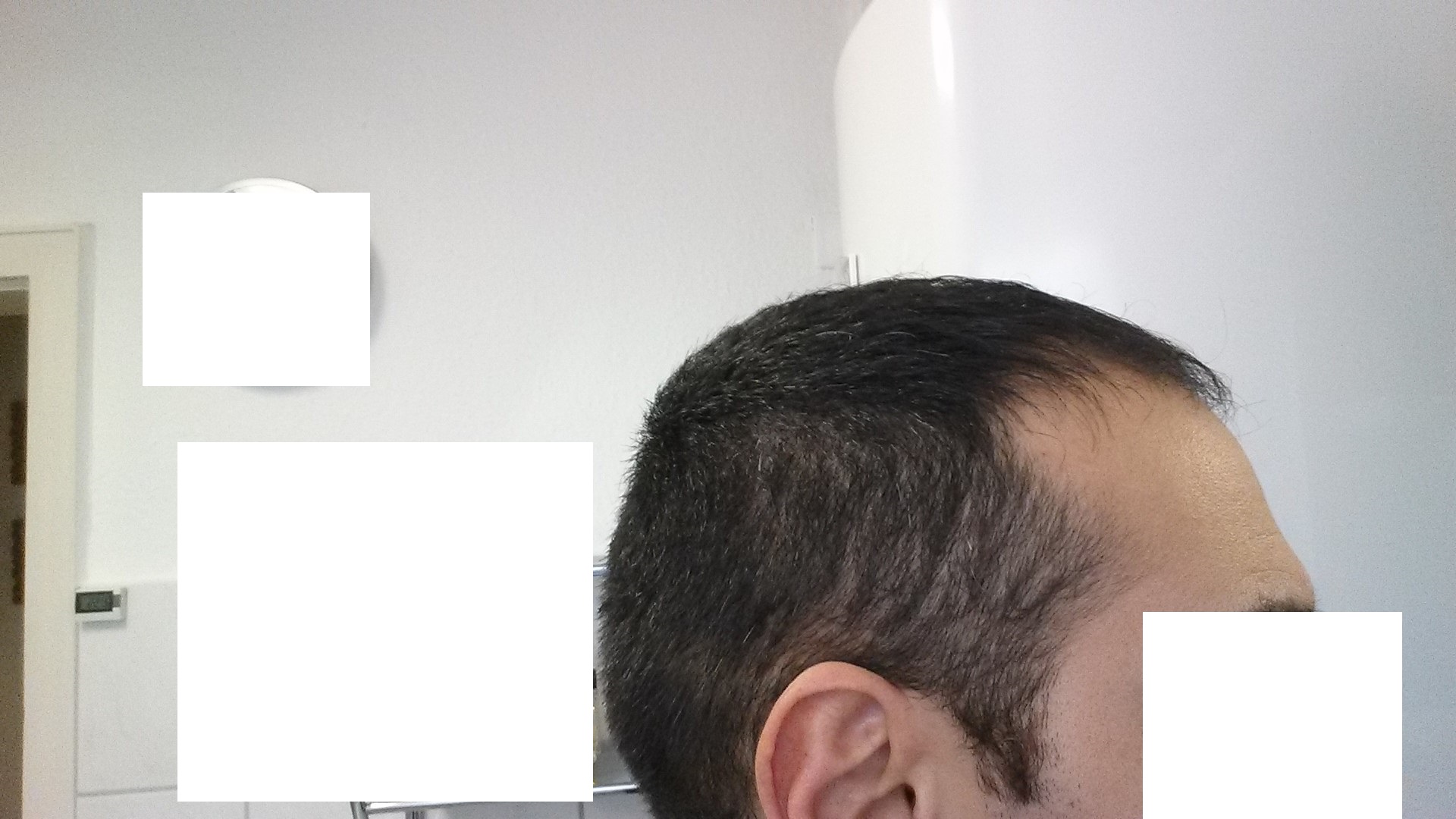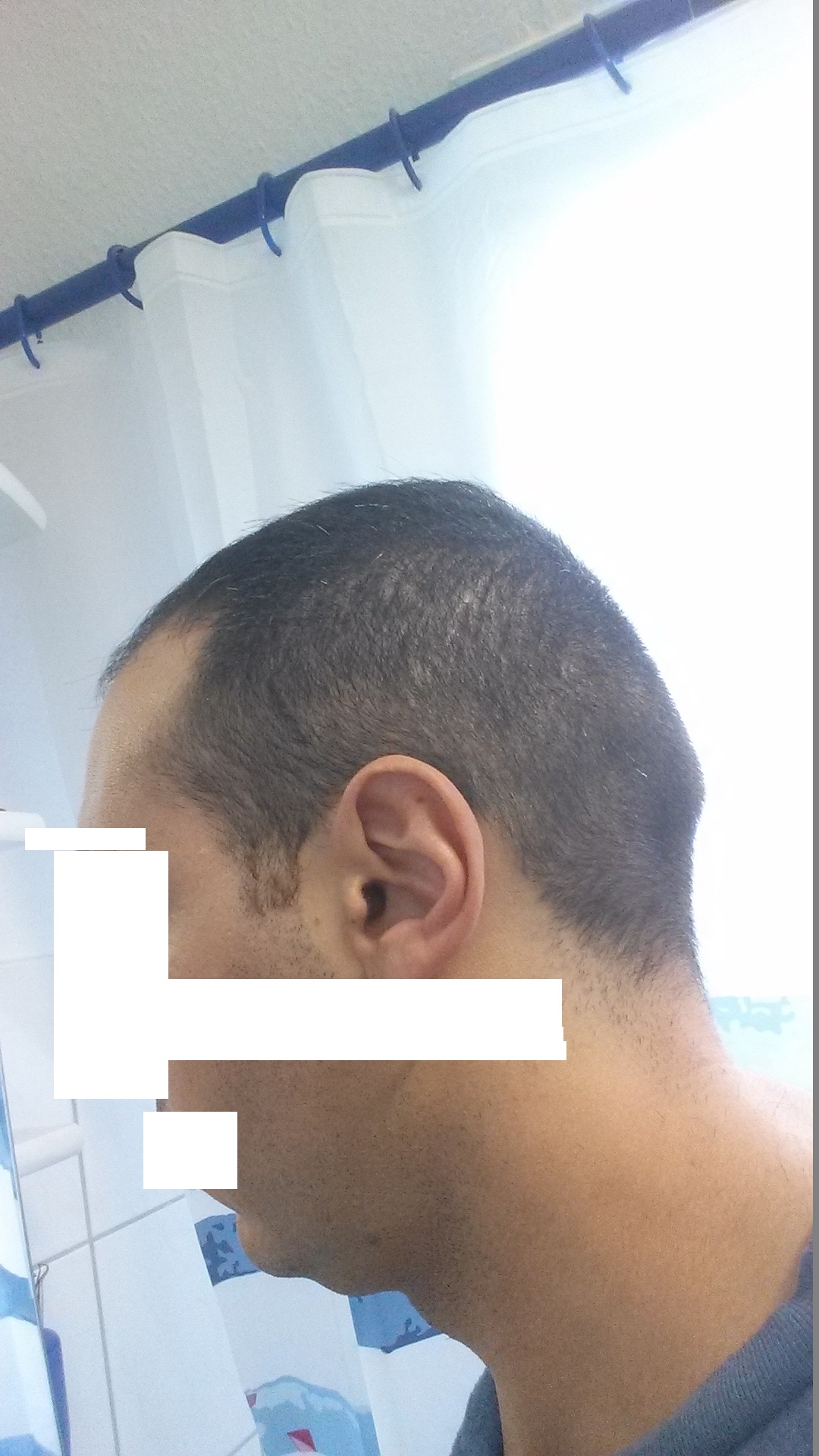 Am Donorbereich sind die Haare ziemlich schnell nachgewachsen, und am Empfängerbereich sieht es ziemlich licht aus jetzt.