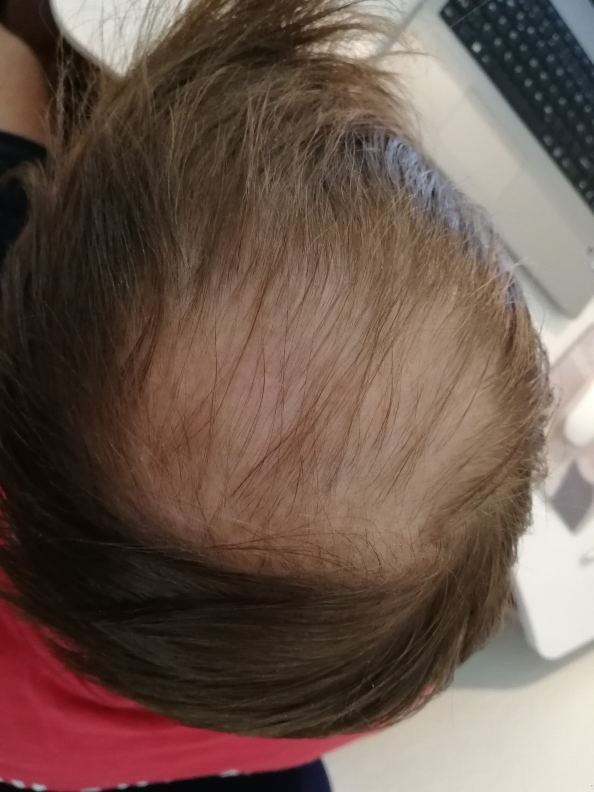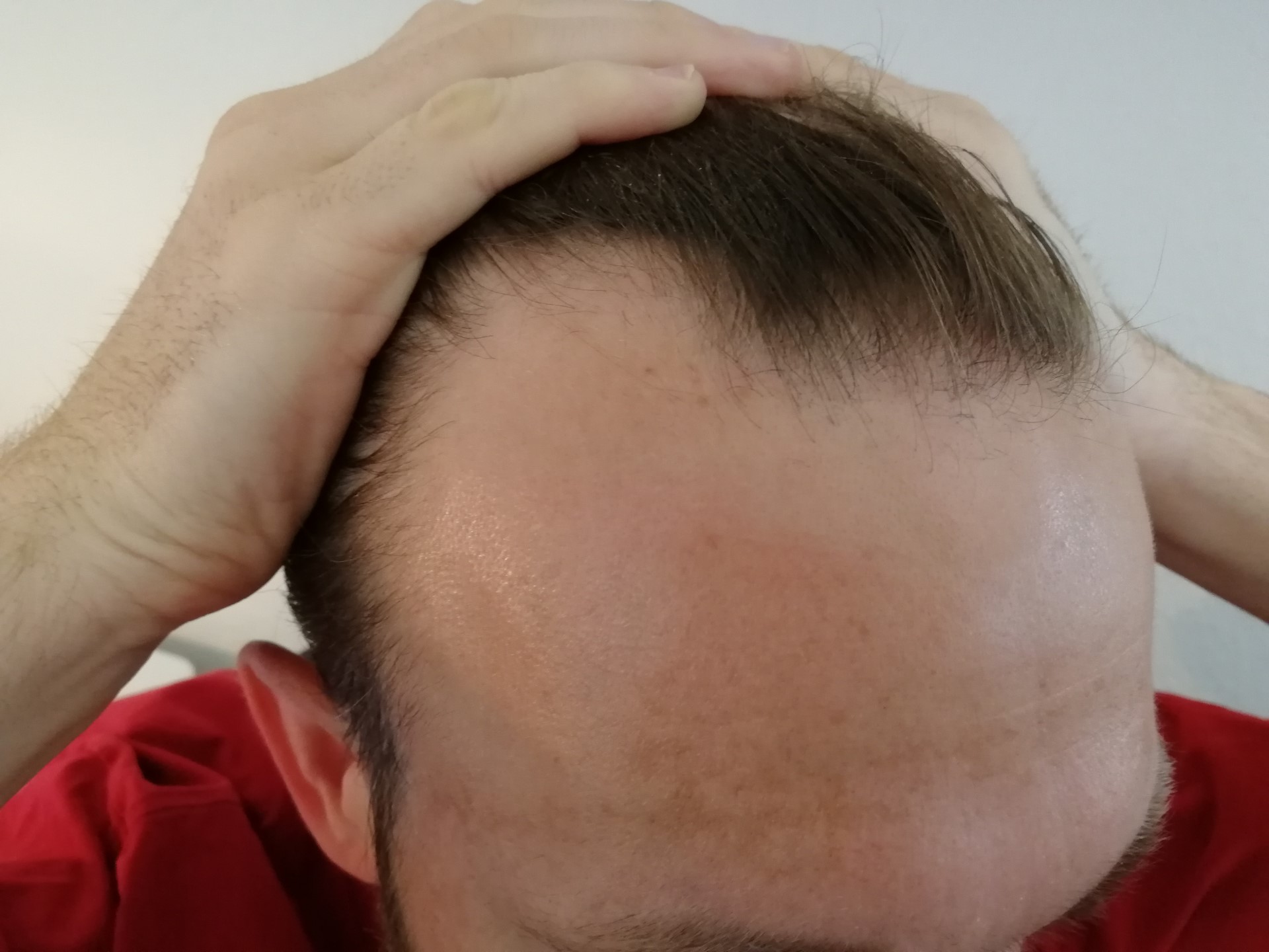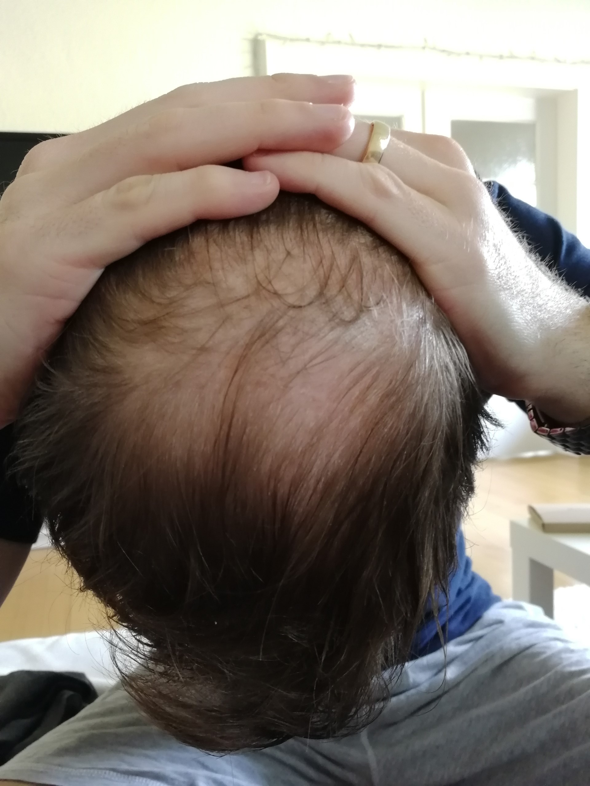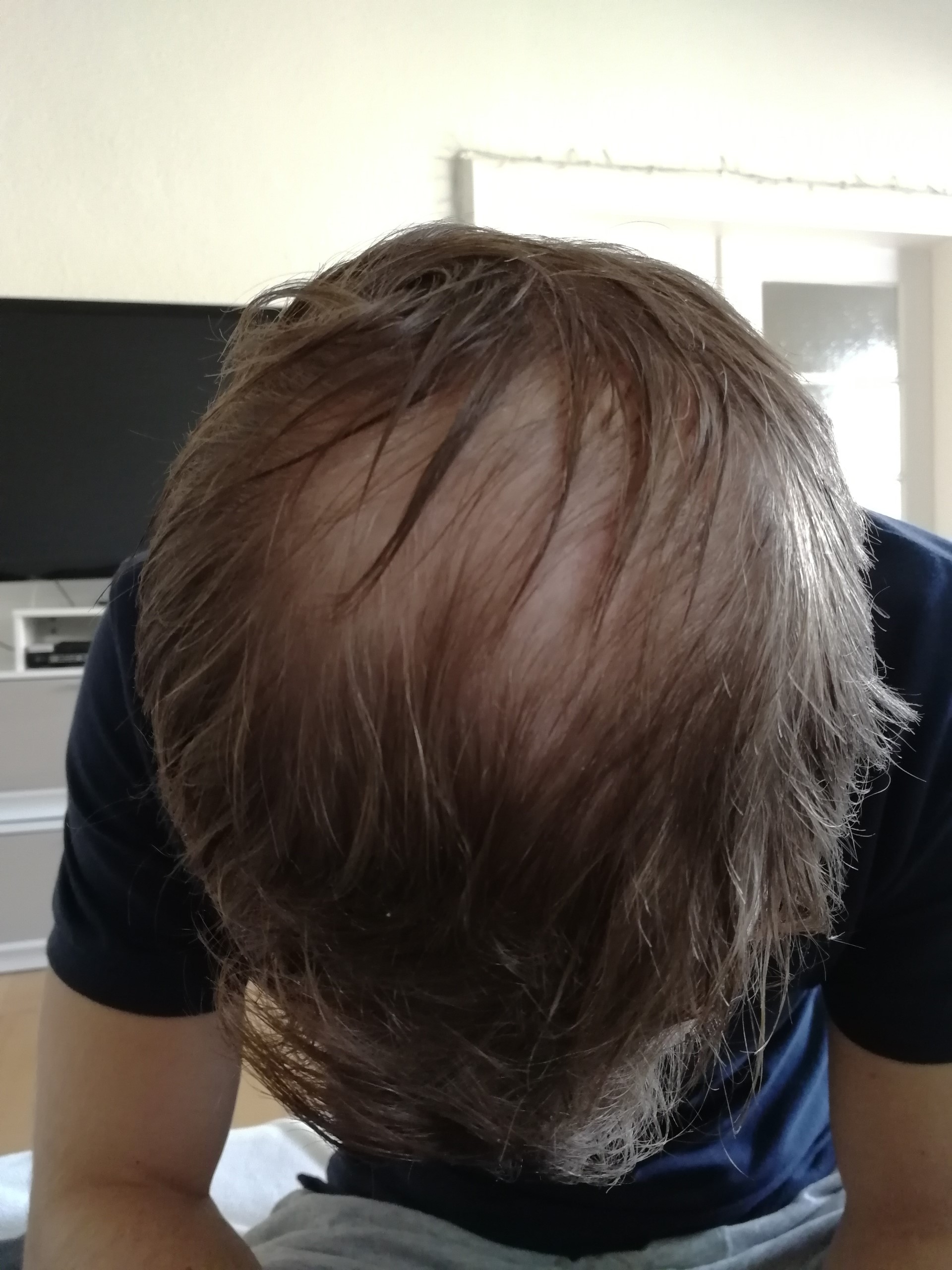 * Aktueller Haarstatus nach der Hamilton-Norwood-Skala: III vertex würde ich tippen