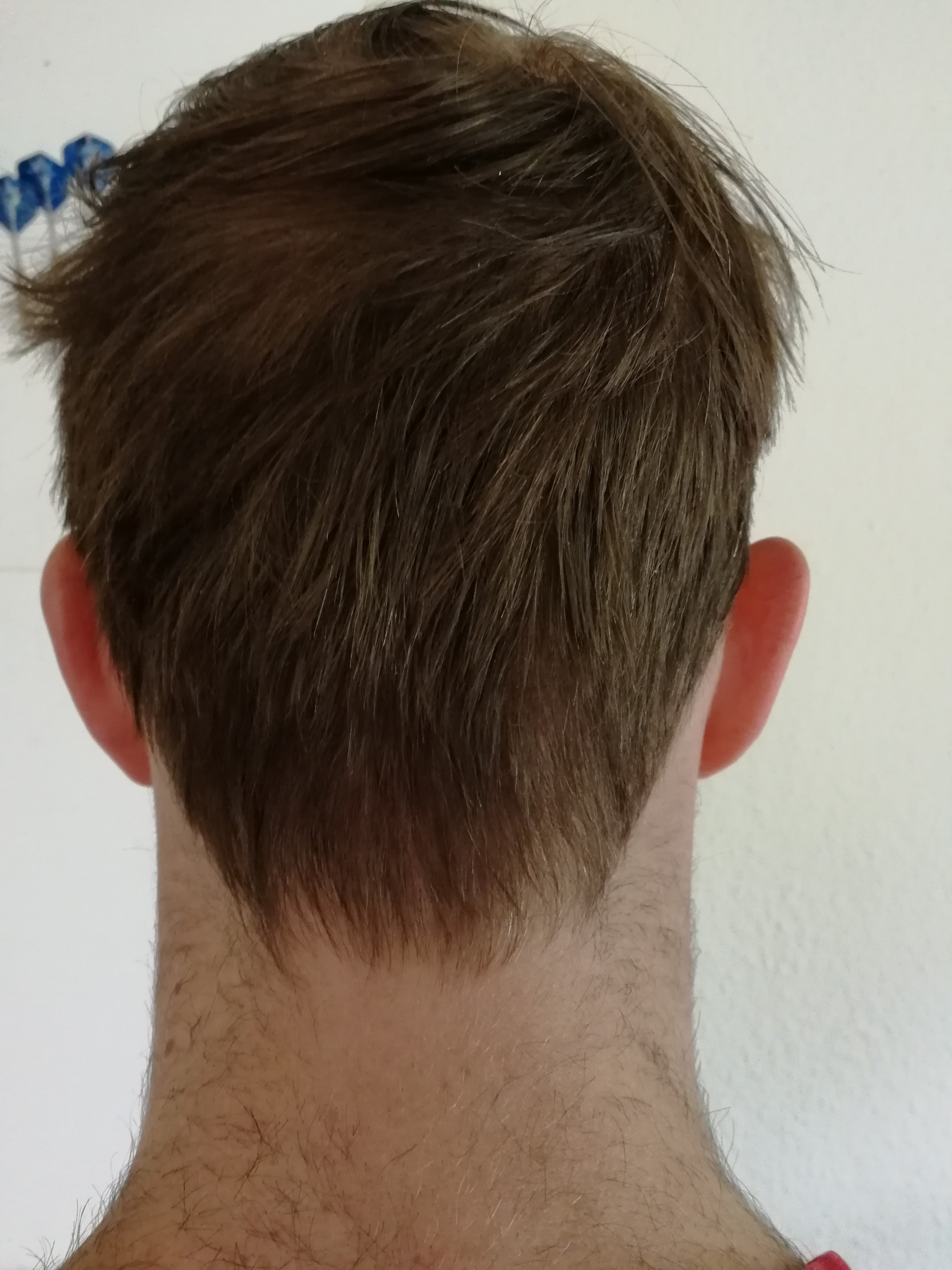 * Haarstatus in der Familie (Eltern/Großeltern): Vater leichte Geheimratsecken, Großvater väterlicherseits volles Haar, Großvater mütterlicherseits glaube Halbglatze