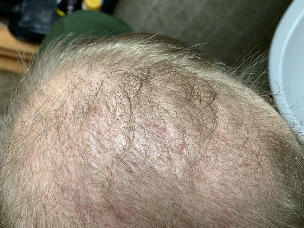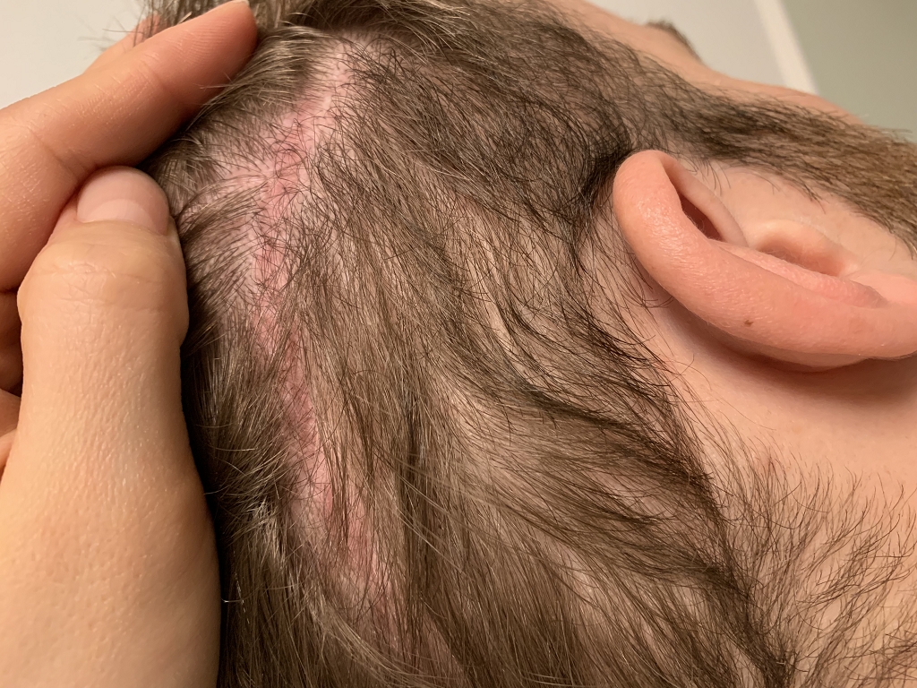 Ich hatte einen sehr typischen Verlauf. In den ersten zwei Wochen standen vorsichtige Haarwäschen an. Mein Kopf schwoll an bis auf die Größe eines Kürbis. Die Narbe entwickelte sich gut und ich ließ die 59 Klammern bei meinem Hausarzt entfernen. Nach 2 Wochen begannen die Haare auszufallen und ich war nach 4 Wochen alle los. Das war erstmal schwer zu verkraften. Auch weil sich danach erst einmal wenig tat. Erst jetzt zwischen Woche 14 - 16 tauchten die ersten Haare wieder auf. Ich versuche das im folgenden an der Galerie deutlich werden zu lassen. Bilder sagen ja mehr als 1000 Worte. Ich werde mich zudem bemühen in Zukunft monatlich, beginnend ab Anfang Februar zu berichten.