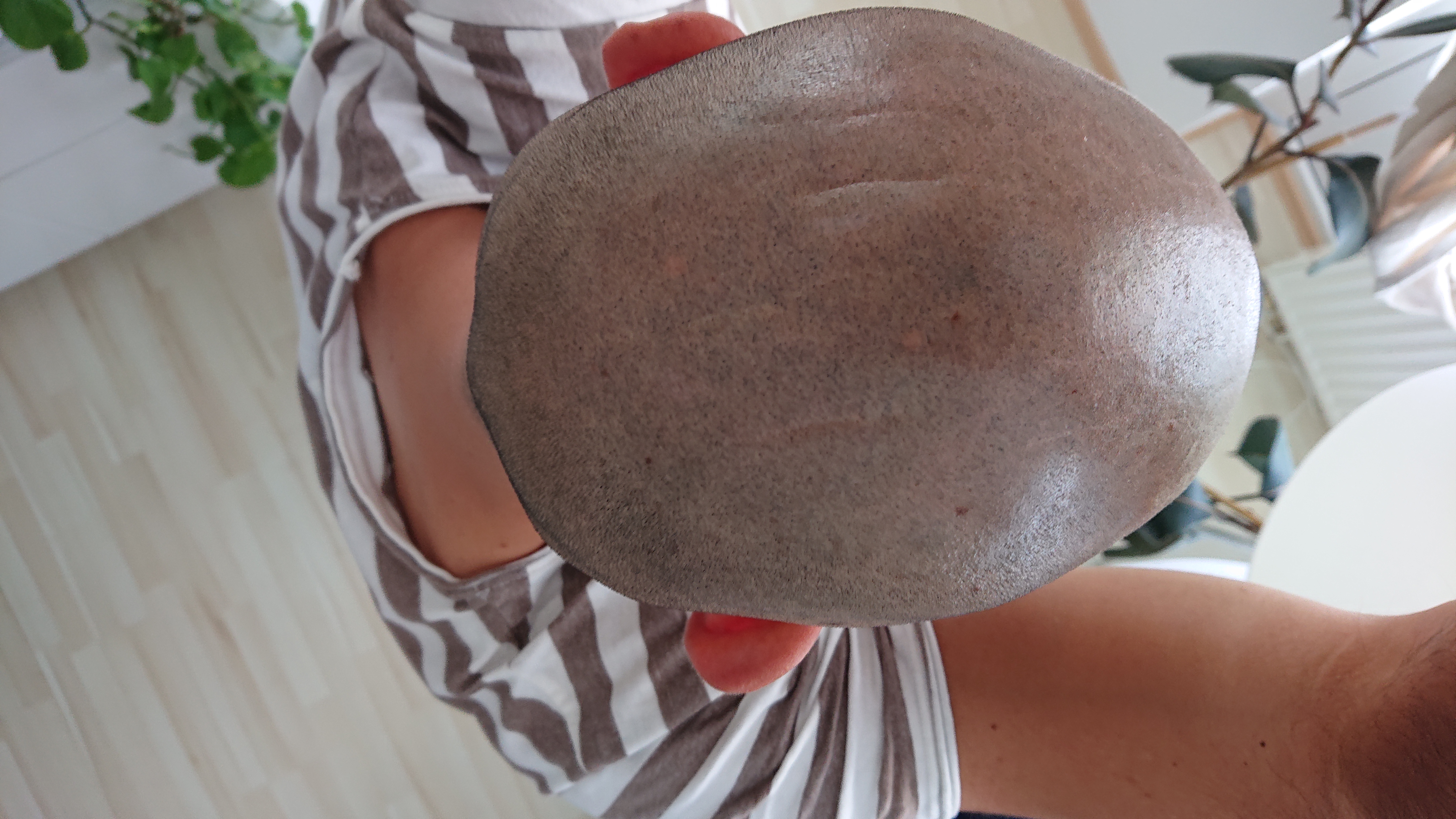 Bzgl. meiner Haarfarbe: eigentlich war die immer dunkelbraun. Aber die noch vorhanden Haare am Haarkranz sind extrem dick, weshalb sie auch sehr dunkel aussehen. Mirko hat den dunkelsten Farbton gewählt.
