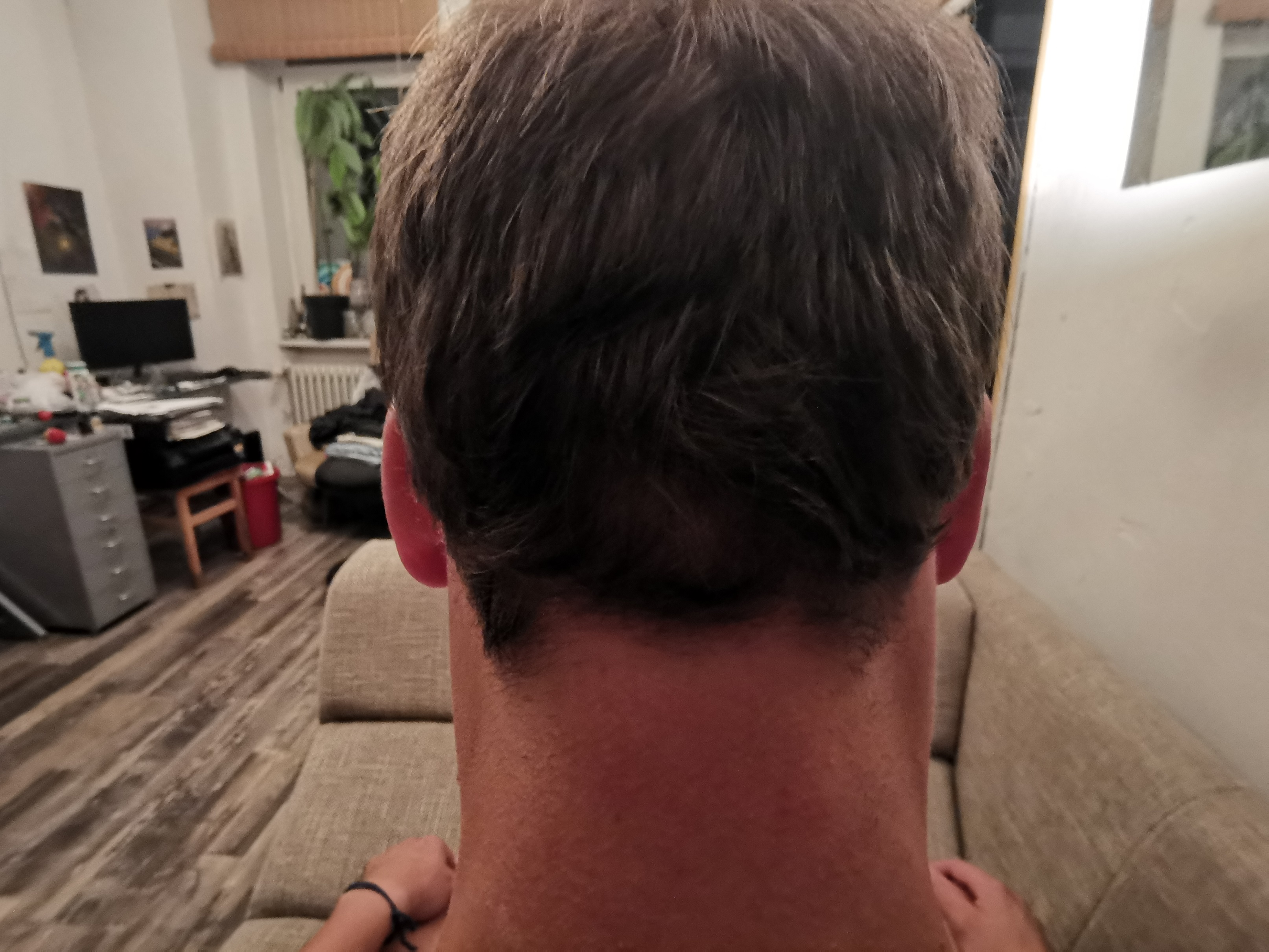 Noch bekomme ich keine blöden Sprüche reingedrückt, ich fühle mich durchweg angenommen und die stetig wachsende Anzahl wunderschöner Menschen die Körperkontakt zu mir suchen, fangen mich etwas auf. Ich will nur nicht irgendwann wie ein in die Jahre gekommener Clown aussehen, sondern würdevoll mit meinem lichter werdenden Haupthaar umgehen.