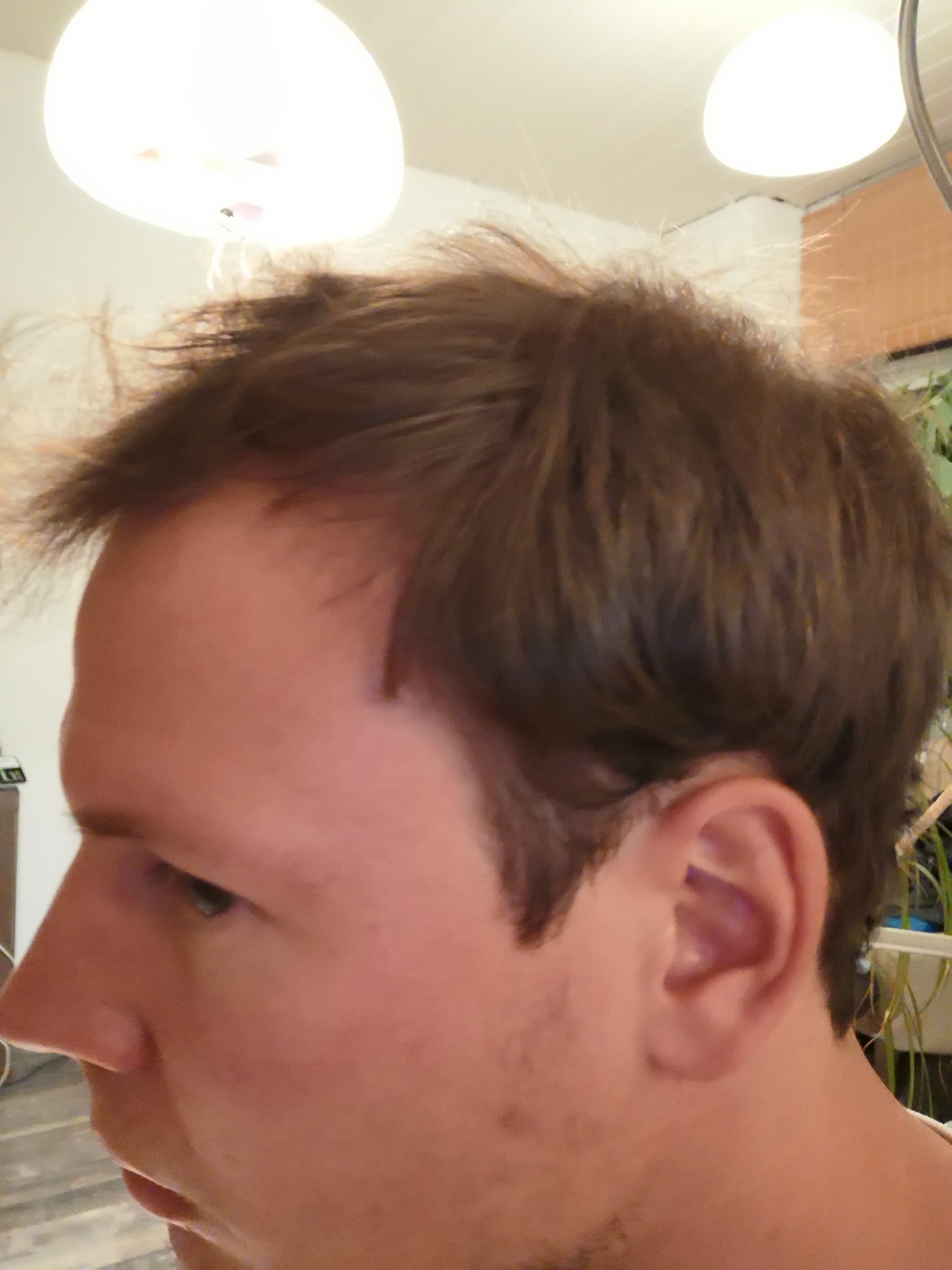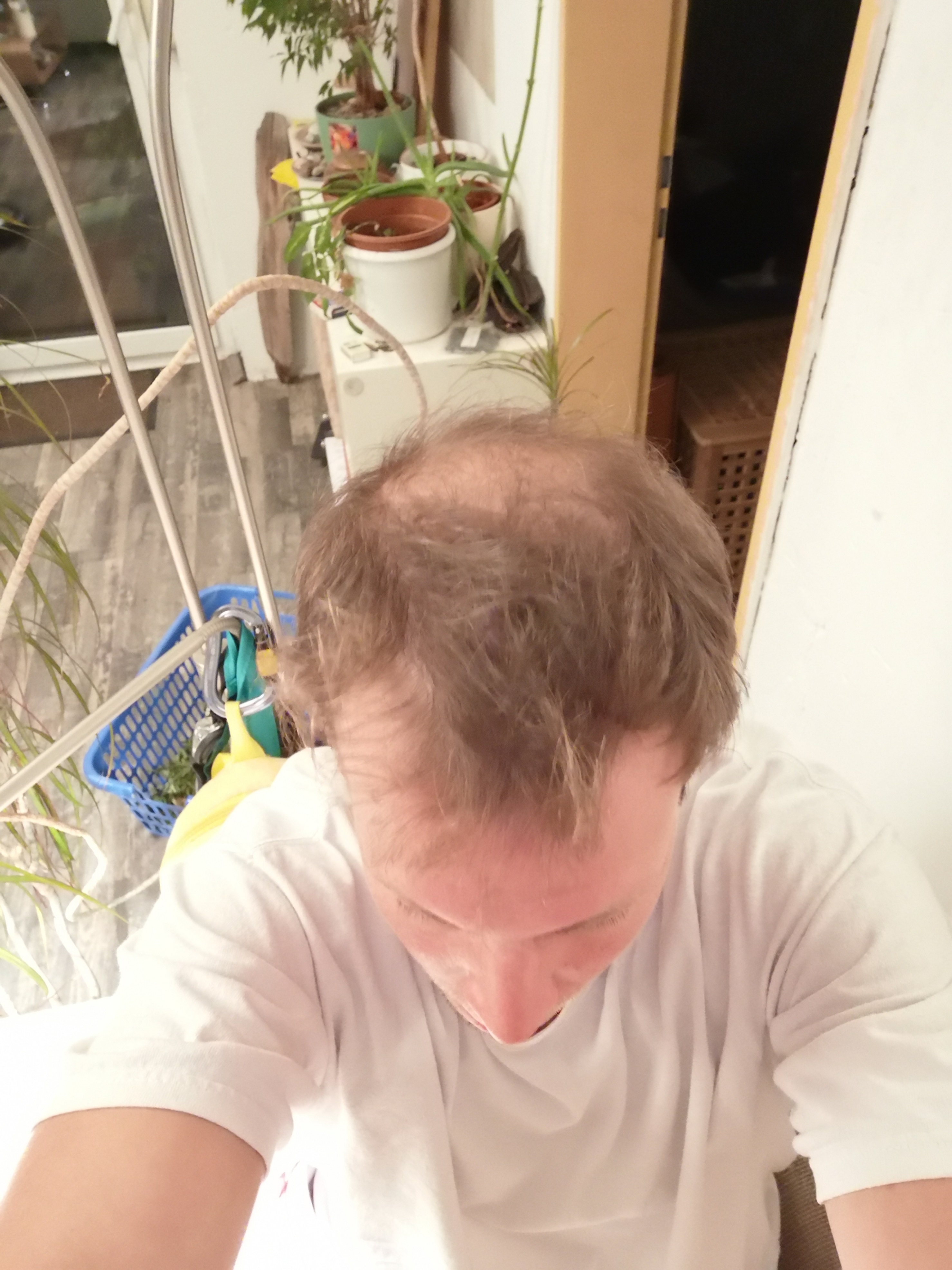 Ausfallverlauf (schnell/langsam?): hohe Stirn seit Mitte 20, seit Ende 20 breitet sich die Tonsur aus