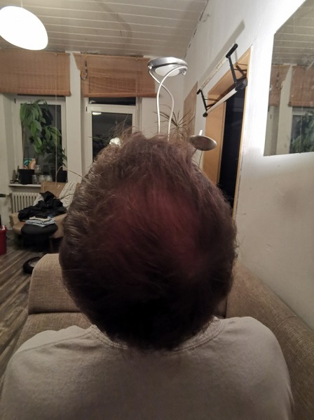 Noch bekomme ich keine blöden Sprüche reingedrückt, ich fühle mich durchweg angenommen und die stetig wachsende Anzahl wunderschöner Menschen die Körperkontakt zu mir suchen, fangen mich etwas auf. Ich will nur nicht irgendwann wie ein in die Jahre gekommener Clown aussehen, sondern würdevoll mit meinem lichter werdenden Haupthaar umgehen.