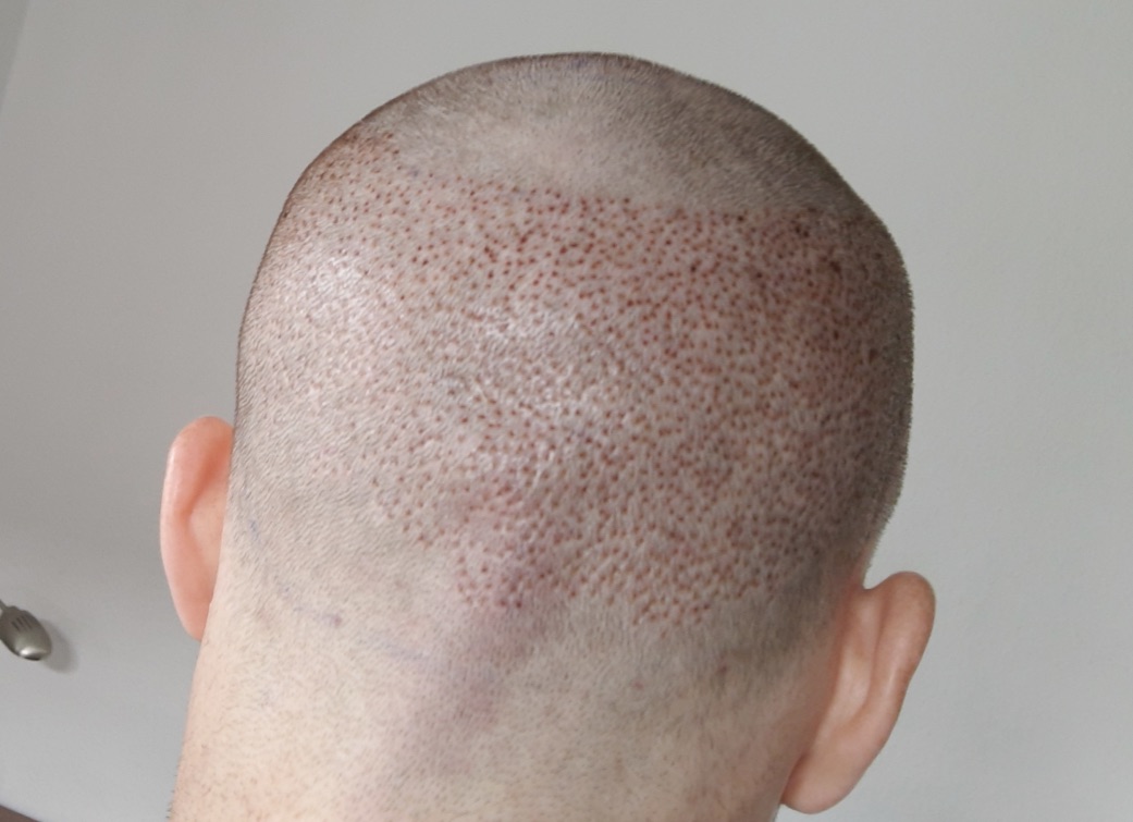 Das Foto ist gleich nach meiner 1. OP bei Dr. Sahinoglu aufgenommen worden. Er verwendet, meines Wissens einen 0,9er Punch. Ich weiß nicht, ob er den Aufsatz je nach Haaranzahl wechselt. Nach meiner 2. OP bei ihm hatte ich mit shockloss überm rechten Ohr zu kämpfen, was sich mittlerweile halbwegs gelegt hat.