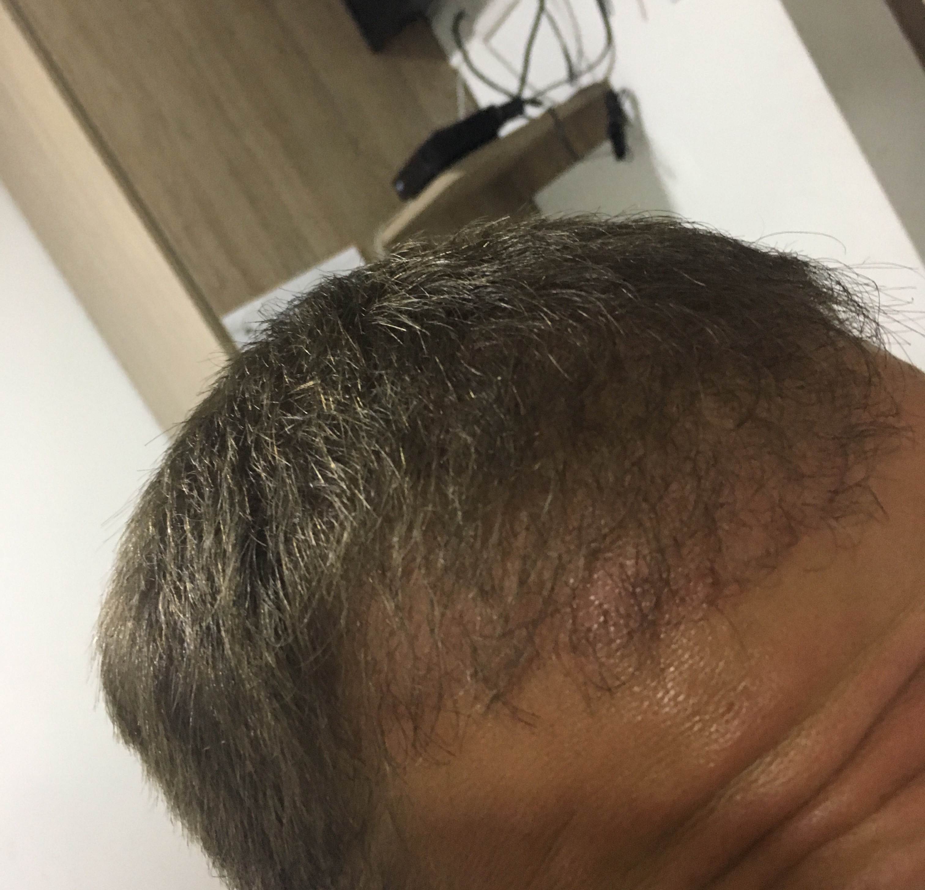 Die Rötung ist leider nach wie vor sichtbar, da muss man wohl Geduld haben. Habe die Haare einmal vor nem Monat komplett auf 2mm gekürzt, seitdem nur die Seiten.