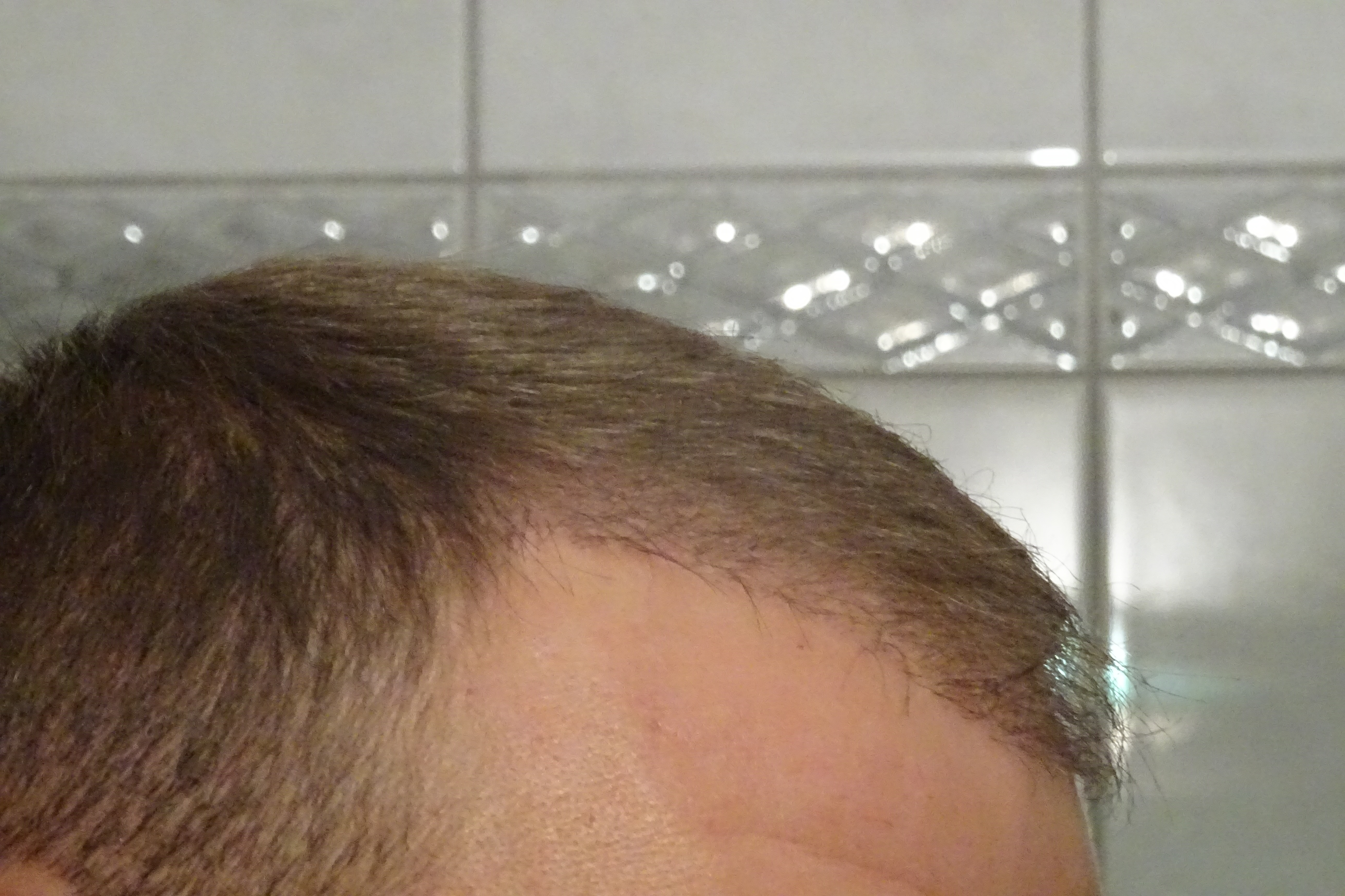 Meine Stirn war schon immer relativ hoch, dadurch dass die Haarlinie nun einen guten Zentimeter zurück gerutscht ist, sieht es jetzt für meinen Geschmack nicht mehr gut aus. Insbesondere auch das Zurückweichen an den Seiten lässt meinen Kopf noch breiter erscheinen...