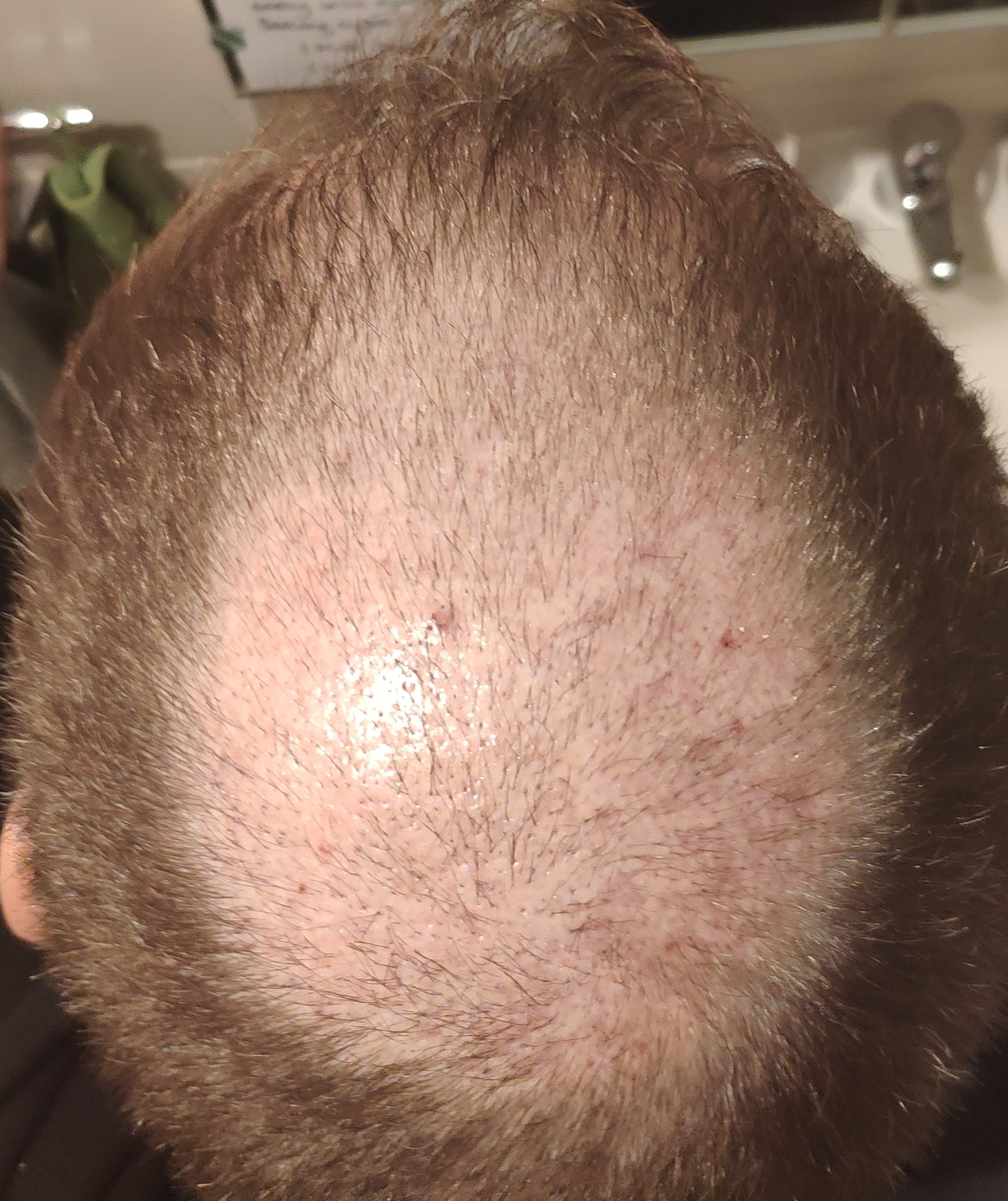 Aktuelles Aussehen (3 Monate Post-OP): Offen gesagt sehe ich "von weitem" genauso aus wie vor der OP vielleicht 10-20% der Haare sind stehen geblieben. Ab und zu wächst eine Haarwurzel ein, was sich in einem Pickel äußert. Sonst fällt nichts weiter auf!