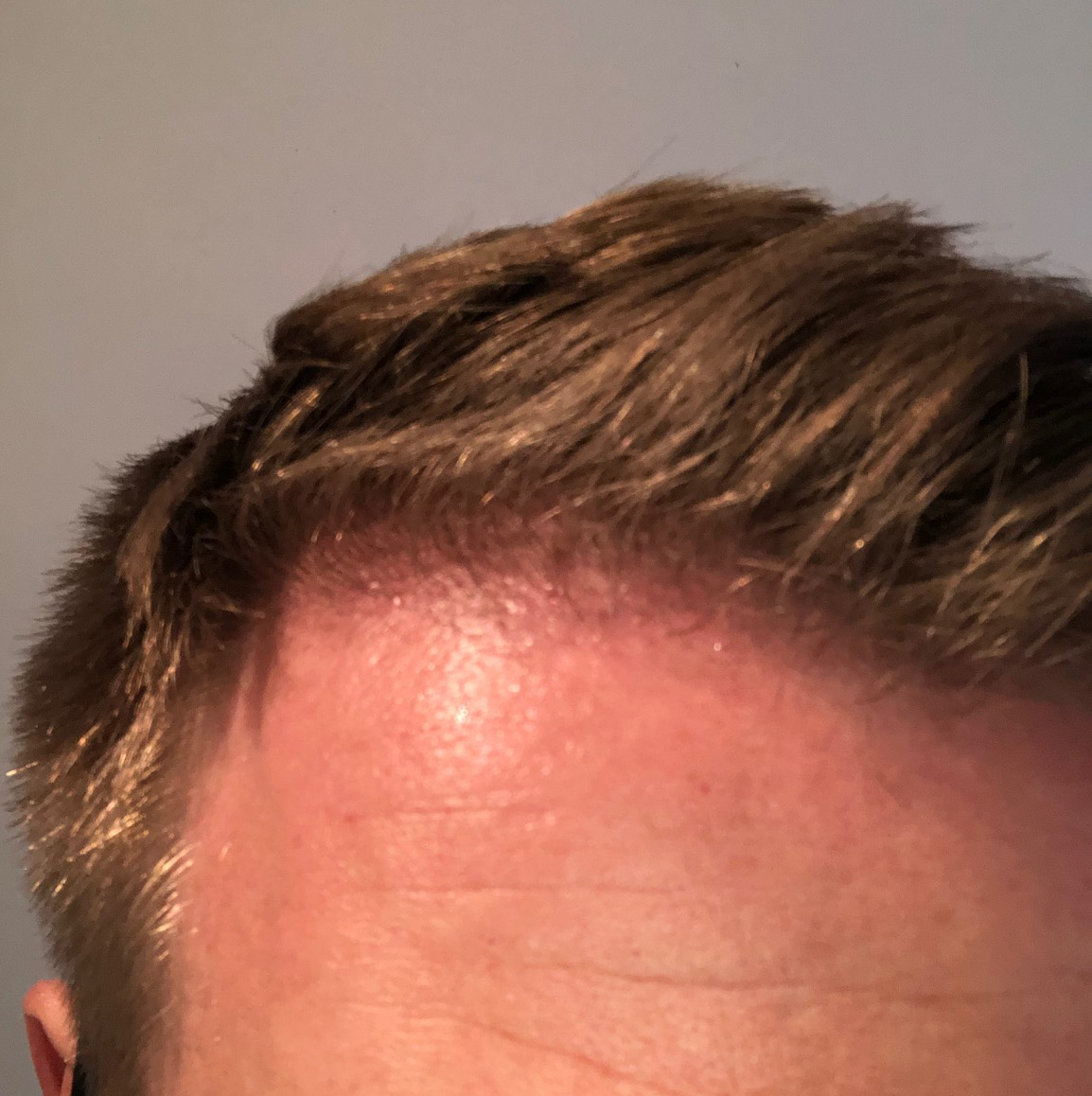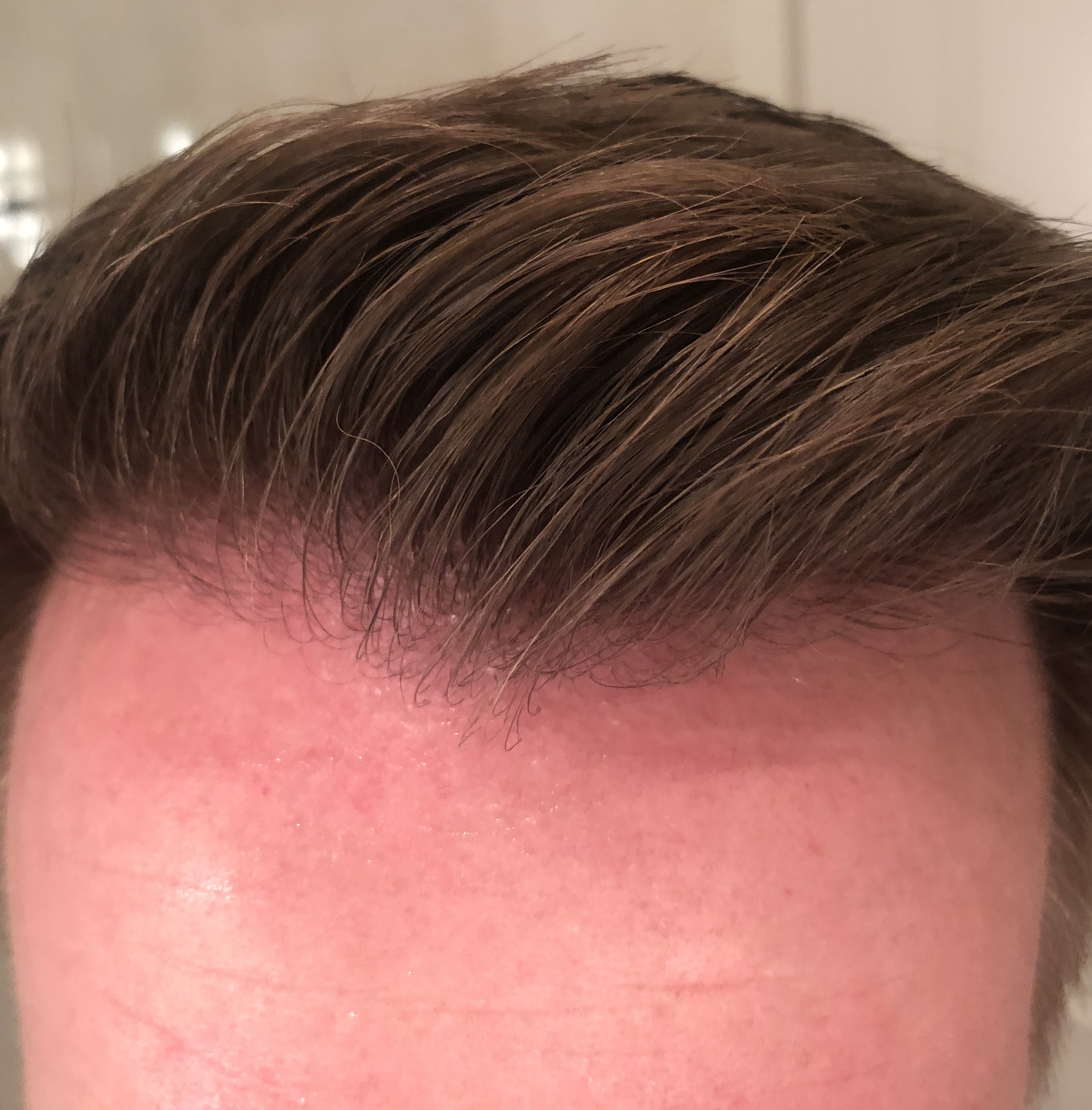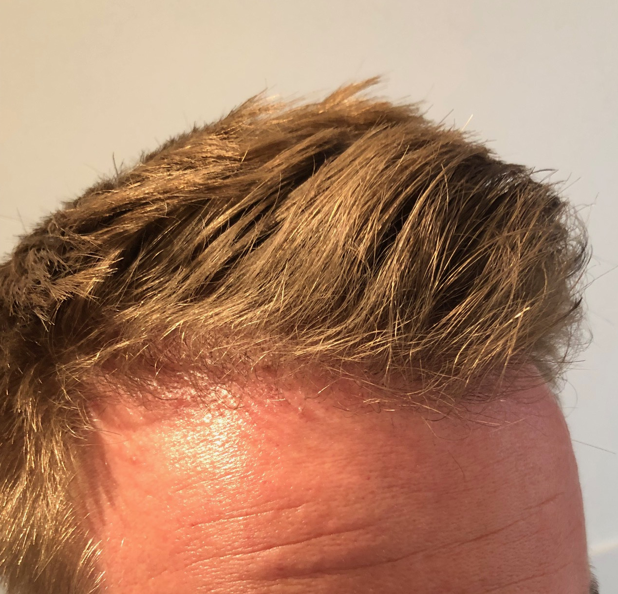 Habe die Haare gekürzt und der optische Eindruck ist schon durch die noch recht dünnen kurzen Haare links und rechts schon besser würde ich sagen.