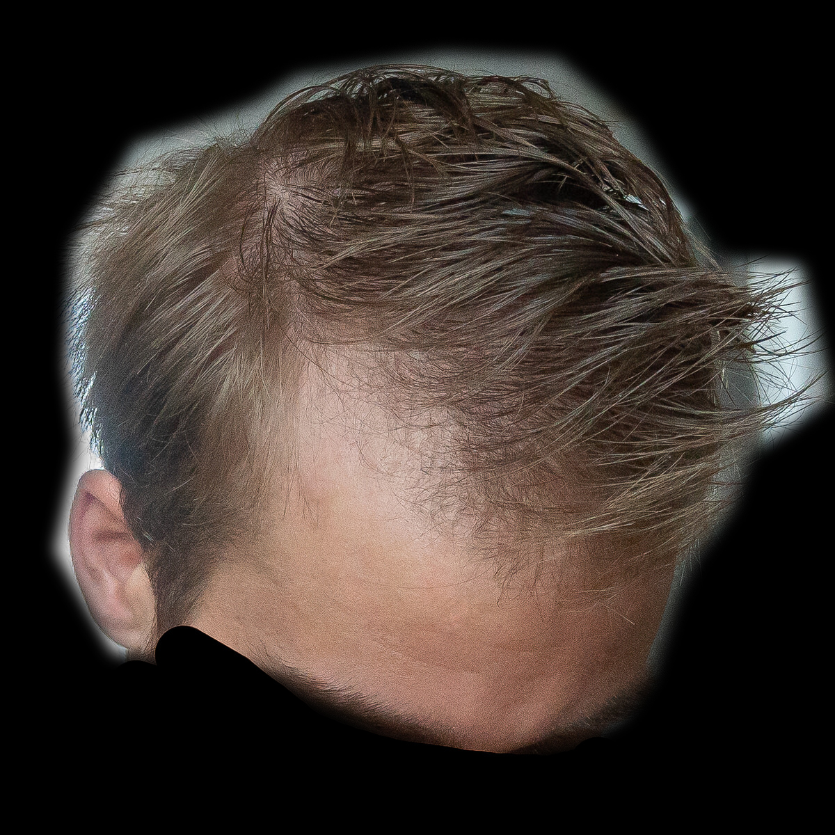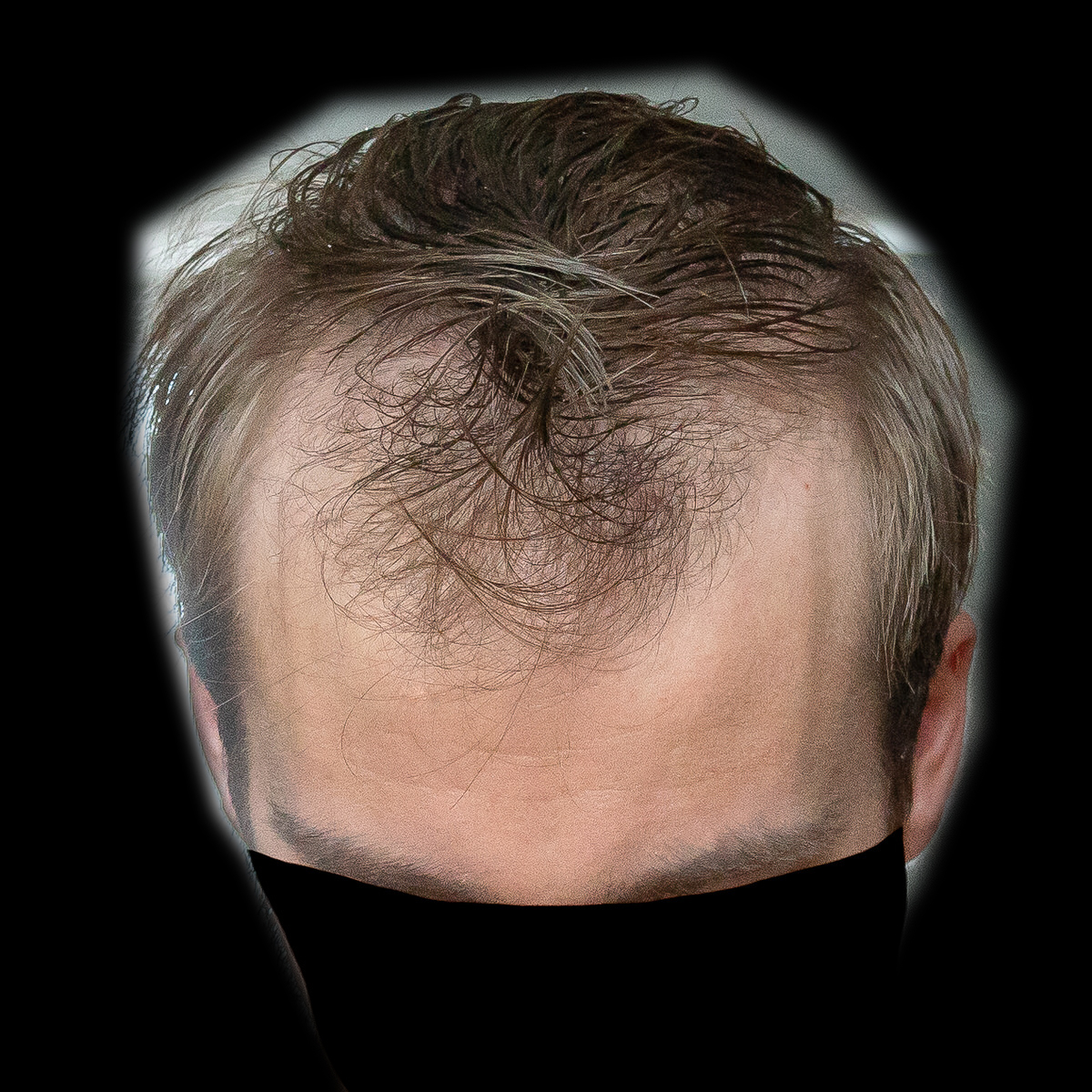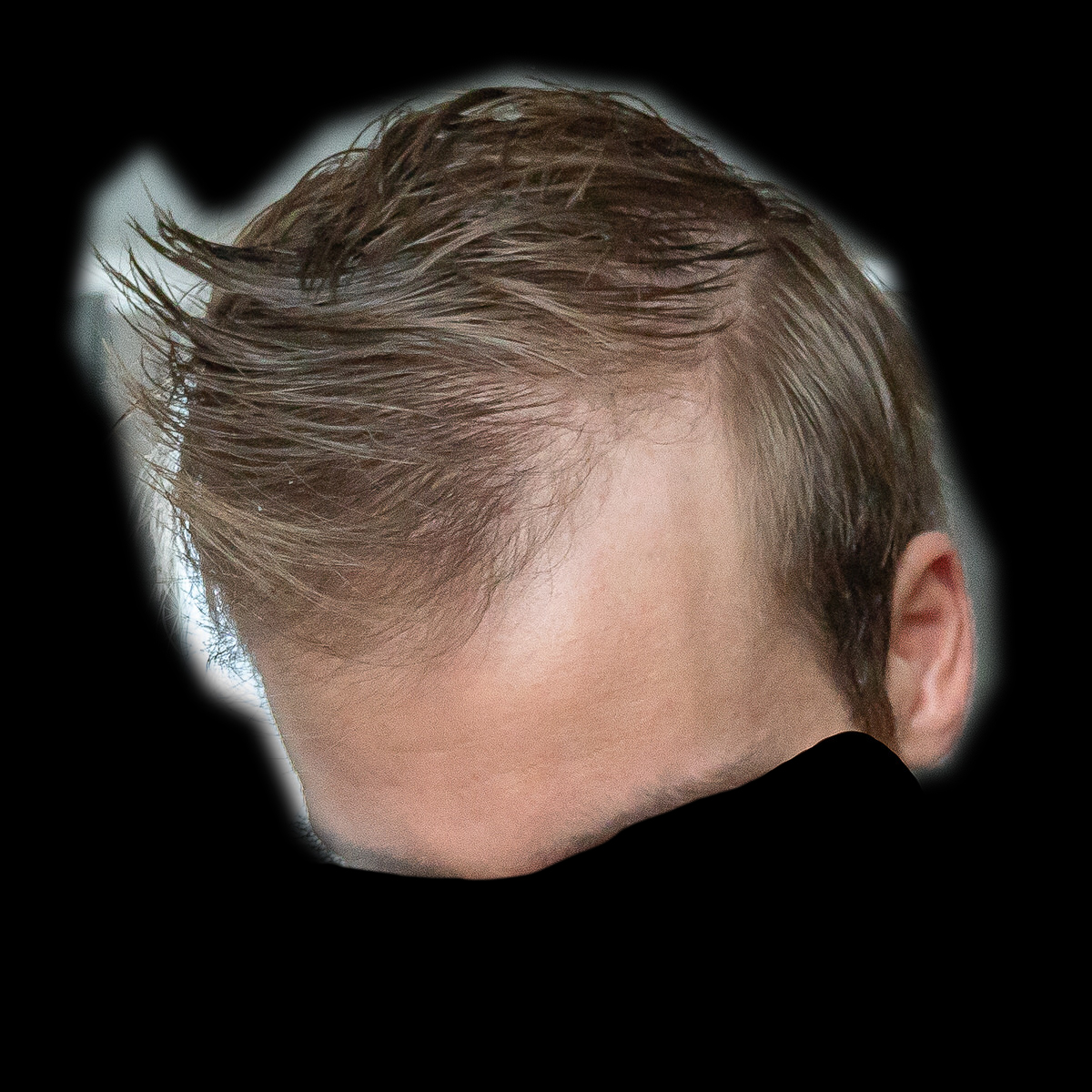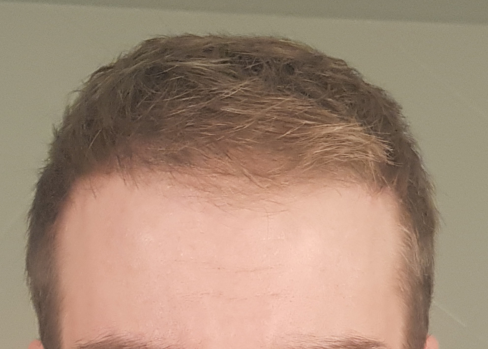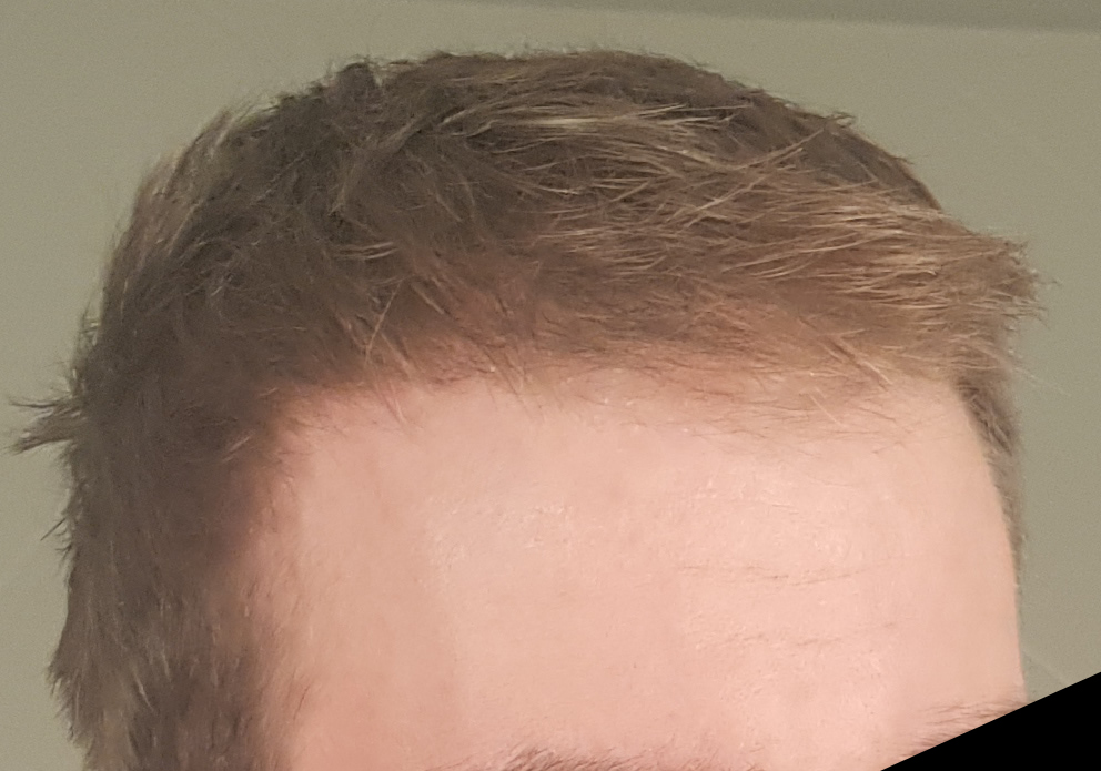 Ich habe meinen Status (denke ich) in der Zwischenzeit halbwegs gut halten können, obwohl ich Minox gerade in den letzten 6-8 Monaten nur noch sehr unregelmäßig genutzt habe. Was besonders auffällt ist die Mitte vorne, die relativ licht geworden ist. Auch die GRE haben etwas gelitten, insbesondere die letzten paar Wochen hatte ich nochmal überdurchschnittlich viel Haarverlust, der sich aber inzwischen wieder halbwegs eingepegelt hat. Ich würde mich selbst als NW2 einschätzen.