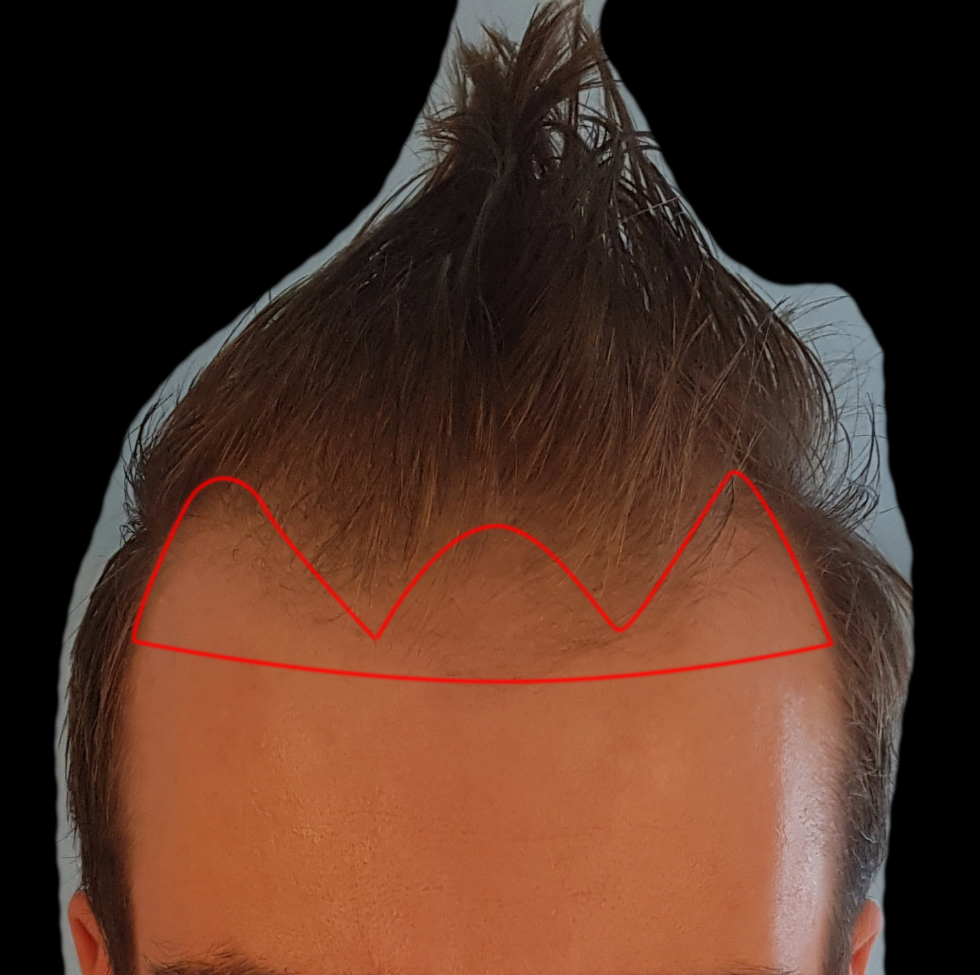 Hier im Anhang mal meine ungefähre Wunschvorstellung der Haarlinie. Außerdem Detailaufnahmen der linken und rechten GHR, bei denen man die aktuell immer lichter werdenen Stellen ganz gut erkennen kann.