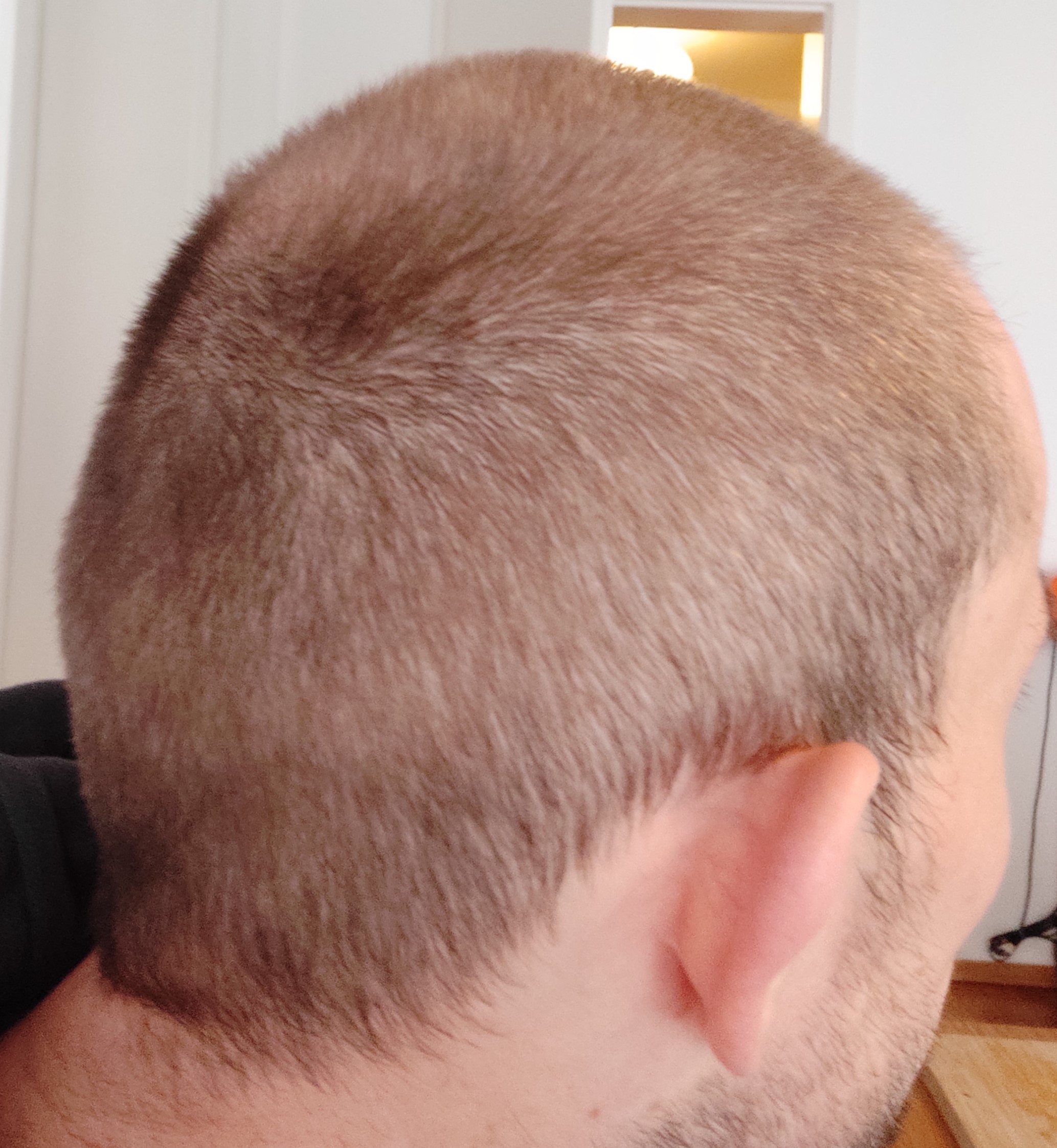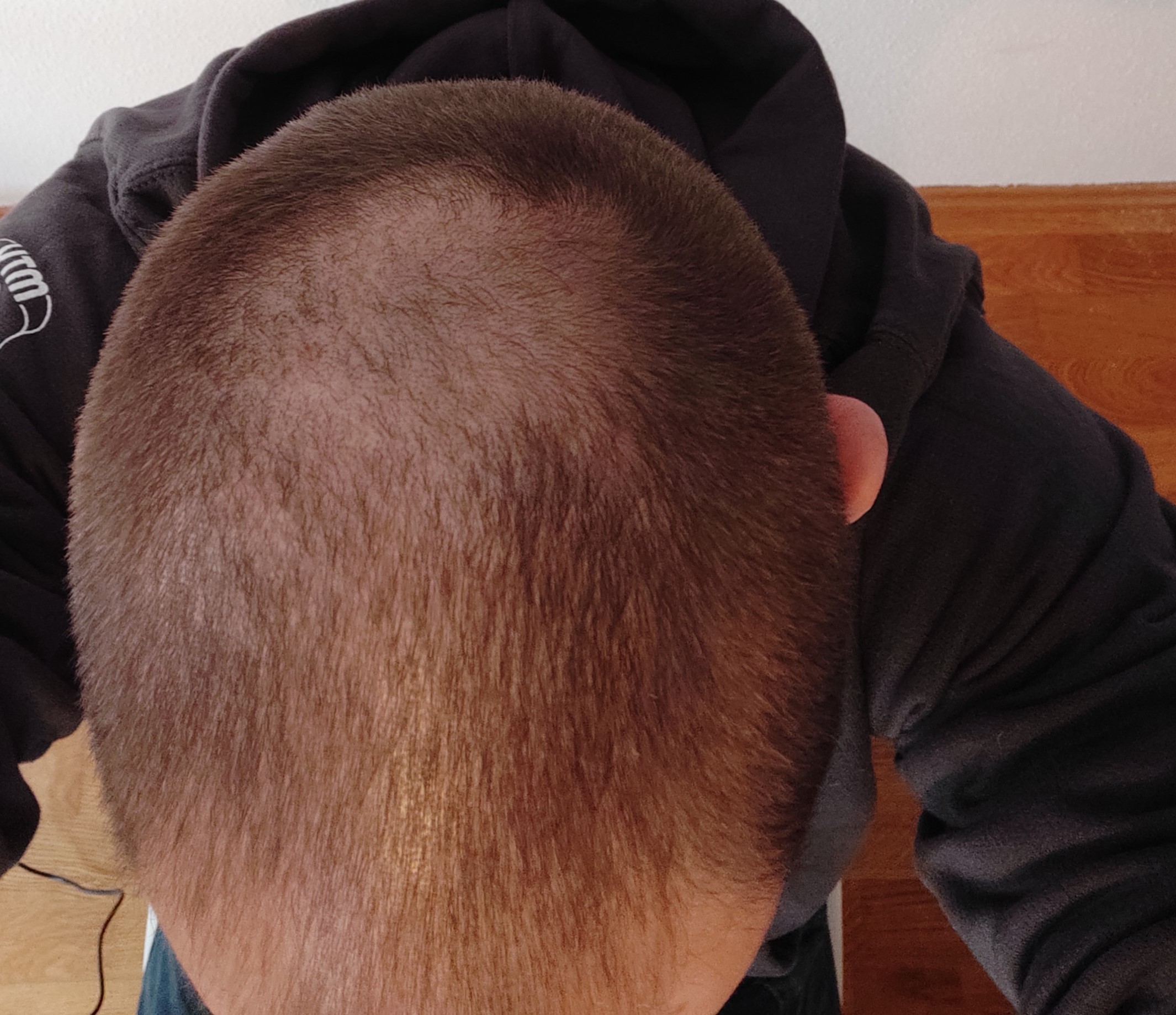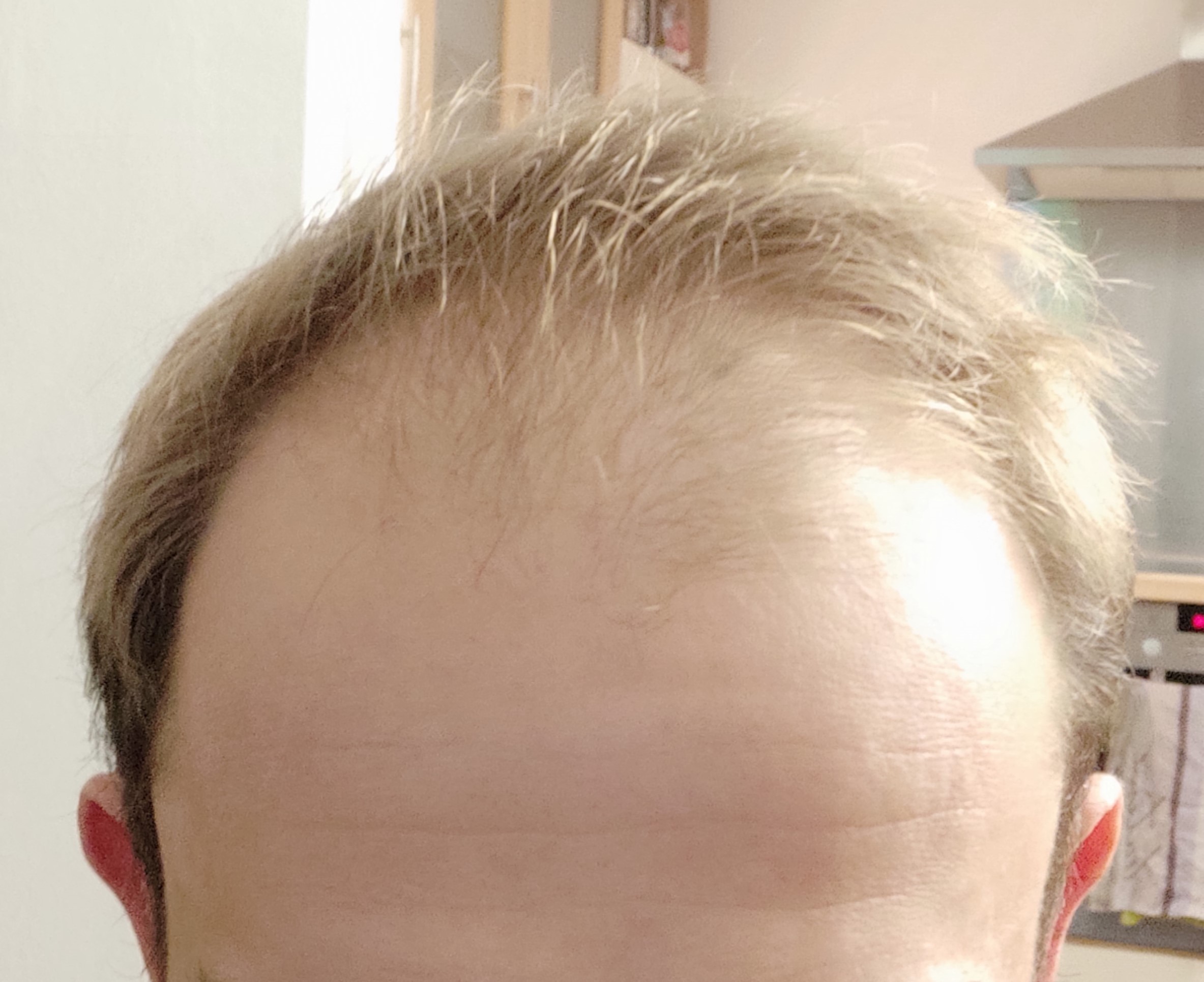 * Aktueller Haarstatus nach der Hamilton-Norwood-Skala: vermutlich 4 (?), siehe Fotos.