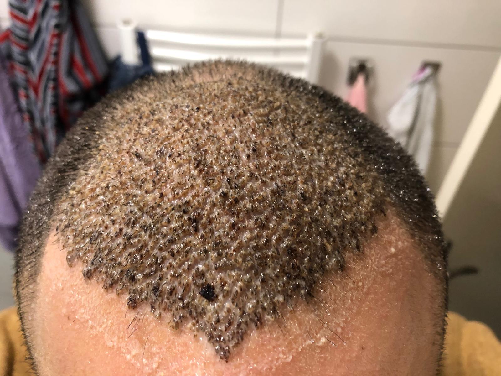 Ist wahrscheinlich von Klinik zu Klinik verschieden, wie das mit der Haarwäsche und Krusten verordnet wird... aber wie Daniel schon schreibt. Ab 10. Tag sollten Krusten weg sein. Setz dich in Badewanne und gib Kopf zurück und lass mit der Brause länger (auch 10 Minuten) fein das bitte nicht zu heiße Wasser drüber laufen... Dann mit Shampoo zwei drei Minuten waschen, dabei kreisende Bewegungen machen, nicht zu fest. Danach wieder lauwarmes Wasser rüberlaufen lassen (wiederum 10 Minuten). Die Grafts hättest du nass halten sollen in den ersten 4-5 Tagen, dann lösen sich Krusten noch besser. Aber wie geschrieben, das wird von Klinik zu Klinik verschieden kommuniziert. Leider. Ich gebe es nur so weiter wie von meiner Klinik empfohlen und da vertrau ich drauf.